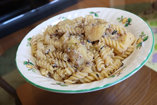 サイゾーウーマン暮らし食べ物業スー最推し「パスタ」は1.6mm 暮らし 布川隼汰が「業務用スーパーで100円レシピ」作ってみた! 業務スーパーパスタは500g/87円の1.6mmが高コスパ&超万能! 濃厚豆乳クリームなど絶品パスタがほぼ100円で 2021/02/25 18:00 布川隼汰(俳優) 業務用スーパー100円レシピ 【じゃがチーズクリームマカロニ】 (C)布川隼汰 (材料) マカロニスパイラル……100g 17円 ポテト……80g 20円 ブレンドチーズ……20g 20円 豚ミンチ……30g 20円 調整豆乳……100ml 14円 ●鶏だしの素……小さじ1 2円 ●塩コショウ……少々 1円 ●焼き肉のたれ……少々 2円 合計96円 1.マカロニを茹でている間にポテトをレンジで解凍しておく。 2.フライパンに少量の油を敷き、ポテトと豚ミンチを炒める。 3.ペンネが茹で上がったら、よくお湯を切ってフライパンに加え、豆乳、チーズ、●の調味料も入れて、さっと加熱したら完成! ◎ワンポイント ・ポテトと豚ミンチを炒めるタイミングで、先に焼き肉のたれを垂らし、少し焦がすと香ばしさがプラスされる裏技をここに記します! ◎感想 一口にパスタといっても、スパゲッティだけではない! マカロニも同様の値段で購入できます。茹で時間は多少スパゲッティよりも長いものの、見た目、食感はガラッと一変できるので、スパゲッティと一緒にストックしておきたい一品です。チーズとクリーム、ポテトとひき肉は最高の組み合わせ。焼き肉のたれで味にパンチと香ばしさを加えております。こちらも試す価値ありの料理になりました! 【近況報告】 俳優、映像制作、業スー節約レシピ研究家、演技講師、何でもやっております! SNSのフォローしていただけたら大変喜びます!! 公式Twitter インスタグラム 節約料理専門インスタグラム 前のページ1234 布川隼汰(俳優) 1992年8月25日生まれ。15歳の時に『3年B組金八先生』(TBS系)でデビューし、以後、 舞台・映画などで主演を数々経験し、俳優としてのキャリアを重ねる。最近では情報番組『スッキリ』(日本テレビ系)のレギュラーリポーターや、監督・ 脚本・編集・演技講師などマルチに活躍。特技は節約。 記事一覧 X:@shunta22fukawa Instagram:@shuntafukawa 最終更新:2021/02/25 18:00 テレワーク中の昼ごはんパスタはこれに決まり! 関連記事 業務スーパーマニア激推し「豚焼肉たれ漬け」で、甘口派にピッタリな“ガッツリ系肉丼”レシピ業務スーパー目玉商品で、豚の“姜葱醤”焼き! ただの生姜焼きとは違う「旨味ギュ~ッ」の絶品完成!!業務スーパーで作る「無限ピーマン」秒速レシピ! 歯ごたえ抜群&味付けは「鶏だしの素」で間違いなし!!『鉄腕!DASH!!』みたいに「ラー油」を手作りしたい! 業務スーパーの食品なら「70円以下」で実現可能業務スーパー「銀の胡麻ドレッシング」は万能調味料!? 65円で作れる簡単坦々麺レシピ&絶品豚バラミルフィーユも 次の記事 元ブルゾン、忖度で「地上波NG」に!? >
