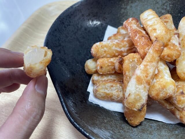 サイゾーウーマン暮らし食べ物【フライドダイコン】大根嫌いの子どもにも◎ 暮らし 【あのツイッターレシピ、やってみました】 バズレシピ・リュウジさん【フライドダイコン】、冷めてもおいしいコンソメ味の“おやつ感”! 大根嫌いの子どもたちもパクパク完食した! 2021/03/03 18:30 アウちゃん(ライター) ツイッターレシピ、やってみました コンソメ味のおやつ感覚! 中身の大根がホックホクで甘みが倍増。全然ダイコンの辛みなどは感じません。 これはうまいぞ!(C)サイゾーウーマン 大根は煮物にした時のような甘みと、柔らかい食感はそのままで、表面の衣はカリカリ! ダイコンを揚げる発想も素晴らしいが、実際食べてみてもコンソメ風味のホクホクダイコンがめっちゃうまい。 ホクホクいいながら食べていると、「何かの食感に似てる……」。しばし考え込んで「ハッ!!」と気がついた。このダイコンの衣、カリッカリに焼いたたこ焼きに食べた瞬間が似てる。味も似てるのか? よく焼いたたこ焼きの風味も感じる香ばしい出来栄え。 出来立てが最高においしいとリュウジさんは言っていたが、冷めてからはどうなんだろう? と、少し時間を置いてから食べてみたら、これもおやつ感覚でうまいじゃないか! さらにコンソメの味が引き立って、冷めたら冷めたでうまい!! 家に大根がある人は、ぜひ「今晩早速、揚げてみましょう」と声を大にしてオススメしたいレシピでした。大根食べない子どもたちにもバレずに完食してくれたので総評価は満点です! 【総評】 もう一度作りたい度:★★★★★(揚げ焼で作れるし簡単、油も少なめなのが嬉しい) ズボラ主婦でも再現可能度:★★★★★(すぐに柴犬色になるので火を止めるタイミングもわかりやすかった) 子どもウケまたは夫ウケ:★★★★★(子どもたちも大根と気がつかずに完食) 前のページ123 アウちゃん(ライター) 現在4歳と1歳を育児中の家事&料理がまったくできない主婦。好きな食べ物は激辛料理。しかし料理は夫担当。関西出身、福岡在住のライターブロガー。家事に関しては【見なかった事にしよう】が合言葉。 最終更新:2021/03/03 18:30 芋よりヘルシーそう! 関連記事 山本ゆりさん「白菜ツナサラダ」、子ども喜ぶ白菜消費レシピで「誰がこんなに食べるねん」問題も解決!【日雇いマンガ】『まきこの簡単クッキング~アラサー農家直伝! 大根大量消化レシピ~』バズレシピ・リュウジさん【至高の豚汁】普通の豚汁と思って作ったら絶句した! 夫も優しく微笑んだ!バズレシピ【ラー飯】、ラーメン&ご飯の“お焦げ”は想像超えるウマさ!! 付属調味料の味付けが絶妙すぎバズレシピ【最強のソース唐揚げ】はホントに最強!? 料理できない主婦が作ったら……簡単すぎてウマすぎて止まらない! 次の記事 K-POPブーム前夜の韓国音楽 >