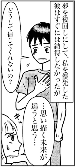 サイゾーウーマンカルチャーマンガ41歳、プロポーズを拒否! カルチャー まんが『オバサンと言われても結婚したい!』 【アラフォー婚活まんが】41歳、プロポーズを拒否! 借金500万円の男についにブチ切れ!! 2021/03/28 13:30 白戸ミフル(マンガ家) オバサンと言われても結婚したい! ――合コン歴20年以上、累計回数2,500回以上、30代なかばに乳がんで闘病するも、現在は絶賛婚活中のライター・漫画家の白戸ミフルが「アラフォー婚活」の実体験をお届けします! アラフォー中の結婚は成就するのか……!? 【前回まで】 26歳のシュウくんと交際中の私(41歳)。一時はプチ同棲してたけど、ショウくんは家事も料理もできないうえに、無職の金ナシ! 「お金がなくても結婚できる」とプロポーズしてきたけど、実は借金があることも発覚。その額、500万円……! このまま結婚していいのか? 第30話「」 次のページ 独り身って気楽〜♪ 12次のページ 関連記事 【アラフォー婚活まんが】無職のうえに、プロポーズ後に借金告白!? ……20~29話まとめ読み【アラフォー婚活ルポ】婚活中の41歳、「結婚しよう!」彼の言葉に真顔になったワケ【アラフォー婚活ルポ】コイツ、金もないし家事もできないし……マジで役に立たない!【アラフォー婚活ルポ】無職の26歳と同棲スタートした結果……初日からイライラ!!【アラフォー婚活ルポ】ギャーギャーわめく彼氏にうんざり! ウチに転がり込むなんて、まるでヒモじゃん!? その他の作品を読む