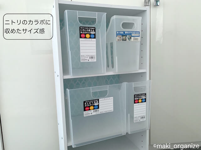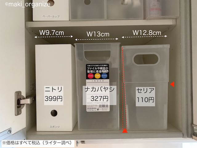 サイゾーウーマン暮らし住まい収納のプロが選ぶ「ナカバヤシ」とは? 暮らし 伊藤まきの「お片付けSOS」相談! 収納のプロが選ぶのは、100均・無印・ニトリより「ナカバヤシ」のA4ファイルボックス! 自宅での使用例を公開 2021/03/29 19:30 伊藤まき(収納ライター) 「お片付け・お掃除SOS」伊藤まき [魅力2]セリアより大容量で、ニトリより安い! 吊り戸棚の縦と横をフル活用できます(C)maki_organize セリアのファイルボックスは、底面に向かって細くなるのが目立ちます。「ナカバヤシ」も寸胴ではないものの、正面から見ると隙間がなく、吊り戸棚の縦と横をフル活用できます。 ニトリは「寸胴フォルム」ですが、数を揃えると予算がかかります。それなら、少し大きめの「ナカバヤシ」のほうがコスパ面で○。 [魅力3]透明度が高いから、面倒なラベルが不要! 奥のほうにあるモノまで、しっかり見える!(C)maki_organize 扉や引き出しの中を片付けるときは、「中身が見える」ほど無駄がありません。100均や無印良品、ニトリのファイルボックスも「半透明」ですが、扉内に仕舞い込むなら「透明度が高い」ほうが◎。 面倒なラベルを貼る必要もないため、定期的にモノの入れ替えや見直しができます。 [魅力4]3種を組み合わせると、棚や引き出しにぴったり スチールラックや戸棚、引き出しにぴったり!(C)maki_organize 3種類の「ナカバヤシのファイルボックス」を組み合わせると、不思議と隙間が出ません。引き出しや戸棚内の空間を、すっきり無駄なく仕切ることができます。事務用品なので、手運びの簡単さも◎です。 以上4つの魅力から、筆者の私物は「ナカバヤシのファイルボックス」です。 次は、筆者宅より実際の使用例です。 次のページ 【収納のプロ・使用例1】アイロンや掃除用具のストックを収納 前のページ12345次のページ 関連記事 収納のプロが「無印良品」をやめて「ダイソー」を選んだ4つの理由! 衣替えの正解は300円の「蓋付き収納 BOX」収納のプロが選ぶ、セリア「100均ファイルボックス」! キッチン・クローゼットの使い方実例収納のプロが選ぶ「100均ファイルボックス」はコレ! キャンドゥ「スッキリまとめ隊」の使い方実例キッチン収納、劇的ビフォーアフター12連発! 整理収納のプロが「100均グッズ」だけで手直し&解説劇的ビフォー・アフターで解説! 狭くなったキッチンを「100円収納で快適化」するポイント集