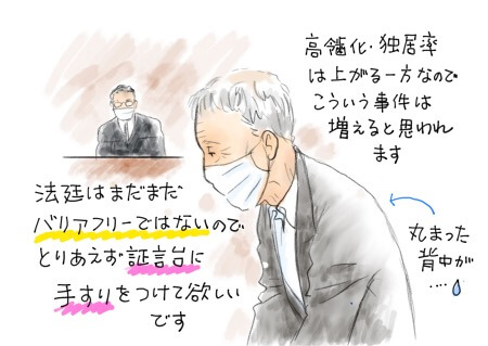 サイゾーウーマンコラム東京・港区で起きた「死体遺棄」事件 コラム 【連載】傍聴席から眺める“人生ドラマ” “超セレブタウン”東京・港区で起きた「死体遺棄」事件――87歳の姉を3カ月遺棄した、85歳被告の言い分 2021/05/03 15:00 オカヂマカオリ(ライター) 傍聴席から眺める“人生ドラマ”コラム 被告はなぜ、姉の遺体を放置したのか? (C)オカヂマカオリ そんな中で、裁判とまったく関係ないところで気になったのが、裁判長の質問でした。拝見したところ立派な中年男性ですが、「日に日に変わってゆくお姉さん(の遺体)を見て、どんな気持ちでした?」という質問が、仏教で無常を説く「九相図(美女がどんどん腐って骨になる様子を9段階で現した図)」的で宗教を感じさせたり、「お姉さんの誕生日が9月8日なので、その日に(亡くなったことを)言おうとか?」などと、“記念日好き”を連想させる内容で、人柄が見えてきます。 なお、この質問に被告は、「お姉さんを見かけない」という通報を受けた高齢者相談センター職員の訪問に、最初は「姉は寝ている」と言って追い返してしていたものの、死後3カ月で遺棄が発覚。訪問されるたびに「今日こそ言おう、と思ってたけど勇気がありませんでした」と話していました。 遺体が室内にあったのは初夏から真夏なので、エアコンをかけても腐臭がすごかったことが想像されますが、それでも外部にSOSが出せなかったのはなぜだったのか。親類縁者もない姉弟の、小さな世界が壊れてしまう恐怖があったのでしょうか。 家を一歩出ると、ハイブランドの路面店や豪邸、大手企業のビルが林立する街、港区。そんな雰囲気についていけない老いた身には、なおのこと家族が大切に思えたのかもしれません。 今件は微罪のうえ、初犯だったため、即日判決が出ました。懲役1年、執行猶予3年。猶予期間が明けるのは、被告が88歳になる時ですが、そこまで元気で、お姉さんの供養を続けてほしいと思います。 前のページ12 オカヂマカオリ(ライター) 絵も描くライター。傍聴デビューは結婚詐欺師のクヒオ大佐。興味を持った方は古書店で『裁判トリセツ』(インフォバーン刊)を探してみてください。 記事一覧 最終更新:2021/05/03 15:00 光が強いと影が濃くなる 関連記事 「酒を飲んだり、不倫するのが“男らしい”と思ってた」53歳の元公務員、準強制性交容疑で語られた「2人の愛人」と「ED治療」家族のケンカが裁判に発展! 法廷で「茶番」を主張した46歳の息子、「こうやって懲役に行かされる」実例6歳の幼女にディープキスした86歳老人――「かわいがりすぎた」「甘えてきたから」法廷での呆れた言い訳“トリプル不倫”に巻き込まれ、ストーカーになった59歳のオンナ――「都会的モテ男」が法廷で見せたウラの顔“神待ち”で出会った15歳の少女を「引き取って育てる」――孤独な青年が起こした「未成年者誘拐」事件 次の記事 ドラスト、「がっかりコスメ」5選! >