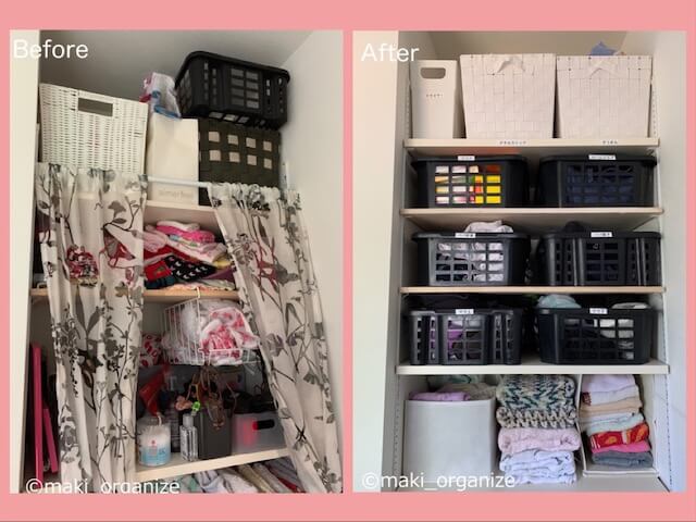 サイゾーウーマン暮らし住まいごちゃつく脱衣所、衝撃ビフォー・アフター 暮らし [連載]30代女子の「煩悩部屋」ビフォーアフター 脱衣所の収納が使いにくくてイライラ! 家族のパジャマと下着をスッキリ収納、劇的ビフォー・アフター【2】 2021/05/10 19:30 伊藤まき(収納ライター) 「汚部屋」ビフォーアフター [上段ビフォー・アフター]ひと目でわかるスッキリ収納に! (C)maki_organize 夫婦の身長にあわせて、着替えを収納しました。ダイソーのケース(黒)に合わせて棚板を設置したので、引き出しのように使えます。手持ちの収納ケースを使ったので、新たに購入したのは100均の収納箱3つだけ。合計300円です [下段ビフォー・アフター]10個の引き出しで小物迷子も卒業! マスクやヘアゴムを掛けるフックが便利!(C)maki_organize 娘さんの身長にあわせて、収納ケースに着替えを収納しました。ほか、上から使用頻度順に小物やストック品を収納しています。Kさん自身が、使わない小物を潔く処分したので在庫管理も楽になりました。 [まとめ]モノの住所を徹底するほど、家事がラクになります この投稿をInstagramで見る 整理収納アドバイザー|伊藤まき|東京区内(@maki_organize)がシェアした投稿 モノの住所を徹底するほど、「秒で出せる」「すぐに片付く」仕組みになります。片付け後は、娘さんもひとりで身支度できるとご満悦だそう。家族みんながスムーズに使えて、気持ちの良い脱衣所になりました。 次回は、使いやすい洗面台にビフォー・アフターです! 前のページ12345 伊藤まき(収納ライター) 収納ライター・兼・整理収納アドバイザー1級。クリンネスト2級。おがくず工場に生まれ、ホテル清掃員、国鉄系レストランの厨房、内装会社、デパートの搬入搬出など“家事の土台”を極めた生活を経て、出版社入社ののち独立、現在に至る。モノを手放すほど「幸運」が舞い込むジンクスを何度も体感! 貧乏神と決別した実体験をもって、整理収納の威力をお伝えします。 記事一覧 Instagram:@maki_organize 最終更新:2021/05/10 19:30 住んでからわかる不便さってあるよね 関連記事 「ランドリーラック」が実は鬼門!? 汚部屋30女の「脱衣所」が廃墟化するワケ狭くてイラッ、不快な「洗面室」をプロがスッキリ片付け! 6つの劇的ビフォー・アフター例タオル収納は「ダイソーのフラップ式ボックス」が正解! 狭い洗面所も清潔&極楽のコツダイソーの“見える化”収納アイテムで、ゴチャつく「洗面台下」を無駄なくフル活用!不用品を溜め込んだ「ガラクタ部屋」が劇的スッキリ! 収納のプロが解説、“今すぐ”片付けるべき3つの理由 次の記事 デヴィ夫人、イベント前日に延期発表のワケ >