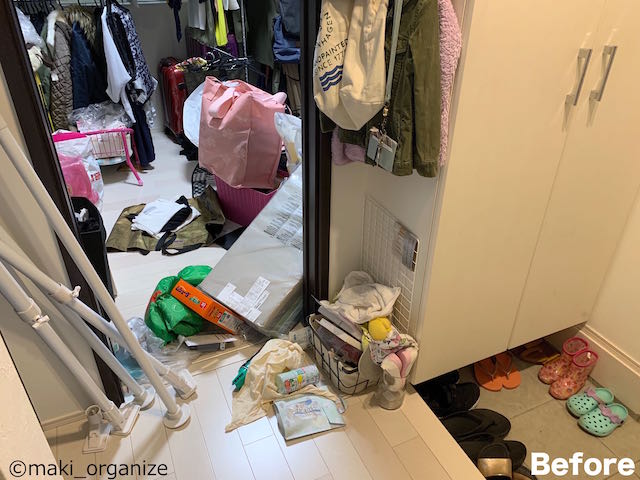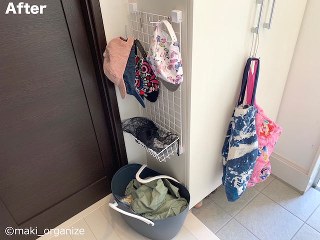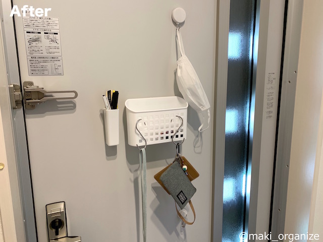 サイゾーウーマン暮らし住まい玄関収納、ビフォーアフター4連発 暮らし [連載]30代女子の「煩悩部屋」ビフォーアフター 「100均グッズを使いこなせない」収納の悩みを解決! 玄関の片付けビフォー・アフター4連発 2021/05/31 19:30 伊藤まき(収納ライター) 「汚部屋」ビフォーアフター [悩み2:Before]子どもが自分で支度できるようにしたい 家事と育児で手が回らず、後回しの日々……(C)maki_organize 下駄箱の横にファミリークローゼットを作ったのに、そこまでバッグや帽子を取りに行くのも面倒だったとKさん。また、小さな子どもは、玄関に入った瞬間に重たい荷物を下ろす習慣があるので、奥の部屋まで片付けにいきません。お子さんが自分で帽子やバッグを出し入れできるように、下段にもワイヤーネットを用意します。 [After]子どもの成長に合わせて、ワイヤーネットが便利! Kさん自身で用意した、荷物用バスケットもダイソー商品。(C)maki_organize ダイソー商品だけで「子ども視線」の、帽子掛けを用意。ワイヤーネットにフックを掛けるだけなので、子どもの成長に合わせた高さが作れます。また、下駄箱の取っ手を利用して、バッグ掛けも用意。お子さまの身長にちょうど良い高さだから、ママの手助けも不要です。 [悩み3:Before]マスク掛けとストックを置きたい 収納グッズ選びは、重さや負荷も考えて!(C)maki_organize 家を出る前に、マスクを忘れた! とならないように、玄関のドアに用意したいとKさん。スチール製のドアには、組み立て式のマスクケースを使っているものの、強度が弱くて出し入れの際に落下してしまうそう。ほか、失敗した100均のマグネットフック類が貼り付いていました。 [After]マスク収納は、ダイソーを使って玄関のドアへ! マスクの出し入れをしても、ズレない造りです(C)maki_organize ダイソーの「マグネポケット ワイド」が、マスク収納にぴったりのサイズです。 マグネポケットの裏に、2個のマグネット付きです。そのため、出し入れの負荷が強くても頑丈です。筆者は、冷蔵庫はもちろんお風呂の片付けにもよく利用しています。ほか、文具の「マグネットポケット」もダイソー商品です。 次のページ [悩み4:Before]毎日のように届く荷物が、玄関を狭くしている 前のページ1234次のページ 関連記事 整理収納のプロが「100均グッズ」で一発手直し! 使いにくい「洗面台下」収納、解決ビフォーアフター実例脱衣所の収納が使いにくくてイライラ! 家族のパジャマと下着をスッキリ収納、劇的ビフォー・アフター【2】「玄関にあると便利なモノ」4種! 収納のプロが実用度アップのコツを解説狭くてイラッ、不快な「洗面室」をプロがスッキリ片付け! 6つの劇的ビフォー・アフター例洗濯物はたたまないでOK! プロが伝授、スッキリ片付く「出しっぱなし」2つの収納法