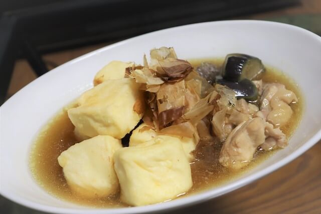 4.揚げた豆腐を(2)に入れ、かつお節をまぶせば完成!