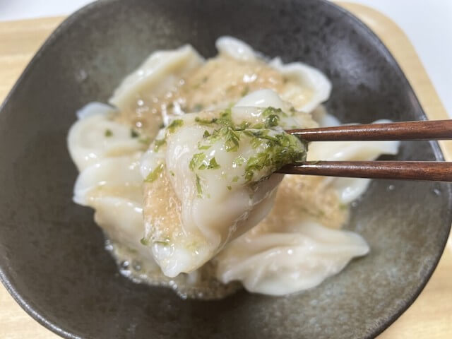 サイゾーウーマン暮らし食べ物『家事ヤロウ!!!』餃子レシピ【ツルツル冷やし餃子】 暮らし 【あのツイッターレシピ、やってみました】 『家事ヤロウ!!!』最新餃子レシピ【ツルツル冷やし餃子】作ってみた! 暑くて何もしたくない真夏にピッタリ、クセになる喉越し発見! 2021/07/21 19:00 アウちゃん(ライター) ツイッターレシピ、やってみました とろろ効果で喉越しがめちゃくちゃツルツル! 夏にぴったりレシピだった!(C)サイゾーウーマン 冷やし餃子自体がもうツルツル喉越しが良いのだけど、山芋効果でさらにツルッといける。見た目はめんつゆが濃いように見えましたが、食べてみるとちょうど良い感じでした。青のりの存在はあまり感じられなかったが、山芋の甘みがちょうど良く冷たい餃子に合います♪ これは真夏の暑い時にさらっといける冷やし餃子だ! とろろ効果で喉越しがめちゃくちゃツルツルで、油断したらそのまま丸々1個の餃子を飲み込んでしまいそう。 どこにでも売ってるレトルトの餃子を茹でて氷水で冷ますだけなので、暑くて何もしたくない真夏の昼食に、この夏あと3回は食べるだろうな……。 【総評】 もう一度作りたい度:★★★★☆ ズボラ主婦でも再現可能度:★★★★☆(間違えた昆布のとろろは食べました) 子どもウケまたは夫ウケ:★★☆☆☆(手抜き感は拭えない) 前のページ123 アウちゃん(ライター) 現在4歳と1歳を育児中の家事&料理がまったくできない主婦。好きな食べ物は激辛料理。しかし料理は夫担当。関西出身、福岡在住のライターブロガー。家事に関しては【見なかった事にしよう】が合言葉。 最終更新:2021/07/21 19:00 冷食半額セールでとりあえず買っとこ 関連記事 『家事ヤロウ!!!』和田明日香【ニラパスタ】、これイタリアン餃子やん! お家レシピだけじゃもったいない、誰かに食べさせたい味!『家事ヤロウ!!!』【1枚唐揚げの和風タルタル】、デカイ1枚肉にらっきょうタルタルのうまさが奇跡ハーモニー!『家事ヤロウ!!!』餃子レシピ第4位【パリパリウインナー餃子】作ってみた! メチャクチャそそる見た目と、至高の「カリ! ジュワー」がうまい!コウケンテツさん【大阪喫茶ナポリタン】、濃厚ジューシーなソースがうまい! 大阪出身者がうなるレシピだった!【MOW(モウ)バニラ】なら3分でマリトッツォ(風)! 本物のマリトッツォは知らないが、この出来栄えは讃えたい! 次の記事 マイナポイント登録で4,000円ゲットも一瞬でチャラに >