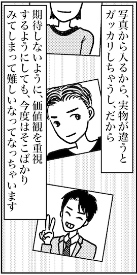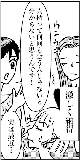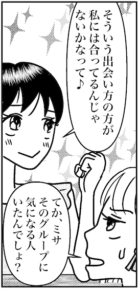 サイゾーウーマンカルチャーマンガ婚活中のアラフォー3人のとりあえずの結論! カルチャー まんが『オバサンと言われても結婚したい!』座談会 【アラフォー婚活ルポ】結婚相談所でもアプリでもない? アラフォー3人の「自分に合った出会い方」 2021/09/29 13:30 白戸ミフル(マンガ家) オバサンと言われても結婚したい! ――合コン歴20年以上、累計回数2,500回以上、30代なかばに乳がんで闘病するも、現在は絶賛婚活中のライター・漫画家の白戸ミフルが「アラフォー婚活」の実体験をほぼリアルタイムでお届けします! アラフォー中の結婚は成就するのか……!? 本編は少しお休みして、しばらくはアラフォー婚活仲間たちとの婚活実録トークをお届けします♪ 【前回】 アラフォー婚活事情を知りたくて、36歳のミサと42歳のアサミを招集! みんな結婚相談所や婚活アプリでいろんな男性と会ってきたけど、いまだ成果はなし。でも、いろんなアプリをやってわかったのは、これまで好きになった人は職場やサークルで出会い、人柄を知ることで好意を抱いたということ。アプリみたいに、結局顔から入るのは向いてないのかも……? 【婚活実録エピソード】 結婚相談所でもアプリでもない? アラフォー3人の「自分に合った出会い方」 次のページ 2年もアプリでやりとりしてる男性 12次のページ 関連記事 【アラフォー婚活ルポ】婚活アプリでたくさんの人に会ったアラフォー3人がたどり着いた結論【アラフォー婚活ルポ】たくさんお見合いはしたけど……結婚相談所をやめたワケ【アラフォー婚活ルポ】「婚活プロフェッショナル」な友達と街コンへ行った結果……【アラフォー女3人婚活トーク】「出会いが減った」のは幻想!? 「アプリがある限り、出会いはある」ただし……【アラフォー婚活ルポ】42歳カップル、「親の介護」問題に直面! 彼の母はアルツハイマーで…… その他の作品を読む