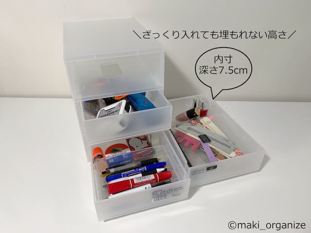 サイゾーウーマン暮らし住まい収納プロは「コーナン」を選ぶ理由 暮らし 伊藤まきの「お片付けSOS」相談! 【コーナン】激安コスパ最強の「引き出し収納」2アイテム! 片付けのプロが「ニトリ」「無印良品」より推す魅力 2021/10/15 20:10 伊藤まき(収納ライター) 「お片付け・お掃除SOS」伊藤まき コーナン「モア ナチュラル」B5、家中の小物に便利! 話は戻りまして、「小物収納」ならB5サイズ対応の浅型がおすすめ。高さ8〜10cmは小物が埋もれないため、ざっくり入れても在庫管理が簡単です。 仕切りはお菓子の空き箱でOK(C)maki_organize 例えば、郵便セット、グルーミングセット、ネイルグッズ、文具セット、お薬、身だしなみグッズなどをざっくり入れても埋もれません。A4サイズ(書類)より小さいため、棚上に置いてもスッキリをキープ。 ストッパーがないから、吊戸棚にも便利! 引き出しごと出せる!(C)maki_organize 引き出しごと出せるのも、使いやすいポイント。落下防止のストッパーが付いていないため、高さのある場所にも活用できます。 例えば、キッチンの吊戸棚に使用頻度の低い小物を置くと◎。滅多に使わないピザカッター、肉叩きなどの道具やお弁当用の小物、お菓子の型、割り箸などがおすすめです。収納ボックスのように、埋もれる面倒がありません。 さらに! コーナンの「小物収納」には、「モア ナチュラル」を超える激安商品があります。 次のページ コーナン販売 サンコープラスチック「ストッキー SA-450」 前のページ123次のページ 関連記事 ダイソー品切れ大ヒット「ワンプッシュ保存容器」、収納のプロがカインズ・ニトリと徹底比較ジャッジ!ダイソー・無印良品と比較して決定! 収納のプロが、3COINS(スリーコインズ)「クリアボックス」を指名買いのワケダイソーの名品が「じゃない使い方」で大活躍! カラボの“生活臭”を3秒で目隠し……どころか“高見え”!収納のプロが「無印良品」をやめて「ダイソー」を選んだ4つの理由! 衣替えの正解は300円の「蓋付き収納 BOX」セリア「ハッピー角」を指名買い! 冷蔵庫の“野菜室収納”、100均「収納グッズ」で片付け実例