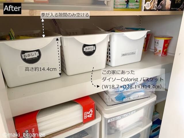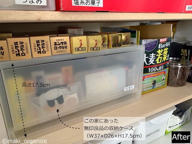 サイゾーウーマン暮らし住まいコーナン「5段ケース」コスパ最高 暮らし [連載]30代女子の「煩悩部屋」ビフォーアフター ニトリ・無印良品・100均よりコスパ最強な理由! プロが選ぶ【コーナン】5段ケースで、キッチンクローゼットがスッキリ 2021/10/04 19:30 伊藤まき(収納ライター) 「汚部屋」ビフォーアフター 連載企画「30代女子の「煩悩部屋」ビフォー・アフター」の新シーズンが始まりました。今回は、汚部屋あらため「汚家(おうち)」をまるごと片付けます! クライアントは板橋区・3SLDKの一軒家に家族4人で暮らす兼業主婦のKさん(37歳)です。 お悩み:「日用品の小物やストックが片付かない」板橋区・Kさん(37歳/会社員役職) 汚家まるごと変身企画“21回目”は、前回に続き「小物収納」です。リビングとキッチンで使う、日用雑貨を「ワンボックス・ワンテーマ」でスッキリ片付けます。使用するのは、コスパ最強! コーナン「5段ケース」です。これで散らかりにくいスッキリした暮らしに変われます! [Before]サランラップやティッシュのストックが入らない 収納ケースの選び方・使い方としてNG(C)maki_organize 前回の記事でも、作り付けのミニクローゼットが散らかるのは「棚板が少ないから」と説明しました。また、滅多に使わないモノ(紙資料)や間違った収納ケースで空間を使ったことも失敗です。 片付けても散らかるという家は、「小物ごとに仕切りを作る」仕組みと「頻繁に出し入れするモノ」を主役にした収納へ見直しましょう! 棚板の調整も重要な作業のひとつ(C)maki_organize クローゼットの「棚板の位置」は上から調整します。今回は、人が一番出し入れしやすい腰から胸の高さ「中段」からの整理です。ファイルボックス(資料)を別の部屋へ移動して、空間を2段に仕切ります。 [After.1]引き出しケースを使う場合は、上から覗ける位置へ 無印良品は完璧だけど、予算が不安(C)maki_organize Kさん宅にあった、無印良品の「ポリプロピレンケース引出式・横ワイド・深型」(1,090円税込、ライター調べ)を使いました。クローゼットの中で、引き出しケースを使う場合は「上から覗ける高さ」に使います。 この棚は、薬やサプリなどの「健康管理ゾーン」に変わりました。どれも使用期限があるので、溢れたときが「見直しサイン」になります。 [After.2]子どもの手が届く高さに、子ども用コーナーを用意! 小さなお菓子や食品も、埋もれず発見!(C)maki_organize 子どもの手が届く高さに、小さい食品用のケースを用意しました。この家にあったダイソーの「Colorist 収納ケース」を使っています。このようなケースを使う場合、握りこぶしサイズの空間を残します。これ以上空けると上にモノを「ちょい置き」するので、余白は控えめに! 機会があれば、中身が見える透明のケースに変えると◎。扉や引き出しの中にしまう小物は、隠すより見えるほうがあらゆるロスを減らせます。 次のページ [Before]最下段は、使うたびに崩れる「日用消耗品」の山 123次のページ 関連記事 ワッツ「のせのせストッカー」で激安スッキリ! 棚のデッドスペース、仕切りがない空間を100均で解決荒れ果てて見るのもつらいダイニングテーブル周り、劇的スッキリ! ビフォーアフターと6つの解決策【ニトリ】1,152円のホワイトボードがおすすめ! ダイソーと合わせ技の「壁収納」でリビングがスッキリIKEA大人気「3段ワゴン」のNG収納例!? “ゴチャゴチャ”ラックをプロが正しくお片付け! 大小2種類も使用比較100均「透明ケース」が大活躍! 「100%散らかる」リビング、整理収納のプロがお片付け