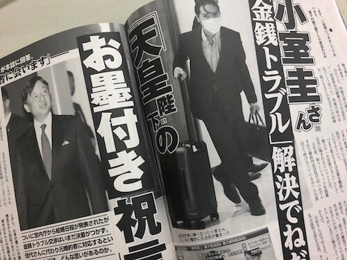 サイゾーウーマンコラム神林広恵「女性週刊誌ぶった斬り」マスコミ史に残る「人権侵害」にあたる小室圭さん報道 コラム “噂の女”神林広恵の女性週刊誌ぶった斬り!【第572回】 マスコミ史に残る「人権侵害」のあり様を呈する、眞子さま・小室圭さんバッシング――女性週刊誌の臆測・フェイクなんでもありの攻撃ぶり 2021/10/05 21:00 神林広恵(ライター) 女性週刊誌ぶった斬り! 下世話、醜聞、スキャンダル――。長く女性の“欲望”に応えてきた女性週刊誌を、伝説のスキャンダル雑誌「噂の真相」の元デスク神林広恵が、ぶった斬る! 「女性自身」10月19日号(光文社) 緊急事態宣言が解除された。知り合いのSNSには小さな飲み屋で誰もマスクをせず、ひしめき合い飲んでいる姿が。「やっと賑わいを取り戻しました!」とのことだが、大丈夫か――。 第572回(9/29〜10/5発売号より) 1位 女性週刊誌全誌が掲載している眞子さま&小室圭さんバッシング記事 2位 女性週刊誌全誌が掲載している嵐・櫻井翔&相葉雅紀の結婚“よいしょ”記事 3位 「水川あさみ『私が面倒見る!』ベッキー、春菜と事務所結成プラン」(「女性セブン」10月14日号) 申し訳ないが先週に続き、また小室圭さん問題を。なにしろ女性週刊誌が、すごいことになっているから。特集タイトルを羅列しただけで、こんなあり様だ。 「小室圭さん『金銭トラブル』解決でねだる『天皇陛下のお墨付き祝言』」 「紀子さま怯える『小室佳代さんのVIP要求』」 「眞子さま&小室圭さんNY新婚家計簿『佳代さんへの仕送りは無理』」(以上、「女性自身」10月19日号) 「小室圭さんロン毛と目元激変に眞子さまの金切り声」 「眞子さま 雅子さまお別れ拒否! それでもこっそりウラで巨額持参金」 「小室母 傷病手当の不正受給疑惑 刑事告訴に眞子さま震撼」(以上、「女性セブン」10月14日号) 「眞子さま『父への懇願』と『NY就職先』」 「16歳以上の女性3000人に聞いた 眞子さま&小室さん結婚『祝福できる』と『祝福できない』が半々も…」(以上「週刊女性」10月19日号) しかもタイトルを見るだけでも、その攻撃っぷりがわかるというものだが、実際中身もひどい。 次のページ 臆測や想像でバッシングする記事 12345次のページ 関連記事 小室圭さんバッシング記事で、“弱い庶民いじめが大好き”と自ら暴露した「女性自身」綾瀬はるか、「ノ・ミヌと破局」報道は“投資トラブル”の伏線だった! 綾瀬のディープ情報を連発する「女性セブン」18歳の沢口靖子へのセクハラも! 武田鉄矢が30年以上前から続ける「女性蔑視」の根深さ眞子さまと小室圭さん、“年内結婚”は「棚ボタ」「駆け落ち」「深謀」? 異常な言葉で報じる意地悪な女性週刊誌嵐・大野智、「プライベートデート」報道は“素人の目撃談”!? 写真とタイムラグに「不自然な」謎