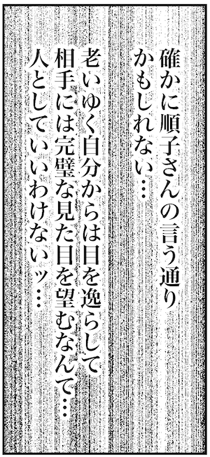 サイゾーウーマンカルチャーマンガ「そんなに見た目が大事なの!?」と言われてしまった カルチャー まんが『オバサンと言われても結婚したい!』102話 【アラフォー婚活ルポ】婚活仲間から「はあ!?」「そんなに見た目が大事なの!?」と言われてしまった 2022/01/30 13:30 白戸ミフル(マンガ家) オバサンと言われても結婚したい! 「そんなに見た目が大事なの!?」 次のページ タイムリーなお誘い 前のページ123次のページ 関連記事 【アラフォー婚活ルポ】『既婚者ですよね?』イケメンの誘いに婚活仲間がビシッと一言!『ザ・ノンフィクション』専業主婦希望の婚活結果は? アラフォー3人が本音告白、「結婚相談所はもう入らない」!?【アラフォー婚活ルポ】バレンシアガのデカいロゴT着る男って、どう思う?【アラフォー婚活ルポ】すご……かっこいい! 海外出張の多い男子の仕事ぶりにホレボレ【アラフォー婚活ルポ】ファッションセンスにドン引き……でも見た目じゃない! 中身だよね! その他の作品を読む