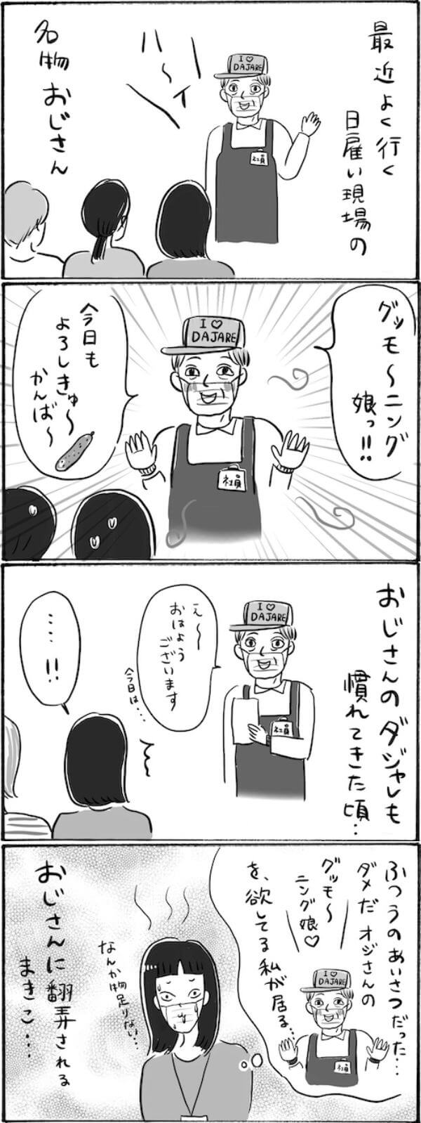サイゾーウーマンカルチャーマンガ柿ノ種まきこ『アラサー独身女、今日も日雇いで生きてます』【漫画】キャラ濃すぎな現場系オジさん カルチャー 【連載】柿ノ種まきこ『アラサー独身女、今日も日雇いで生きてます』 【日雇いマンガ】197話『日雇い名物!? 注目度100%なクセ強オジさん』 2022/03/31 13:00 柿ノ種まきこ(マンガ家) 日雇いマンガ柿ノ種まき子 ――「キツイ」「汚い」「男臭い」……なんとなく近寄りがたいイメージのある“日雇労働”。その、実態はどのようなものなのか? 日雇い労働を生業とするアラサー(いつの間にかアラフォーに)・柿ノ種まきこが、日雇いの日々と人間模様を紹介します。 第197話『日雇い名物!? 注目度100%なクセ強オジさん』 ©柿ノ種まきこ 日雇いに時々現れる名物おじさんや名物おばさん。最初は面食らいますが、後からどんどんくせになる……そんないいキャラの方々です。憂鬱な日もクスッと笑えて元気になります。 ――毎週、木曜日に最新話を更新。次回198話は4月7日(木)の更新予定です。 柿ノ種まきこ(マンガ家) 日雇いをしながらマンガを描くアラサー。過去には、「iVERY」にて婚活マンガ『女もつらいよ』を連載。現在はインスタグラムにて、マンガを不定期投稿。 Instagram:@kakinotane_makiko LINEスタンプ大好評発売中! 最終更新:2022/03/31 13:00 関連記事 【日雇いマンガ】『アラサー独身女、今日も日雇いで生きてます』【149~155話まとめ読み】【日雇いマンガ】『アラサー独身女、今日も日雇いで生きてます』【141~148話まとめ読み】【日雇いマンガ】『アラサー独身女、今日も日雇いで生きてます』【134~140話まとめ読み】【日雇いマンガ】『アラサー独身女、今日も日雇いで生きてます』【127~133話まとめ読み】【日雇いマンガ】184話『年の瀬の一期一会なほっこり体験~今年最後のとある現場より~』 その他の作品を読むバックナンバーを読む 次の記事 「髪のボリュームアップ」おすすめシャンコン >