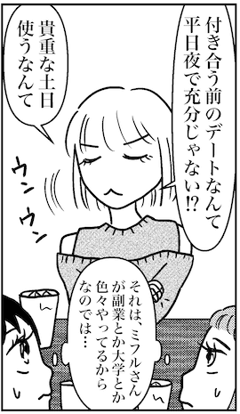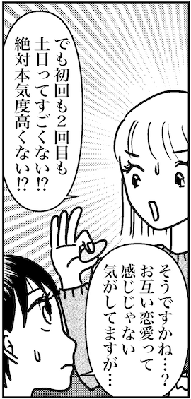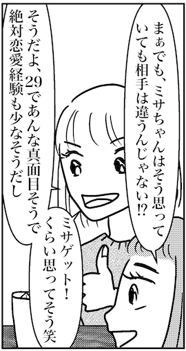 サイゾーウーマンカルチャーマンガじゃあさ、その彼とセックスできる? カルチャー まんが『オバサンと言われても結婚したい!』130話 【アラフォー婚活ルポ】じゃあ、その彼とエッチできる? 付き合うとか考えられる? 2022/05/11 13:30 白戸ミフル(マンガ家) オバサンと言われても結婚したい! ――合コン歴20年以上、累計回数2,500回以上、30代なかばに乳がんで闘病するも、現在は絶賛婚活中のライター・漫画家の白戸ミフルが「アラフォー婚活」の実体験をほぼリアルタイムでお届けします! アラフォー中の結婚は成就するのか……!? 【前回まで】 アラフォー婚活反省会、今回はミサの状況について。合コンで出会った29歳の男子と、サウナトークで意気投合。さっそくサウナデートをしてきて、「また飲みたいね」って状況らしい。「お互い恋愛って感じじゃない」って言うけど、土日デートは本気度高いのでは? 130話『じゃあ、その彼とエッチできる? 付き合うとか考えられる?』 次のページ じゃあさ、彼とエッチできる? 123次のページ 関連記事 「夫にはセックスもさせません」、中年婚活の現実を「婦人公論」が特集【アラフォー婚活ルポ】体の相性も大事だよね!? 騎乗位でヤッてみたら……痛い痛い痛い痛い!【アラフォー婚活ルポ】残念だけど、人生にタラレバはない! そして若くもない!【アラフォー婚活ルポ】アプリで出会ったバツイチ彼、運命の人だと思ってた……けど【アラフォー婚活ルポ】めっちゃタイプな男性とデート! グイグイ押しまくって引かれてる……? その他の作品を読む
