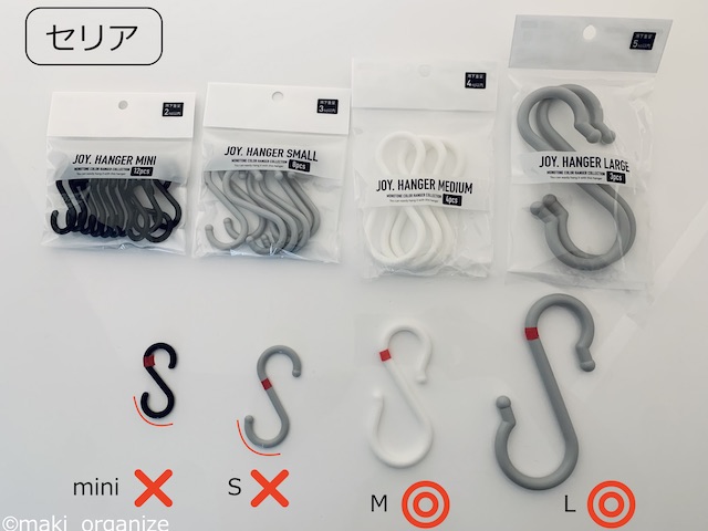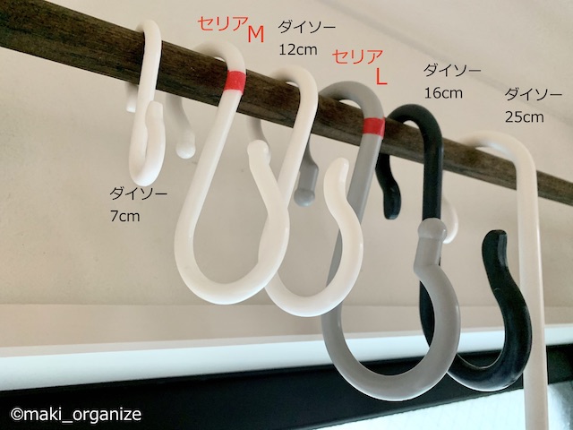 サイゾーウーマン暮らし住まいダイソー「スワン型S字フック」は買い! 収納のプロが用途“最強”フックと太鼓判 暮らし 伊藤まきの「お片付けSOS」相談! ダイソー「スワン型S字フック」は買い! 収納のプロが用途“最強”フックと太鼓判 2022/07/18 19:00 伊藤まき(収納ライター) 【ダイソー】S字フック S-SHAPED HOOK (16cm) 商品番号:4997642165425(C)maki_organize 大きめの16cmも使いやすいサイズです。12cmと同じく、クローゼットやカーテンポールにもOK。吊り下げ収納をすればたくさん掛けることができます。筆者的には、12cmと16cmの2種類が使いやすいサイズです。 使用例(1)家中の「手すり」にはめてロック固定 一般的な手すりの直径は28~32mm程度(C)maki_organize 階段はもちろん、トイレ、浴室にもある家も多い「手すり」にガチッとはめ込みます。筆者宅では、階段上に設置したペットフェンス&ベビーゲートと「手すり」をロック用に活用しています。ドアストッパーのように落ちずに、固定できる点がとても便利です。 使用例(2)たくさん掛けられる吊り下げ収納に! フックのカーブが長いので、バッグにも◎(C)maki_organize クローゼット内でボトムスを収納する場合、「掛ける」が一番楽で、シワができません。耐荷重約10.5kgだから、デニムはもちろん、バッグや帽子も2~3個掛けることができます。フックに太さがあるので「掛けやすさ」も抜群です。 使用例(3)屋外や車の中でも活用! キャンプやピクニックでも役立ちます(C)maki_organize 100均で販売しているS字フックの中で、最も「どこでも使える」タイプ。手すりやポールにガチッとはめ込んで使うも良し、凹凸に掛けるも良しと幅広い使い方が期待できます。屋外や車の中でも活躍できる万能フックです。 【ダイソー】S字フック S-SHAPED HOOK (25cm) 商品番号:4997642165487(C)maki_organize 一番大きなサイズ、25cmです。写真上のパッケージ見本のように、クローゼットポールや干し竿に「ダブルハンガー」としても使えます。ほか、ベランダや車庫など屋外の使用にも◎です。 使用例(1)室内干しや、プラントハンガーなどに 長く使っていますが、折れません!(C)maki_organize 長めのデザインなので「手が届きやすい位置」での使用が多くなります。特に室内干しやプラントハンガー(観葉植物を吊るす)などにも便利。サイズによっては、風呂椅子や湯桶も掛けることができます。 ちなみに、ダイソー「S-SHAPED HOOK」シリーズと似た商品がセリアにあります。 【セリア】S字フック JOY.HANGER(MサイズとLサイズ) 先端に丸みを帯びたデザインが、セリアの特徴(C)maki_organize セリアの「JOY.HANGER」シリーズです。全5種類のサイズを確認しましたが、ダイソーと同じ「スワン型」になるのは、MとLサイズのみです。ミニとSサイズは、フックのバネ感と角度が弱いので今回の内容に当てはまりません。 パッケージ違いの別カラー有り。ともに(株)フジサキの製品(C)maki_organize セリアの「JOY.HANGER」シリーズには、別パッケージのカラフル版もあります。こちらもMとLサイズだけおすすめです。白、黒、グレーのほかにベージュやブルーも展開されています。収納グッズをそろえる時は、内装の建具に合わせて「色を統一」するとスッキリ見えますよ。 【まとめ】ダイソー「スワン型 S字フック」 セリアのモノは赤いマスキングテープをつけました(C)maki_organize ダイソーとセリアの、各種サイズを並べてみました。先端のデザインと色の違いがあるだけで、サイズ感はほぼ同じです。手持ちの「S字フック」にストレスを感じたことがある方は、まずは「MとLサイズ」のお試しをおすすめします。これまでの、落ちる、ズレる、横ブレするなどのイライラから解放される名品です。 ズレずに「キャッチする動画」もチェック! この投稿をInstagramで見る 整理収納アドバイザー|伊藤まき|東京区内(@maki_organize)がシェアした投稿 前のページ123 伊藤まき(収納ライター) 収納ライター・兼・整理収納アドバイザー1級。クリンネスト2級。おがくず工場に生まれ、ホテル清掃員、国鉄系レストランの厨房、内装会社、デパートの搬入搬出など“家事の土台”を極めた生活を経て、出版社入社ののち独立、現在に至る。モノを手放すほど「幸運」が舞い込むジンクスを何度も体感! 貧乏神と決別した実体験をもって、整理収納の威力をお伝えします。 記事一覧 Instagram:@maki_organize 最終更新:2022/07/18 19:07 次の記事 関ジャニ∞ライブに賛否 >