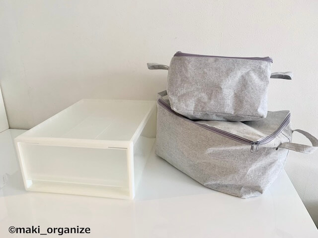 また「圧縮ビニール袋」より繰り返し使える点もおすすめです。かさばる衣類を保管するときは「ファスナー付きの布ケース」を選ぶとコンパクトですよ。
