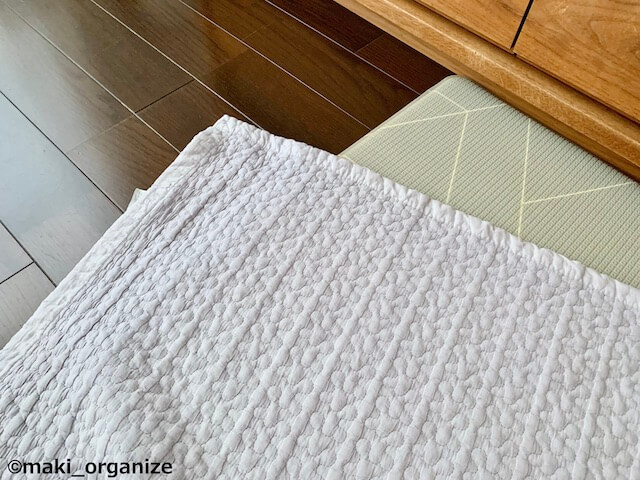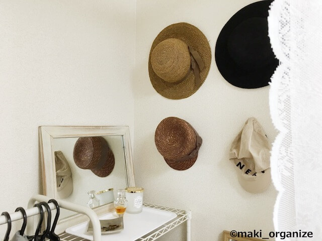 サイゾーウーマン暮らし住まい洋服収納、クローゼット問題を解決 暮らし 伊藤まきの「お片付けSOS」相談! 洋服収納、クローゼットのイライラを解決! ニトリ・セリア・ダイソーのおすすめグッズ 2022/08/22 19:30 伊藤まき(収納ライター) 「お片付け・お掃除SOS」伊藤まき タオル収納:サイズを今どきに変える! 家族の人数分+2枚の余裕が目安量(C)maki_organize 片付け訪問をすると必ず「タオルの量」と「捨てどき」を問われます。景品や贈答品でいただく方も多いので、どの家もたくさんお持ちです。タオルを収納する棚がパンパンで、肌触りがゴワゴワしていたら「タオルのサイズと枚数」を見直すのも◎。 例えば、収納スペースを奪う大判タオル。最近は「50×100cmのスリムバスタオル」が人気です。また、長いハンドタオルの片面ばかりで拭いているようなら「ハンドサイズのタオル」でも良し。干すのも簡単になります。 写真上は、筆者宅のタオルです。安くて小さなタオルを買って「購入日を記入」しています。セール時期を狙ってまとめ買いをすれば「買い時サイン」もわかりやすくなります。 下駄箱収納:「モノ」と「棚板」の高さを調整する 高さ調整は、上からがベスト(C)maki_organize 「棚板の高さ」を調整すると収納力が大きく変わります。ポイントは、棚1枚のゾーンを「同じサイズでそろえる」こと。先のタオルも一緒で、高さや横幅が均等にそろうほど収納力が増えます。 モノのサイズをそろえたら、棚板の高さ調整も。ボックス型の空間の場合は、仕切り箱などで整えます。 下駄箱収納:高さのあるモノは、横に寝かす ダイソー「シューズケース」の透明がおすすめ(C)maki_organize 靴の場合、2〜3個はほかのサイズとそろわない規格外のものをお持ちだと思います。高さがあるものなら、箱に寝かせます。ワイングラスも同じで、数点だけなら「横に寝かす収納」がベスト。一番高さのあるモノに合わせず、平均サイズが多いほうに合わせてセットしていきます。 布団収納:「立てる」ほどスッキリ ファスナーで軽く圧縮できるのが◎(C)maki_organize 大きな押し入れがあれば布団ケースを用意する必要はありませんが、筆者が担当する東京エリアでは押し入れが少なめです。小さな片面扉のクローゼット、屋根裏収納、クローゼットの天袋などに収納することが多いので「タテ入れ収納」でコンパクトに収納します。 最近は、出し入れの簡単さに特化した「円筒型」も人気。布団に限らず、大型の布モノはファスナーや紐付きで圧縮収納します。 Roll&Stack 寝具クローゼット収納バッグ、ファブリックオーガナイザー – S(4ガロン) ホワイト 2個パック ラグ収納:冬用ラグは小さくする コンパクトにたためるので、場所を取らない(C)maki_organize 冬用ラグマットが押し入れに「入らない問題」が割と多めです。筆者宅では、ふわふわの「バスマット」をパズルのように合わせて「ラグマット」として使います。お掃除するときに邪魔にならないサイズなのはもちろん、洗濯機で洗える大きさなのでお手入れも楽ちん。 大きなラグマットのころは、処分費や掃除が大変でした。小さなものを使えば、収納もかさばらずに済みます。 マット収納:冬用マットは「洗える布」と使い分け 毛玉もできないので、お手入れも簡単(C)maki_organize ジョイント式フロアマットに洗える冬用マットを重ね使いするお家も多いです。どちらもかさばり、掃除や手入れも大変で収納空間を奪いがちです。 この問題の解決案は、ジョイント式フロアマットの上に「イブルマット」をかければOK。イブルマットの表面は綿100%のため洗濯などの手入れがすごく楽なうえ、シーズンオフの際もコンパクトに「たためる」ので収納空間を奪いません。 一時的な収納:メッシュバスケットでスッキリ 一時的に置く場所がない問題もすっきり(C)maki_organize 布モノを一時的に保管するボックスも、今ではコンパクトなタイプを選ぶことができます。硬質系のボックスを使わないだけで部屋が広く軽く感じます。 とくに、一時的に置きたい「あとでたたむ洗濯物」や「パジャマ入れ」「着脱した衣類」「夏遊び用のタオル」などにおすすめです。入れるモノもコンパクトな「たためるサイズ」が快適。 写真上は、筆者おすすめの「メッシュバスケット」です。使わない時は、冷蔵庫サイドの隙間にも入るほどスリムになります。 [まとめ]衣類や布モノの「入らない問題」をすっきり! 帽子収納は、あえて「飾る」のもあり(C)maki_organize 洋服、布モノ、服装小物は「使わないけれど捨てたくないモノ」が多いと思います。なので、どこに入れたら良いですか? なんて声もよく届きます。 基本的には、収納グッズを使って圧縮することが大事。次に、使用頻度によって置く場所を変えるのも効果的です。服装小物なら、ドア裏や壁を使えばよいと思います。 非公開: 100均「ワイヤーネット」サイズ一覧|収納のプロが教える活用アイデア実例整理収納アドバイザーの伊藤まきが、片付けに訪問