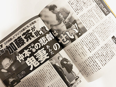 サイゾーウーマンコラム神林広恵「女性週刊誌ぶった斬り」仲本工事さん葬儀の修羅場でわかること コラム “噂の女”神林広恵の女性週刊誌ぶった斬り!【第624回】 仲本工事さん葬儀で妻・純歌に加藤茶、高木ブー長女が激怒ーー修羅場報道からわかること 2022/11/01 21:00 神林広恵(ライター) 女性週刊誌ぶった斬り! 「女性自身」11月15日号(光文社)(写真:サイゾーウーマン) 下世話、醜聞、スキャンダル――。長く女性の“欲望”に応えてきた女性週刊誌を、伝説のスキャンダル雑誌「噂の真相」の元デスク神林広恵が、ぶった斬る! 衝撃のニュースが飛び込んできた。滝沢秀明がジャニーズを退社! この情報はどのマスコミも事前に掴んでいなかったようで、かなりの衝撃を持って受け止められている。その真相は? これまで確執がささやかれ続けた藤島ジュリー景子社長との関連は? ジャニーズの行方は? 今後も大きな波紋を呼ぶこと必至だ。 第624回(10/27〜11/1発売号より) 1位「盟友・加藤茶が叱責 『仲本工事の悲劇は鬼嫁のせい!』」(「女性自身」11月15日号) 同「仲本工事さん急死の裏で起きていた深刻“修羅場”――唖然「振る舞い」の事実婚妻を叱責する加藤茶の怒声 『こうなったのはお前のせいだ!』」(「週刊女性」11月15日号) 参照「仲本工事急逝! 熟年結婚妻『相続権なし』の悲鳴」(「女性セブン」11月10・17日号) 2位「明菜 『復帰は来年』苦渋決断に帯状疱疹後遺症」(「女性自身」11月15日号) 同「中森明菜 『人前に立つの怖い』無念の紅白断念」(「女性セブン」11月10・17日号) 3位「松任谷由実 102歳老母が『コロナ重症から奇跡の生還』」(「女性自身」11月15日号) 先週に引き続き、今週も女性週刊誌3誌が大きく取り上げている、ザ・ドリフターズ仲本工事氏の事故死。もちろん、その主人公は仲本氏の“歳の差妻”の存在だ。 先週、斎場を抜け出し焼き肉屋に行った妻・純歌の姿をキャッチし、そこで話された戒名を巡る金銭に関する不可解な会話や不倫疑惑を報じた「女性自身」だが、今週も飛ばしている。仲本氏が事故に遭い病院に運ばれた後、駆けつけた朋友・加藤茶が、待合室の廊下で仲本氏の妻・純歌に怒りをあらわにしたことを「自身」が報じている。 「仲本がこんなことになったのは、あんたのせいだからな!」と。 加藤茶が怒鳴る。衝撃である。記事によれば、そもそも加藤は以前から純歌に不信感を抱いていたという。未入籍だったことや、仲本氏が純歌に振り回されすぎていることを加藤は心配していたというのだ。 加藤の怒りを報じたのは「自身」だけではない。先週、元フィギュアスケート選手の渡部絵美氏や仲本夫妻と親交があったプロレス団体「西口プロレス」のアントニオ小猪木氏のコメントで、純歌を擁護するような記事を掲載していた「週刊女性」だが、今週は一転、「自身」とほぼ同じ内容の記事を掲載しているのだ。 「週女」によると、仲本氏の事故後、病院に駆けつけた純歌だったが、“純歌ファン”といわれる男性3人も一緒だったという。そして純歌の服装は、胸元が大きく開いたシースルーとミニスカ姿。そこに駆けつけたのが加藤だ。そして純歌に、こう言い放ったという。 「仲本がこうなったのはお前のせいだ! とんでもない女だ!」と。 同じシーンを見たから同じ内容。しかし加藤の激怒を証言したのは、「自身」では“ドリフと長年仕事をしてきたテレビ局関係者”であり、「週女」では“仲本さんの知人”となっているのが面白い。多くの関係者の前で加藤が怒りを爆発させたということなのか。 次のページ 仲本工事さん葬儀での修羅場からわかること 123次のページ 関連記事 小室圭さんだけでなく眞子さんにまでバッシング! 司法試験合格でも続く「週刊女性」と「女性自身」の粗探し永作博美の「国籍デマ」を夫が告発、星田英利も在日認定に反論! 芸能人の悪質デマ拡散の危険性「週刊女性」の企画、医師が食べない「ヤバ食材20」に驚き! これじゃあ、何も食べられない!東出昌大の人たらしに「週刊女性」が取り込まれた? 唐田えりかの体当たりな”近況”にもエール菅田将暉夫妻のロンドン旅行、東出昌大の山小屋0円生活! “直撃”成功の「週刊女性」に軍配