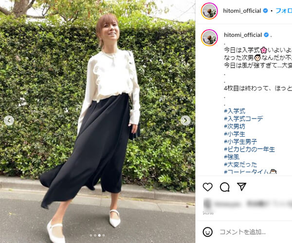 サイゾーウーマン芸能女性タレント芸能人の入学式コーデ7連発 芸能 スライドショー 小倉優子は正統派、辻希美は全身白、矢田亜希子は高級ブランド【芸能人の入学式コーデ7選】 2023/04/17 15:00 仲宗根由紀子(エンタメライター) 芸能ウラ情報 有名人の私生活を垣間見ることができるインスタグラム。各地で入学式が開催された今月は、フォーマルな装いの家族写真を公開する芸能人が相次ぎました。そこで、特に注目された入学(園)式コーデの7人をご紹介! 小倉優子インスタグラムより■小倉優子 紺色の正統派スーツで入学式に出席したのは、3児の母である小倉優子。「今日は、入学式でした 息子の入学式ではなく 私の大学の入学式です笑」とつづり、晴れて白百合女子大学の学生になったことを報告していました。 「子育て、仕事、大学生活 大変なことも沢山あると思いますが、学べることに感謝し 頑張るぞ~」と気合十分の彼女。しかし、家事や子育てに手を抜かないことで有名なだけに、ネット上では「忙しさから、ナーバスにならないといいけど……」と心配する声も散見されます。 辻希美インスタグラムより■辻希美 元モーニング娘。の辻希美は、「希空、青空、入学おめでとう」とつづり、夫・杉浦太陽と共に子どもたちの入学式に参加したと報告。 長女・希空さんの入学式には全身白のパンツスーツ、長男・青空さんの入学式では、ショルダー部分が出っ張ったやや個性的なデザインのブラウスを、白いワイドパンツと合わせていました。 なお、先月には、黒いスーツ姿で卒業式に出席していた辻。彼女に限らず、「卒業式は黒、入学式は春らしい白」と意識的に色分けしているママは少なくないようです。 矢田亜希子インスタグラムより■矢田亜希子 女優の矢田亜希子は、「晴れてよかった!」とつづり、スーツスタイルでパシャリ。金ボタンがおしゃれな「サンローラン」のジャケットと、「ドルチェ&ガッバーナ」のストール、手には「エルメス」の“バーキン”らしきバッグ……と、全身高級ブランドで固めており、人気芸能人らしさが漂っています。 この投稿で、矢田は入学式であることは明言していませんが、元夫・押尾学との間に生まれた、現在15歳の長男がいることから、インスタグラムには「入学式ですか? おめでとうございます」という祝福コメントが多数寄せられていました。 西川史子インスタグラムより■西川史子 タレントで医師の西川史子は、「聖マリアンナ医科大学大学院の入学式でした」「おそらく最年長の新入生です!」と、両親と共に入学式に出席したことを報告。ノーカラーのジャケットをかっこよく着こなしています。 2021年8月に脳出血の緊急手術を受けた西川は、リハビリが続く中で、22年12月に「聖マリアンナ医科大学大学院リハビリテーション科の試験に合格しました」と報告。 現在、西川のインスタグラムには、「大学院生活楽しんでください」「ご両親がお元気なのもうれしいですね」と温かいコメントが並んでいます。 矢口真里インスタグラムより