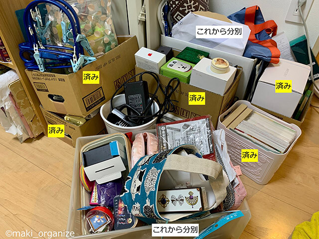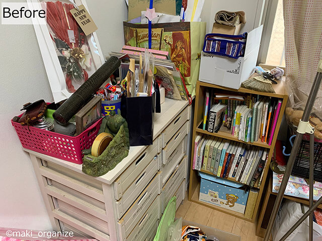 サイゾーウーマン暮らし住まい散らかった部屋の片付け手順10ステップ 暮らし [連載]女たちの「煩悩部屋」ビフォーアフター 【汚部屋】散らかった部屋の片付け手順10ステップ! 専門家が写真付きで詳しく解説 2023/07/18 17:00 伊藤まき(収納ライター) 「汚部屋」ビフォーアフター 【片付け手順ステップ5】モノの山を崩す作業をひたすら繰り返す ペットボトルの段ボール1/2サイズが仕分けに便利(C)maki_organize Dさん宅のような、ひとつの箱や袋に「いろいろな雑貨」が入っている場合は、ひたすら「種類に分ける作業」を繰り返していきます。 【片付け手順ステップ6】ほかの場所でも仕分けを繰り返す 慣れれば時間も短縮できる(C)maki_organize 今度は、白い棚のまわりを片付けます。こちらも【ステップ1〜5】の繰り返しで、中身を全部出しながら種類分け。回数を重ねるほど、手放す覚悟が早くなります。 【片付け手順ステップ7】中身が見えないポーチ収納はリセット 持っているのを忘れたモノも多い(C)maki_organize せっかくの引き出し収納ですが、中身が見えないポーチや袋に入っていると何が入っているの一目でわかりません。そのため、ポーチの中身も出してリセットします。 【片付け手順ステップ8】資料やギフトなど、捨てにくかったモノも仕分け 色褪せる前に、早めに「売って手放す」のも大事(C)maki_organize 資料やギフトなど、捨てにくかったモノも時間がたてば変わります。Dさん宅には2016年発行の小冊子がどっさりありましたが、情報は古くなるので潔く処分。ギフトや手紙なども「今の気持ち」で考えると、手放しやすくなります。 次のページ 【片付け手順ステップ9】収納空間に「種類分けしたモノ」をまとめる 前のページ1234次のページ 関連記事 【汚部屋片付け】大量カバンの収納術を専門家が写真で解説! 種類分けは「4つ」がポイントIKEAの「ハンギング収納」徹底解説! 片付け専門家が教える「たたまない」クローゼットの作り方【クローゼット収納】片付けのプロが「ニトリのハンガー」選ぶ理由――ビフォアフター徹底解説「狭いクローゼット」収納アイデア8選! プロが教える「洋服を捨てない」片付け術片付けのプロが指摘する「クローゼットのNG収納」! 服の脱ぎ散らかしはコレで解決