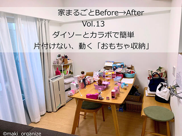 サイゾーウーマン暮らし住まい「片付けたくなる」おもちゃ収納アイディア! 暮らし [連載]女たちの「煩悩部屋」ビフォーアフター 「片付けない」おもちゃ収納術をプロが伝授! カラボと100均だけでオシャレにスッキリ 2023/07/25 17:00 伊藤まき(収納ライター) 「汚部屋」ビフォーアフター 連載企画『「汚部屋」ビフォーアフター』新シーズンがスタート! 第7回目の片付けモニターの応募に当選したのは、東京都中野区・3LDKのマンションに家族と暮らすDさん(40歳)です。 テーブルに放置された人形を片付ける毎日にため息ばかり(C)maki_organize 「いつも仕事から帰ると、片付けから家事がはじまる」とDさん。食卓テーブルの上には、おもちゃの人形がずらり。いつも決まった場所で遊ばないので、アチコチに散らかると困っていました。そんな時は、「動くおもちゃ棚」を作ると効果的です! 「動くおもちゃ棚」を作る材料 無料〜1,200円ぐらいのカラーボックス 物置部屋にあったカラーボックス(C)maki_organize 用意するのは、シンプルなカラーボックス(以下、カラボ)。Dさん宅には、4つもありました。こちらを「子ども専用のおもちゃラック」にアレンジします。カラボは、セールなら1,000円しないで購入できることも。ジモティで無料で譲ってくれることも多いので、コスパも最高で気軽にトライできると思います。 ダイソー プレート双輪キャスター30mm(2個入) 商品番号:4549131304015(C)maki_organize 次に、100均のキャスターを用意します。カラボ1個につき、4つのキャスターが必要。おすすめは、ダイソーの「プレート双輪キャスター30mm(2個入)」です。ネジ付きで、取り付けやすく大きめなので安定感も◎。 次のページ 【おもちゃ収納の作り方1】ドライバーでキャスターを固定 123次のページ 関連記事 【汚部屋】散らかった部屋の片付け手順10ステップ! 専門家が写真付きで詳しく解説【汚部屋片付け】大量カバンの収納術を専門家が写真で解説! 種類分けは「4つ」がポイントIKEAの「ハンギング収納」徹底解説! 片付け専門家が教える「たたまない」クローゼットの作り方【クローゼット収納】片付けのプロが「ニトリのハンガー」選ぶ理由――ビフォアフター徹底解説「狭いクローゼット」収納アイデア8選! プロが教える「洋服を捨てない」片付け術