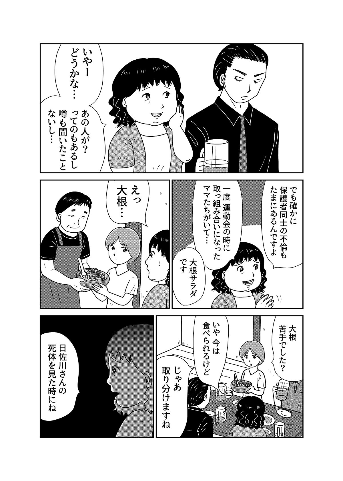 サイゾーウーマンカルチャーマンガマンガ「凶母」4話 カルチャー マンガ「凶母」4話 【マンガ「凶母 4話】「大根みたいに真っ白な脚」第一発見者が語る“死体”の顔。半年前から太りだして 2023/08/03 19:00 サイゾーウーマン編集部 マンガ ▼この作品の購入はコチラ Amazon コミックシーモア Renta! ▼ウーコミ!サイトでの試し読みはコチラ 前のページ12345 サイゾーウーマン編集部 芸能・ジャニーズ・美容・暮らし・カルチャーなど、さまざまな情報を独自の切り口で発信するニュースサイト X:@CyzowomanC Instagram:@cyzowoman オンナを刺激するニュースブログ[サイゾーウーマン] 最終更新:2023/08/04 09:09 その他の作品を読む 次の記事 真麻、百貨店の外商はUber感覚? >