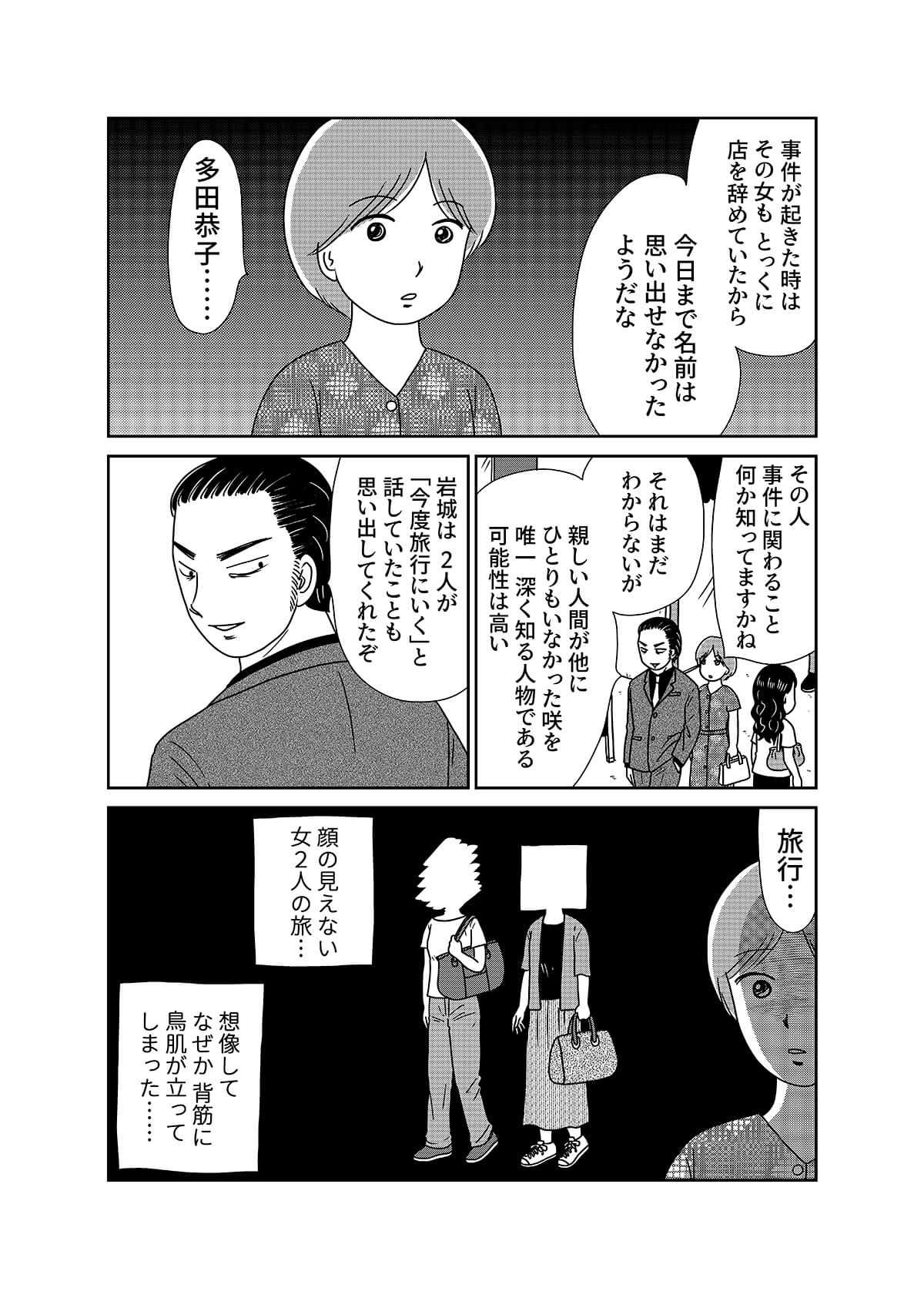 サイゾーウーマンカルチャーマンガマンガ「凶母」5話 カルチャー マンガ「凶母」5話 【漫画「凶母」6話】「風俗で働く“首なし母”の足取りを探る――唯一親しくしていた同僚も「顔なし」で 2023/08/04 19:00 サイゾーウーマン編集部 マンガ 「殺されたはずの母が、実は生きている!?」 ニセ霊能者・東郷高峰の事務所へ相談にやってきたのは、16年前に起きた「小金井首なし殺人事件」の被害遺児・椿希。 街で偶然、殺された母によく似た人物を見かけたという――。 (C)倉田真由美/ウーコミ! サイゾーのコミックレーベル「ウーコミ!」では、新作コミック『凶母(まがはは) 小金井首なし殺人事件 16年目の真相』を、2023年7月31日より紙・電子で同時発売しました。 発売を記念して、なんと本編の1〜6話を一挙無料公開! 『凶母(まがはは) 小金井首なし殺人事件 16年目の真相』第6話 「もうですか? さすがですね」 「俺にかかったらすぐだよ、あんなの」 「岩城茂久……今は池袋でキャバクラの店長をやってるね」 『凶母(まがはは) 小金井首なし殺人事件 16年目の真相』 [1/24] 『凶母(まがはは) 小金井首なし殺人事件 16年目の真相』 [2/24] 『凶母(まがはは) 小金井首なし殺人事件 16年目の真相』 [3/24] 『凶母(まがはは) 小金井首なし殺人事件 16年目の真相』 [4/24] 『凶母(まがはは) 小金井首なし殺人事件 16年目の真相』 [5/24] 『凶母(まがはは) 小金井首なし殺人事件 16年目の真相』 [6/24] 『凶母(まがはは) 小金井首なし殺人事件 16年目の真相』 [7/24] 『凶母(まがはは) 小金井首なし殺人事件 16年目の真相』 [8/24] 『凶母(まがはは) 小金井首なし殺人事件 16年目の真相』 [9/24] 『凶母(まがはは) 小金井首なし殺人事件 16年目の真相』 [10/24] 『凶母(まがはは) 小金井首なし殺人事件 16年目の真相』 [11/24] 『凶母(まがはは) 小金井首なし殺人事件 16年目の真相』 [12/24] 『凶母(まがはは) 小金井首なし殺人事件 16年目の真相』 [13/24] 『凶母(まがはは) 小金井首なし殺人事件 16年目の真相』 [14/24] 『凶母(まがはは) 小金井首なし殺人事件 16年目の真相』 [15/24] 『凶母(まがはは) 小金井首なし殺人事件 16年目の真相』 [16/24] 『凶母(まがはは) 小金井首なし殺人事件 16年目の真相』 [17/24] 『凶母(まがはは) 小金井首なし殺人事件 16年目の真相』 [18/24] 『凶母(まがはは) 小金井首なし殺人事件 16年目の真相』 [19/24] 『凶母(まがはは) 小金井首なし殺人事件 16年目の真相』 [20/24] 『凶母(まがはは) 小金井首なし殺人事件 16年目の真相』 [21/24] 『凶母(まがはは) 小金井首なし殺人事件 16年目の真相』 [22/24] 『凶母(まがはは) 小金井首なし殺人事件 16年目の真相』 [23/24] 『凶母(まがはは) 小金井首なし殺人事件 16年目の真相』 [24/24] ▼この作品の購入はコチラ Amazon コミックシーモア Renta! ▼ウーコミ!サイトでの試し読みはコチラ サイゾーウーマン編集部 芸能・ジャニーズ・美容・暮らし・カルチャーなど、さまざまな情報を独自の切り口で発信するニュースサイト X:@CyzowomanC Instagram:@cyzowoman オンナを刺激するニュースブログ[サイゾーウーマン] 最終更新:2023/08/04 19:00 その他の作品を読む 次の記事 ビオレのミストでドライヤーが快適に >