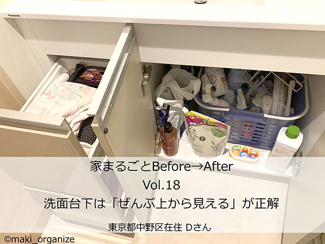 サイゾーウーマン暮らし住まい洗面台下収納は100均アイテムを活用! 暮らし [連載]女たちの「煩悩部屋」ビフォーアフター 【洗面台下収納】100均グッズでごちゃごちゃがスッキリ! プロが選んだ収納ケース&ラックは? 2023/08/29 17:00 伊藤まき(収納ライター) 「汚部屋」ビフォーアフター 連載企画『「汚部屋」ビフォーアフター』新シーズンがスタート! 第7回目の片付けモニターの応募に当選したのは、東京都中野区・3LDKのマンションに家族と暮らすDさん(40歳)です。 中のモノが埋もれて在庫が把握できない(C)maki_organize 今回は、Dさんが使いにくいと困っている「洗面所の下収納」を片付けます。なぜ、洗面台下の収納はゴチャゴチャになって使いにくいのか? その解説と快適な収納法について紹介します。 【洗面台下収納のBefore】モノを出すたびに、ゴチャゴチャ散らかる 奥行きと高さがあるので、使い方が難しい(C)maki_organize Dさん宅の洗面所は、都心の住宅では一般的な「大人ひとりが座れる程のスペース」しかありません。空間に余裕がないと、腰を落としてモノを出し入れする動作がとても大変。また、観音扉タイプなので在庫管理のハードルも高くなります。 写真は「洗面所の下」です。基本的には「洗剤類のストック」と「掃除用洗剤入れ」として使っていますが、ランドリーバスケットの中には謎のストックが。これが散らかりやすくなる理由です! 排水トラップが邪魔に(C)maki_organize また、収納が難しいのは排水トラップがあるため。空間の使い方に工夫が必要で、「押し込むだけの収納」だと散らかり原因に。 【洗面台下の片付け手順1】収納を見直す時は「全部出す」 マンションの床下点検口の蓋を閉じないように(C)maki_organize 収納空間が使いにくいと感じたら、まず中のモノを「ぜんぶ出す」こと。拭き掃除も兼ねて、在庫と空間を見直します。その際、中の寸法を測り記録しておきます。 次のページ 【洗面台下の片付け手順2】手に取りながら「種類別」に分ける 1234次のページ 関連記事 660円で洗面台下のスッキリ収納を実現! 100均ワッツでしか買えない優れモノ、おすすめテクニック収納グッズを変えたら「洗面台」が激変! 「100均」アイテム15点でプロが手直しビフォーアフター整理収納のプロが「100均グッズ」で一発手直し! 使いにくい「洗面台下」収納、解決ビフォーアフター実例ダイソーの“見える化”収納アイテムで、ゴチャつく「洗面台下」を無駄なくフル活用!トイレ、洗濯機など“隙間”にピッタリ!! ダイソー110円「ジョイントラック」の快適収納術8例