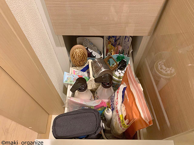 サイゾーウーマン暮らし住まい洗面所の引き出し収納は「仕切る」 暮らし [連載]女たちの「煩悩部屋」ビフォーアフター 【洗面所収納】目的のモノを1回で出せる! 100均グッズ活用「引き出し仕切り術」をプロが伝授 2023/09/05 17:00 伊藤まき(収納ライター) 「汚部屋」ビフォーアフター 洗面所の引き出し(下)【Before】 深めの引き出しに小物収納はNG!(C)maki_organize 歯ブラシやコンタクトレンズなど、小物が埋もれています。在庫数もわかりにくく、姿勢を曲げて出すのも大変です。シャンプー類は、洗面台下の扉付き収納棚へ。小物類は、洗面ミラーの裏へと移動しました。 洗面所の引き出し(下)【After】 ふたにはラベルを(C)maki_organize 引き出しの中身を「掃除グッズのみ」に変更。引き出しの底面に合う「ハーフサイズの収納ボックス」を使って、空間を「ヨコ」に仕切りました。掃除用洗剤は、円筒型やスプレータイプのボトルが多いので10〜12cm幅のファイルボックスだとうまく入りません。 掃除用品のグループにまとめたことで、在庫管理と取り出しが簡単に。また、目的のモノが1回でわかるよう、ラベルを貼ったのもポイントです。 【ダイソーとセリア】ヨコに仕切る「ハーフボックス」の種類 できるだけ透明の収納箱を選ぶと良いです(C)maki_organize 100均の収納箱は、天地でサイズが異なるので引き出しの底面サイズに合わせて選びます。文庫本、漫画、DVD、乾燥食材の収納に適した「ハーフサイズ」と呼ばれるボックスは、横幅25cm以内のスリムな引き出しに合います。とくに、筆者がよく使っていた(C)のサイズは、大きな収納箱を仕切ることも可能です。 (A)ダイソー「積み重ね収納ボックス 深型」100円(税抜) 商品番号:4984355715924 (B)セリア「FITバスケット ハーフ」100円(税抜) 商品番号:4977425200383 (C)セリア、キャンドゥ「ニュー文庫本ケース*」100円(税抜) *現在は、販売の確認ができない商品 次に、洗面所引き出し収納の別の事例も見てみましょう。 次のページ 洗面台の浅めの引き出し【Before】 前のページ123次のページ 関連記事 【洗面台下収納】100均グッズでごちゃごちゃがスッキリ! プロが選んだ収納ケース&ラックは?【子育て中】リビングのお悩みがスッキリ解決! プロが教える整理術&100均グッズ活用法壁面収納の正解はニトリ! プロのアイデア実例で散らかったリビングが劇的スッキリ絶対に散らからないリビング収納はコレ! 片付けのプロが教える「壁面収納」のやり方リビングが劇的に片付く! プロが教える4つの「散らかる理由」&おすすめ収納グッズ