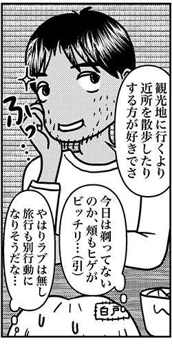 サイゾーウーマンカルチャーマンガアラフォー婚活、海外旅行もラブはなし? カルチャー まんが『オバサンと言われても結婚したい!』270話 【アラフォー婚活ルポ】アプリの男性と海外旅行もラブはなし? 初日から大トラブル発生 2023/09/10 13:30 白戸ミフル(マンガ家) オバサンと言われても結婚したい! ――合コン歴20年以上、累計回数2,500回以上、30代なかばに乳がんで闘病するも、現在は絶賛婚活中のライター・漫画家の白戸ミフルが「アラフォー婚活」の実体験をほぼリアルタイムでお届けします! アラフォー中の結婚は成就するのか……!? 【前回まで】 20代男子にセフレにされかけた痛い経験をバネにして「婚活の鬼」になった私。マッチングアプリを中心に行動中! 趣味とノリが合ったことから、出会ってすぐの男性とベトナムに旅行へ。しかし、初日から大トラブルが発生し……。 270話『アプリの男性と海外旅行もラブはなし? 初日から大トラブル発生』 次のページ この上ないストレス 123次のページ 関連記事 【アラフォー婚活ルポ】アプリで出会った彼氏とスピード破局! イケメンだったのに惜しいことした?【アラフォー婚活ルポ】アプリ婚活を再開! コミュニティで共通の話題のある人を探す!【アラフォー婚活ルポ】なんつーイケメン!!! 銀座に降臨した美しき婚活男性【アラフォー婚活ルポ】39歳でフラれた私は「鬼」になった! 恋愛してやる!! 【アラフォー婚活ルポ】結婚相談所の紹介は○○……アラフォー3人、2021年の婚活を振り返る! その他の作品を読む