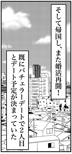 サイゾーウーマンカルチャーマンガアラフォー婚活、婚活を再開も…… カルチャー まんが『オバサンと言われても結婚したい!』275話 【アラフォー婚活ルポ】バチェラーデートを再開! 47歳の努力家と食事をするもやっぱり…… 2023/09/27 13:30 白戸ミフル(マンガ家) オバサンと言われても結婚したい! ――合コン歴20年以上、累計回数2,500回以上、30代なかばに乳がんで闘病するも、現在は絶賛婚活中のライター・漫画家の白戸ミフルが「アラフォー婚活」の実体験をほぼリアルタイムでお届けします! アラフォー中の結婚は成就するのか……!? 【前回まで】 20代男子にセフレにされかけた痛い経験をバネにして「婚活の鬼」になった私。マッチングアプリを中心に行動中! 韓国旅行から帰国し、「バチェラーデート」での婚活を再開させる。デート相手は決まったものの、希望年齢よりも年上で……。 275話『バチェラーデートを再開! 47歳の努力家と食事をするもやっぱり……』 次のページ 45歳までにしてるのに…… 123次のページ 関連記事 【アラフォー婚活ルポ】アプリで出会った彼氏とスピード破局! イケメンだったのに惜しいことした?【アラフォー婚活ルポ】アプリ婚活を再開! コミュニティで共通の話題のある人を探す!【アラフォー婚活ルポ】なんつーイケメン!!! 銀座に降臨した美しき婚活男性【アラフォー婚活ルポ】39歳でフラれた私は「鬼」になった! 恋愛してやる!! 【アラフォー婚活ルポ】結婚相談所の紹介は○○……アラフォー3人、2021年の婚活を振り返る! その他の作品を読む