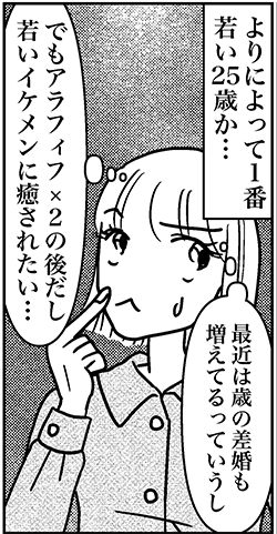 サイゾーウーマンカルチャーマンガアラフォー婚活、20代からオファーが! カルチャー まんが『オバサンと言われても結婚したい!』276話 【アラフォー婚活ルポ】アプリで3人の20代からオファー! 婚活目的だけど大丈夫? 2023/10/01 13:30 白戸ミフル(マンガ家) オバサンと言われても結婚したい! 残ったのは1人だけ ――続きは10月4日公開! 【アラフォー婚活ルポ】韓国・釜山を満喫! 海鮮に美活、夜遊びでイケメンとの出会いも――合コン歴20年以上、累計回数2,500回以上、30代なかばに乳がんで闘病するも、現在は絶賛婚活中のライター・漫画家の白戸ミフルが「アラフォー婚活」の実体験をほぼリアルタ...サイゾーウーマン2023.09.24 【アラフォー婚活ルポ】「お互いがんばりましょう」って……相当態度に出てた?――合コン歴20年以上、累計回数2,500回以上、30代なかばに乳がんで闘病するも、現在は絶賛婚活中のライター・漫画家の白戸ミフルが「アラフォー婚活」の実体験をほぼリアルタ...サイゾーウーマン2023.09.20 ――バックナンバーはこちら 前のページ123 白戸ミフル(マンガ家) 神奈川県出身。漫画家・ライター。タレント活動の後、マスコミ系の職業を渡り歩き、現在は化粧品メーカーに勤務。合コン歴20年以上、累計回数2500回以上。女性向けwebメディアほか、男性向けメディア、旅系メディア等でライターとして幅広く執筆。著書『合コン・アンド・ザ・シティ 恋活・婚活女子の合コンマニュアル』(ごきげんビジネス出版)、 『乳がんステージ4だった私が、それでも合コンに行きまくって救われた話』(キノブックス) 記事一覧 X:@takara0722 Instagram:@tamifull0722 【アラフォー闘病&婚活記】 最終更新:2023/10/01 13:30 どんな感じの子が来るのかな? 関連記事 【アラフォー婚活ルポ】アプリで出会った彼氏とスピード破局! イケメンだったのに惜しいことした?【アラフォー婚活ルポ】アプリ婚活を再開! コミュニティで共通の話題のある人を探す!【アラフォー婚活ルポ】なんつーイケメン!!! 銀座に降臨した美しき婚活男性【アラフォー婚活ルポ】39歳でフラれた私は「鬼」になった! 恋愛してやる!! 【アラフォー婚活ルポ】結婚相談所の紹介は○○……アラフォー3人、2021年の婚活を振り返る! その他の作品を読む 次の記事 笑点「変わった」、視聴者不満 >