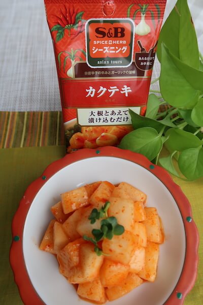 サイゾーウーマン暮らし食べ物カクテキの素活用アレンジ 暮らし 【調味料ソムリエのおすすめ】 シーズニングスパイス「カクテキ」、おすすめの使い方レシピ! 鶏つくねやおかずに◎ 2023/10/15 19:00 MICHIKO(調味料ソムリエ) 料理 ――調味料ソムリエ/野菜ソムリエでカレーマイスターのMICHIKOさんが、注目の調味料を使ったレシピを紹介します。今回は、シーズニングスパイス「カクテキ」の活用法です! 食欲の秋! スーパーに行けば、縦にずらりと並んでいるシーズニングスパイス。何がいいか、迷うのも楽しみのひとつですが、目についたのが「カクテキ」です。肌寒さ日が増えると大根もおいしくなるし、ほかにも何か使えるのではないかと手にとってみました。 シーズニングスパイスといえば、世界にもさまざまなスパイスやハーブを塩などとミックスしているものがあり、それを使えば、料理がおいしくなるものも多いです。“シーズニングスパイス=お手軽調味料”として、いつものおなじみメニューもおいしく変身します。 シーズニングスパイスの良さは、これ1袋で自宅で本格的な味が楽しめること、調味料をあれやこれや準備する必要ないこと、料理の初心者だって失敗知らずに作れること。一番の良さは、「料理する」ってことです。和えるだけでも、炒めるだけでも、ひと手間加えることで「私が作った料理」が完成します。まさに、便利アイテム、魔法の調味料!! S&Bシーズニング「カクテキ」、おすすめチョイ足し カクテキ(C)サイゾーウーマン カクテキと言えば、言わずと知れた韓国。代表的なオムニのお惣菜です。韓国の味わいは、食卓にたびたび登場する慣れ親しんだ味わいですね。唐辛子の辛みは、クセになる「辛うま」。特に唐辛子に含まれる辛味成分カプサイシンには、これから寒くなる季節に体を温めてくれたり、ストレス解消に繋がったり、ダイエット効果もあるとか、うれしい効果がいっぱいです。 1回はレシピ通りにカクテキを作っても、次は違うものが食べたい……。そんな思いも、魔法の調味料ならいろいろなレシピに早変わり。 レシピはチョイ足しがおススメです。味噌汁やうどん、ラーメンなどの汁物、納豆やサラダ、いつものおかずにプラスしたり、チャーハンやパスタ、焼きそばに混ぜ込んだり、卵焼きやチーズトーストした食パン、焼き鳥や焼き肉や焼き魚に。 オイルを加えればドレッシング風に、フライドポテトにかければ簡単に味変できちゃいます。何にでもふりかけて! 自分流に、「カクテキ」を加える量を加減したり、別の調味料を加えてアレンジするなど自由自在です。封を開けたら、残さずに使い切りましょう。 「カクテキ」レシピは、大根4cm(150g)を1cm大の角切りにして、カクテキを混ぜ、冷蔵庫に30分置きました。さらりと味も染みています。ほかに、「トマトと玉子のとろふわ炒め」「アンチョビポテト」などもおすすめです。 カクテキおすすめレシピ:鯛のカクテキ風味のサラダ包み 鯛のカクテキ風味のサラダ包み(C)サイゾーウーマン ・野菜と和えるだけでカクテキ風味のサラダに! ・お刺身に巻くだけで、おもてなしにも! 【材料】 (2人分) 鯛(刺身用) 8枚(90g) 千切り野菜(市販 5種野菜とキャベツの千切り) 100g カイワレ大根 適量 カクテキ 1袋 MCTオイル 少々 【作り方】 (1)千切り野菜にカクテキを加えて、よく混ぜ合わせる。 (2)鯛の刺身に1を適量加えて、巻く。 (3)器に盛り、カイワレ大根を飾り、MCTオイルを全体に回しかける。 カクテキおすすめレシピ:カクテキ風味の鶏つくね焼き カクテキ風味の鶏つくね焼き(C)サイゾーウーマン ・ひき肉にカクテキを入れて、練って、まとめて、焼くだけ! ・おかずにも、酒のおつまみにも! 【材料】 2人分 鶏ひき肉 200g ニンジン 3cm(30g) パセリ(乾燥) 小さじ1╱2 生姜(すりおろし) 小さじ1 カクテキ 1袋 レモン 適量 フリルレタス 適量 【作り方】 (1)ボウルに、鶏ひき肉とみじん切りにしたニンジン、パセリ、生姜、カクテキを加えて、よく混ぜ合わせ、12等分にして丸める。 (2)オーブントースターの天板にアルミホイルなどを敷いて、1を並べ入れ、グリルかオーブントースターに入れて8~10分ほど、こんがりと焼いて中まで火を通す。 (3)2にピック等に指して器に盛り、フリルレタスとレモンを添える。 カクテキおすすめレシピ:大根牛バラのカクテキ風味煮 大根牛バラのカクテキ風味煮(C)サイゾーウーマン ・手間がかかる煮物もシーズニングスパイスで手間なし! ・じんわりと辛くて、しみじみおいしい! 【材料】 2人分 大根 5cm(200g) 牛バラ薄切り肉 150g にんにく(おろし) 小さじ1 ごま油 小さじ2 大根の葉 少々 カクテキ 1袋 A:めんつゆ 大さじ1強 A:水 150ml 【作り方】 (1)大根は皮付きのまま、食べやすい大きさに切り、牛肉は大きめの一口大に切る。 (2)鍋にごま油を熱し、1とにんにくを加えて炒め合わせ、Aを加えて沸騰させ、蓋をして、弱火で10分ほど、大根が軟らかくなるまで煮る。 (3)カクテキと細かく刻んだ大根の葉を入れて