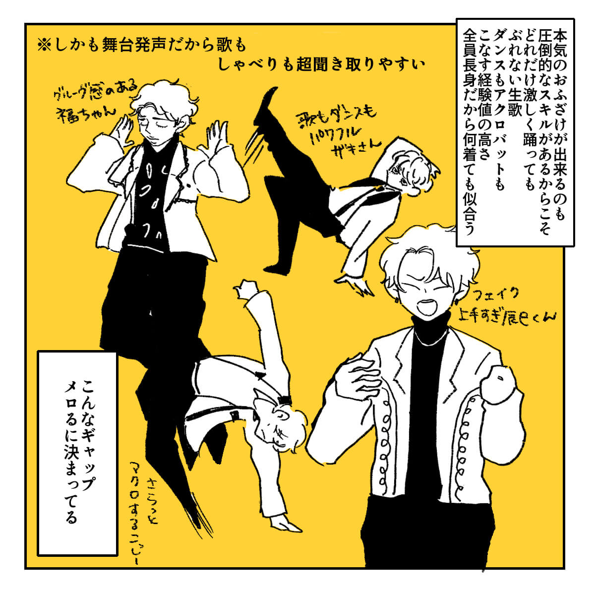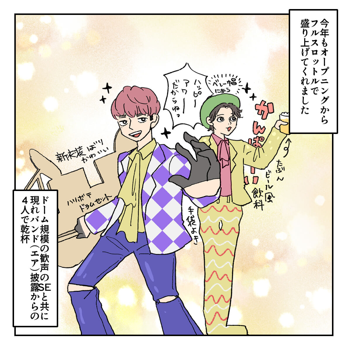 サイゾーウーマン男性アイドルSTARTO(旧ジャニーズ)【ジャニオタマンガ】ふぉ~ゆ~の“ギャップ”にメロメロ! ライブ『HAPPY 4U.HOUR』レポ 男性アイドル [ジャニオタ漫画家・竜田トキヒロの“推し事”見聞録]vol.28 【ジャニオタマンガ】ふぉ~ゆ~の“ギャップ”にメロメロ! ライブ『HAPPY 4U.HOUR』レポ 2023/10/18 21:00 竜田トキヒロ(マンガ家) 竜田トキヒロの“推し事”見聞録 ――Twitterで日々、ジャニーズタレントにまつわるイラストを投稿中のジャニオタ漫画家・竜田トキヒロが、現場レポートからドラマや映画、番組レビューまで、“推し事”の様子をお届け! 今回は、舞台を中心に活躍する4人組グループ・ふぉ~ゆ~のコンサート『ふぉ~ゆ~ LIVE TOUR 2023 HAPPY 4U.HOUR』東京公演の模様をレポート! 福田悠太、辰巳雄大、越岡裕貴、松崎祐介の4人の「ゆう」で2011年に結成されたふぉ~ゆ~。圧倒的なパフォーマンス力でファンを魅了し、KinKi Kids・堂本光一ら先輩たちからも抜群の信頼を寄せられています。 CDデビューをしないまま、17年にジャニーズJr.を卒業し、唯一無二の存在感を放つ彼らが見せたステージとは――。 ふぉ~ゆ~の圧倒的なスキルとおふざけの“ギャップ”にメロメロ! 次のページ ふぉ~ゆ~のライブは、「オタクの見たいもの」が全部詰まってる!? 12次のページ 関連記事 【ジャニオタマンガ】坂本昌行と7 MEN 侍がまるで“親鳥とヒヨコ”! 『GIFT for X』の見どころ【ジャニオタマンガ】相葉雅紀に容赦ない岸優太、風間俊介がCDデビュー! 『VS魂』最終回名シーン【ジャニオタマンガ】山田涼介の美貌とコントが交互に! 賛否両論の映画『大怪獣のあとしまつ』レビュー【ジャニオタマンガ】井上瑞稀、矢花黎、西村拓哉の演技が光った、ドラマ『なれの果ての僕ら』レビュー【ジャニオタマンガ】映画『禁じられた遊び』、ヒロインは橋本環奈ではなくジャニーズWEST・重岡大毅だった