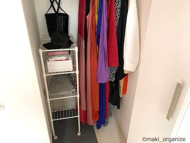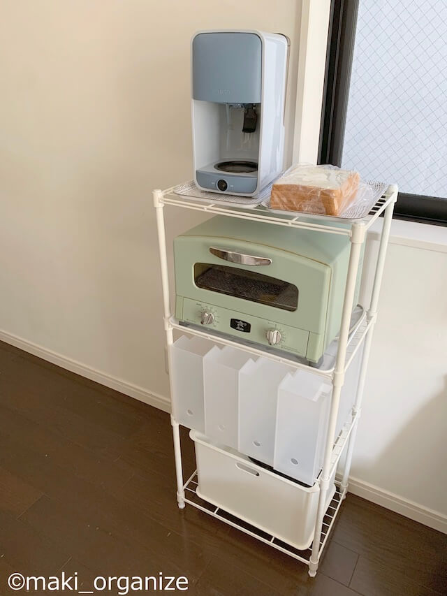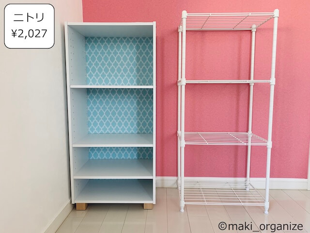 サイゾーウーマン暮らし100均・雑貨【ニトリ】2,990円収納ラック、コスパ◎ 暮らし ニトリプロが選ぶ収納グッズ(3) 【ニトリ】2,990円収納ラック、片付けのプロがリピ買い! コスパ抜群のアイテム 2023/11/05 13:00 伊藤まき(収納ライター) 伊藤まきの「お片付けSOS」相談 街にあると安心するニトリ(C)maki_organize 整理収納アドバイザー・伊藤まきさんがサイゾーウーマンで連載中の「『お片付けSOS』相談!」。片付けに役立つアイテムや収納実例などを紹介していますが、これまでに取り上げたアイテムは数知れず。ダイソー、セリア、ニトリ、無印良品なども登場した中、今回はニトリから「プロがリピ買いするアイテム」を紹介します。 ※写真に記した価格は2022年6月時点の情報です。本文内で現在価格を記載。 ※最新情報は公式サイトでご確認ください。 ニトリ【2,990円】スチールラック LT (3段) 現在の価格は2,990円(商品コード)8790984(C)maki_organize 最後は、ニトリの「スチールラックLT(3段)」2,990円です。実はこれ、カラボより、コスパの良い収納家具です。写真上のように、ニトリのカラボより収納力が大きいとわかります。 一般的なスチールラックのポール(脚)の直径が25mmに比べ、こちらの「スチールラックLT」は15mmのスリムタイプ。軽いので、女性でも片手で持ち上げることができます。 現在の価格は2,990円です(C)maki_organize 別売りのオプションも充実していて、キャスターを付けて可動式にしたり、板を増やすこともできます。棚板の網目から物がこぼれ落ちないように、リバーシブルボードやPPシートを付けることもできます。 使用例としては、クローゼットや押し入れの空間の区切りに使います。ほか、ミニ家電の収納ラック、下駄箱、分別ゴミをまとめたりと万能です。 ニトリ【2,990円】スチールラック LT :クローゼット使用例 奥行きを正面のして設置(W29.5×D44.5×H98cm)(C)maki_organize 「通気性」の良さが際立ちます。ミニクローゼットの仕切りに活用すれば、寝具や衣類の湿気対策にも役立ちます。カラボのような四隅(角)がないので、埃も増えず衛生的に使うことができます。 ニトリ【2,990円】スチールラック LT :シューズラックの使用例 プラダンなどを敷くと◎(C)maki_organize 下駄箱の収納力が足りなければ、シューズラックにも使えます。網目から、ヒールが落ちないように100均のPPシートやプラダン、マルチマットなどを用意すると◎。バッグ用の収納ラックにもおすすめ。バッグは掛けるより、置くほうが型崩れ防止になります。 ニトリ【2,990円】スチールラック LT :ミニ家電の収納例 一人暮らしにちょうどよいミニ家電も(C)maki_organize 木製のカラボだと、熱が出る家電を置くことができません。「スチールラック LT」なら、放熱ができるうえ配線コードも通せます。水を使うミニ家電(加湿器、コーヒーマシーン、アイロンなど)も、トレー上に置けば大丈夫。カラボのように、濡れて劣化する心配もありません。 ダイソー収納アイデア&アイテム人気記事10(※画像クリックで記事に飛びます) ダイソー「蓋付き収納 BOX」商品番号:4549131634921ダイソーの「蓋付き収納 BOX」。大型クローゼットや押入れがない家でも機能的に収納ができる、便利なアイテムです。ジッパー付きの軽量サイズ(182g/ライター調べ)だから、高い場所に置いても片手で降ろせます。価格は330円(税込)ですが、無印良品の「ポリエステル綿麻混・ソフトボックス」(1,490円/同)の5分の1。 ダイソー「強力吸盤フック」「ミニ突っ張り棒」ダイソーの「強力吸盤フック」耐荷5kg(2P)と耐荷2kg(4P)、そしてミニ突っ張り棒(2P)。この2グッズがあるだけで、家中の困ったコトにかなり役立ちます。この強力吸盤フックは、ツルツルした面(タイル、ガラス、琺瑯など)に適しているので、トイレに使うのも便利。生理用品を入れたポーチや、流せるトイレブラシを吊り下げます。ミニ突っ張り棒は、床下から20〜30cmの場所がベスト。 ダイソー「ホッピングバッグ」商品番号:4549131306484ダイソーの「ホッピングバッグ」なら、使わない時は畳めて「かさばらない」ので、狭い空間を奪いません。イレギュラーなモノが増えた時も、サッと広げるだけで便利な収納ボックスへと変わります。ブランケットや羽織の収納ボックスとして。 あちこちに脱ぎ散らかした衣類も、簡単に回収できます。キッチンペーパーやトイレットペーパーなど、収納棚に入りきれなかったストック品もまとまります。ペットシーツやおむつの在庫入れなど、紙モノに最適 ダイソー「超強力マグネット」商品番号:4549131230475マルチに使える、ダイソー「超強力マグネット」。一般的な磁石に比べて、一度貼り付くと剥がすのも困難な磁力を誇ります。ティッシュケースにマグネットをつけたり、リモコンにつけたりすれば、簡単に壁面収納がかないます。このマグネットを使って自作したティッシュケースは、山崎実業のマグネット付きティッシュケースにそっくりなのに、7分の1の価格(制作費400円)で済みまし