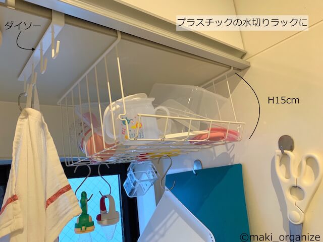 写真上は、筆者宅が実際に長く使用している例です。拭くのが面倒すぎる、プラスチック用品の水切りラックとして使っています。洗浄後、置いておくだけで自然乾燥できるので楽ちんです。間口の高さが15cmで、手前に立ち上がりがあるためストレスなく使えます。
