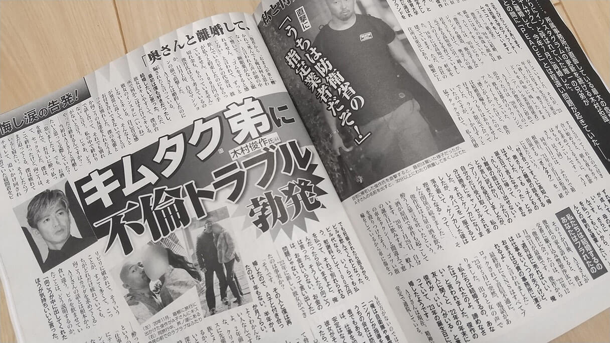 サイゾーウーマンコラム神林広恵「女性週刊誌ぶった斬り」木村拓哉の弟に不倫報道! コラム “噂の女”神林広恵の女性週刊誌ぶった斬り!【第674回】 木村拓哉の弟に不倫報道! 「週刊女性」の興味深い記述とマスコミ倫理の問題とは? 2023/11/14 21:00 神林広恵(ライター) 女性週刊誌ぶった斬り! 「週刊女性」11月28日号(主婦と生活社)(C)サイゾーウーマン 下世話、醜聞、スキャンダル――。長く女性の“欲望”に応えてきた女性週刊誌を、伝説のスキャンダル雑誌「噂の真相」の元デスク神林広恵が、ぶった斬る! これほど腐った組織だったとは。宝塚歌劇団のいじめ自殺問題で、11月10日に遺族の代理人弁護士が会見し、過酷な労働状況やハラスメントを訴えた。が、宝塚側は相変わらずこれらを否定、トラブルはなかったと主張し続けている。美しいどころか腐っている。 第674回(11/9〜11/14発売号より) 1位「キムタク弟に不倫トラブル勃発」(「週刊女性」11月28日号) 2位「木村拓哉の天命『SMAPをもう一度!』」(「女性セブン」11月23日号) 3位「松本潤に新社長が懇願『嵐が退所者を引き留めて!』」(「女性自身」11月28日・12月5日合併号) そうきたか。「週刊女性」がスクープしたのが木村拓哉の弟の不倫告発だ。それは、いろいろな意味で興味深いものだった。 まずは不倫の概要から。キムタクの7歳年下の弟(記事では実名・以下キム弟)は学生時代からアメフト選手として有名で現在は防衛大学アメフトチームでコーチを務めている。私生活では2004年に結婚し2児をもうけたが離婚し、今年23年7月に再婚している。そんなキム弟だが、最初の妻と婚姻関係はあったものの、別居していた20年秋頃から2年にわたり第三の女性A子さんと不倫関係にあったという。記事はA子さんの告発に基づくものだが、その内容は赤裸々だ。 妻と離婚すると言ってなかなか話が進まなかったこと、キム弟の強い性欲について、20年7月に飲みすぎて車を殴り現行犯逮捕されたこと、ゴムをすると感じないと言ってピル代を払うと言いながら不履行なこと、A子の母に“100万円を払ってもいいから婚約破棄したい”と訴えたこと、などなど。そして23年5月には、知らない女性から“私たち結婚するの”という電話がかかってきて、A子さんはキム弟の再婚を知ったという。 だが面白いのはここから。「週女」はA子さんの告発をもとに、キム弟を直撃しているのだが、キム弟の主張はA子さんの告発と真っ向対立するものだった。A子さんは自己肯定感が異常に高くすぐキレる。性欲が強く、断るとキレて追いかけ回され、寝間着をビリビリにされた。ピルもA子さんが“中に出したほうが気持ちいい”と言ったから。用事があり会えないと夜中に延々とチャイムを鳴らされたなど、A子さんからのストーカー被害に遭ったと30分にわたり興奮し、まくしたてるように訴えたという。 キム弟の反論は、かなり生々しく異例だ。だって普通はここまでしゃべらない。普通こうした問題で週刊誌に直撃されるのは、有名人や芸能人だ。イメージも大切だし、事実がどうであれ、相手をさらに怒らすようなことを言っては面倒なことになる。自重する。でもキム弟は有名人の弟。アメフト界で有名だとはいえ、一般人だ。あけすけにしゃべった。その反論ぶりがまずは面白い。兄と違って、あっけらかんでワイルド、そしてやんちゃな性格だと思われる。 キムタク弟氏がA子さんに言い放ったという台詞 双方主張が食い違っているが、まあ男女の問題はそんなもんだろう。でもいいのか? 「週女」。キム弟を実名かつ写真付きで報じちゃって。以前からキム弟が有名な存在とはいえ、マスコミ倫理の問題もある。加えてジャニーズ性加害問題の余波でもある。以前だったら、ジャニーズの象徴とも言えるキムタクの弟の不倫なんて、決して記事化されなかっただろうから。キム弟が少し気の毒になる。 そして記事には、もうひとつ興味深い記述が。それはキム弟氏がA子さんに言い放ったという台詞だ。22年末、A子さんがキム弟氏の家を訪れると、理由は不明だがキム弟は交番に駆け込み警察沙汰になった際のこと。 「週刊誌に売ればいい。俺は仕事をいくつか失うけど、おまえは兄貴の事務所に潰されるよ」 キム弟は「週女」の直撃にこの発言を否定しているが、いずれにせよ2人のいずれか、または双方で“週刊誌”や“ジャニーズ”、そして“事務所圧力”までもが認識され、意識されていたことは興味深い。 キム弟にとっては、とんだとばっちりな事態だと思われるが、一方の兄は、この騒動を知っていたのだろうか。「週女」は兄の事務所に取材はしなかったようだが、それだけが気になる。 「女性セブン」がSMAP再結成報道でフィーチャーする木村拓哉 そして兄・木村拓哉の動きも依然注目される。旧ジャニーズ事務所が解体され新たなエージェント会社の社長に「スピーディ」代表取締役・福田淳氏が就任するが、このことが発端となってSMAP復活問題が浮上しているからだ。 先