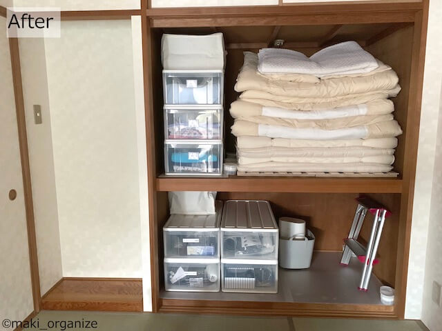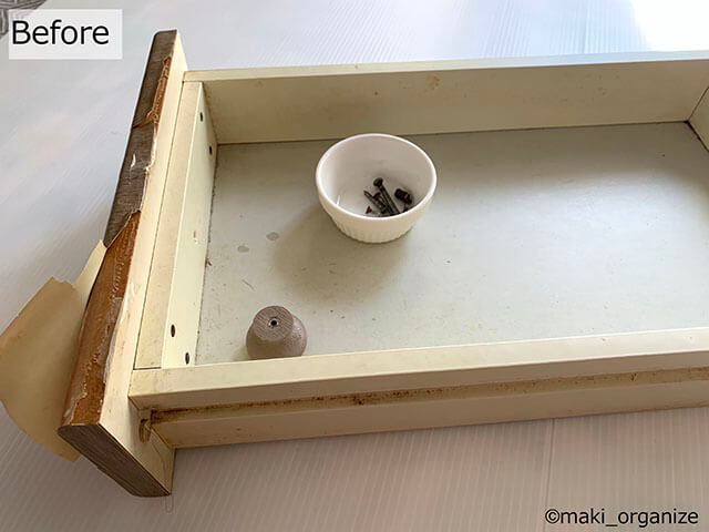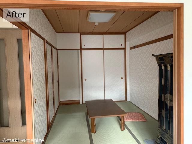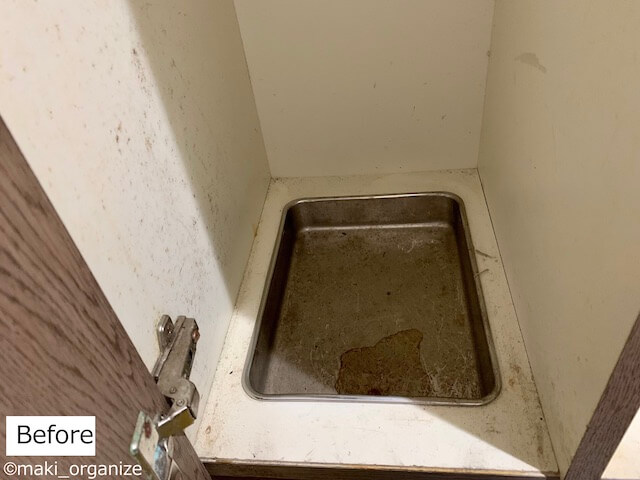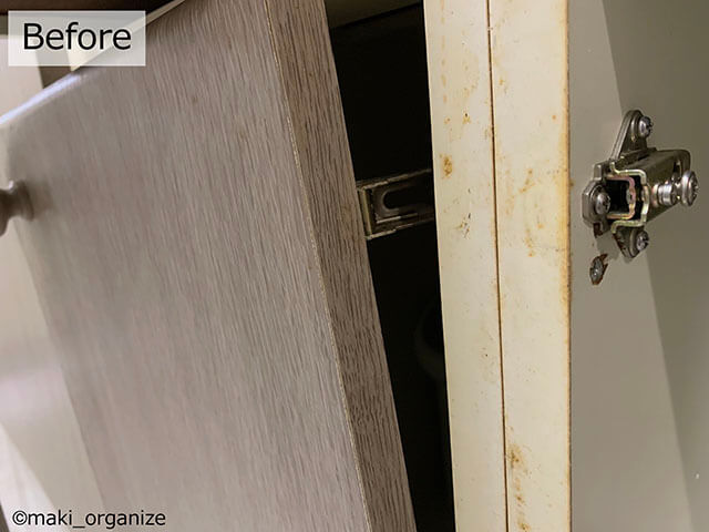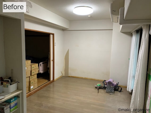 サイゾーウーマン暮らし住まい片付け・掃除ビフォーアフター画像15連発 暮らし [連載]女たちの「煩悩部屋」ビフォーアフター 黒カビ中古マンション【片付け・掃除ビフォーアフター画像】15連発! プロのDIYで築30年が復活 2023/12/05 17:00 伊藤まき(収納ライター) 「汚部屋」ビフォーアフター 中古マンション再生! 整理収納アドバイザー・伊藤まきさんの連載企画「汚部屋 ビフォーアフター 23回目」は、ゴミ屋敷だった伊藤さんの実家じまいから始まりました。実家じまいのあと住み替えた築30年の中古マンションは湿気で黒カビだらけ! その内装が、明るく変わる全貌を15連発まとめて紹介します。 (C)maki_organize 築30年の中古マンションは、どの部屋も黒カビだらけで臭いもありました。それにより、付近相場よりお宝物件のこの家。前の住人に感謝を込めて、この家を元気に! キレイに復活させました。 壁紙と床は交換レベルなのでリフォーム会社へ依頼。その他、掃除とDIYができる部分は「自力でキレイ」にしました。それらの様子を、ビフォーアフター写真15連発で紹介します。 目次 (1)汚れた「玄関」 (2)黄ばんだ「下駄箱」 (3)薄暗く不気味な「廊下」 (4)木部のシミが怖い「和室」 (5)シミだらけの「押し入れ」 (6)薄暗く黄ばんだ「リビング」 (7)結露で傷んだ「ダイニング」 (8)黒カビだらけの「洋室」 (9)昭和時代の「コンロ」と「換気扇」 (10)中途半端な空間がある「キッチン」 (11)黒カビと黄ばみだらけの「トイレ」 (12)汚れた洗面台 (13)ベタベタした洗面台の「ニッチ棚」 (14)収納がない「脱衣所」 (15)30年使い続けた排水口など ■中古マンションが汚れた理由は「結露」だった 【片付け・掃除ビフォーアフター.1】汚れた「玄関」 (Before)結露で、壁紙が剥がれ黒カビが発生(C)maki_organize (After)すっきり清潔!(C)maki_organize 【プロ】壁紙と巾木、貼り直したクッションフロアの施行。 【DIY】自力では、玄関のドアまわりを「3Mの洗剤」で落としました。ドア枠の鉄部(ネジも含む)のサビもひどいので、翌夏に作業をする予定。 【片付け・掃除ビフォーアフター.2】黄ばんだ「下駄箱」 (Before)下駄箱の中も、黒カビと黄ばみ汚れだらけ(C)maki_organize (After)リメイクシートの総予算は、660円(C)maki_organize 【DIY】下駄箱の中は、中性洗剤で汚れを落としました。どうしても黄ばみが落ちないので、100均のリメイクシートとフロア材を使って「貼り替え」ました。ただし、シート紙が薄いため使い捨てとなります。 【予算660円】ウタマロ&100均アイテムでカビだらけの下駄箱が激変! プロが教えるセルフ掃除術中古マンション再生! 連載企画「汚部屋 ビフォーアフター」は、筆者の「新しい実家」です。実家じまいを経て、中古マンションへと住み替えました。築30年分の汚れを自力で清掃&補...サイゾーウーマン2023.01.24 【片付け・掃除ビフォーアフター.3】薄暗く不気味な「廊下」 (Before)照明のデザインが古く光が回らない(C)maki_organize (After)電気交換をしてお手入れがラクに(C)maki_organize 【プロ】廊下の電気交換。リフォーム会社の見積もりより安かった地元の電気店(合計40,000円/エアコン設置工事含む)へ依頼。 【DIY】室内ドアは、すべて手垢汚れを拭き取りオフ。目に見えない部分こそ、真っ黒でした。 【片付け・掃除ビフォーアフター.4】木部のシミが怖い「和室」 (Before)内装が傷んでいる(C)maki_organize (After)畳と壁紙まわりのみ、ほかは清掃(C)maki_organize 【プロ】畳と壁紙の張替え。 【DIY】ふすまの取手や縁をはじめ、木部が見える部分は中性洗剤を含ませたウエスで拭き取りました。目には見えなかった、真っ黒な汚れがどっさり出ました。 【片付け・掃除ビフォーアフター.5】シミだらけの「押し入れ」 シミだらけ!(C)maki_organize (After)詰め込まず、閉め切らないで、風を通す(C)maki_organize 【DIY】風通しが悪い空間だったようで、押し入れの中は「シミだらけ」で、悪臭も。丁寧に「アク洗い」と「除湿」で脱臭をしています。 押し入れの掃除方法をプロが解説! 【コストコタオル】でカビ撃退ビフォーアフター 100均やホームセンター、ドラックストアなどでは数々の掃除グッズが売られていますが、アメリカ発祥の会員制倉庫型店「コストコ」で買える、掃除のプロ愛用の“タオル”をご存じで...サイゾーウーマン2023.11.11 【片付け・掃除ビフォーアフター.6】薄暗く黄ばんだ「リビング」 (Before)汚れが暗い影をつくり薄暗くなります(C)maki_organize (After)白の反射効果で広く見えるように!(C)maki_organize 【DIY】ソファはレザー用洗剤で手磨き。前の家から運んだテレビやコードなどは、タバコのヤニ汚れを落としました。ニッチ棚の扉には、セリアのリメイクシートを貼って古さを払拭。壁にも青のアクセントクロスを貼りました。 【片付け・掃除ビフォーアフター.7】結露で傷んだ「ダイニング」 (Before)窓周りの床材が結露で凹んでいました(C)maki_organize (After)窓下の腐食した木材を5,000円で交換(C)maki_organize 【プロ】築23年以上の「古い窓」は、結露が出