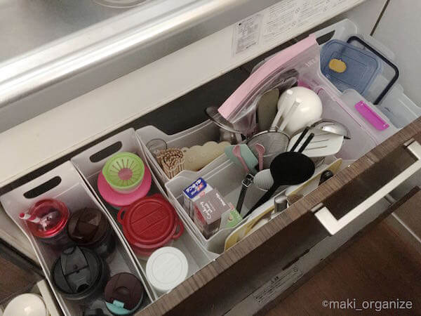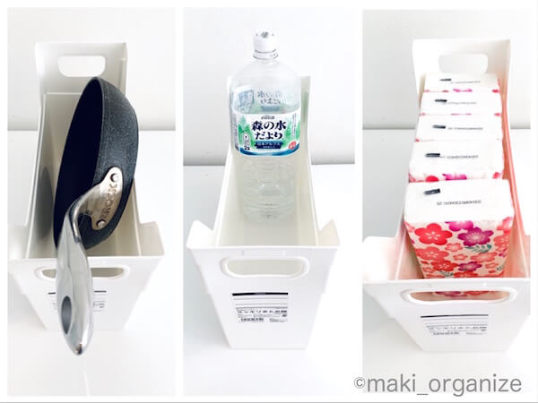 サイゾーウーマン暮らし住まい【キャンドゥ】110円「スッキリまとめ隊」、キッチン収納に最適! プロの使用実例 暮らし 【キャンドゥ】収納アイデア 【キャンドゥ】110円「スッキリまとめ隊」、キッチン収納に最適! プロの使用実例 2024/01/14 12:00 伊藤まき(収納ライター) 伊藤まきの「お片付けSOS」相談 百均のキャンドゥ(写真:サイゾーウーマン) 整理収納アドバイザー・伊藤まきさんがサイゾーウーマンで連載中の「『お片付けSOS』相談!」。今回はキャンドゥの「スッキリまとめ隊」を紹介します。 ※2020年6月公開の記事を再編集しています。 ※最新情報は公式サイトでご確認ください。 【キャンドゥ】110円 「スッキリまとめ隊」 シンプルなカタチなので、汚れにくい(C)maki_organize 最初に登場するのは、キャンドゥの「スッキリまとめ隊」です。片付けする家に訪問するときは、必ず持参する「ベストワン」のアイテム。100均のファイルボックスで一番の容量を誇ります。 良い点は、ポリプロピレン素材にありがちな、割れやすい&汚れやすい欠点が目立たないこと。ゴチャつく小物も、スッキリ清潔に保管できます。 【キャンドゥ】「スッキリまとめ隊」使用実例1:シンク下やキッチン収納に 深型の引き出しには、コレが一番!(C)maki_ organize キッチンの「上から見る収納」に最適です。コンロやシンク下の空間を、無駄なく使えます。調理道具、水筒、ザル、調味料、保存容器、食品ストックなどをグループ別に入れてください。その際、一目で手に取れるように「タテ」に入れると◎。 また、ワンボックスワングループ(1箱1種類)にすることで、定量も守れます。 【キャンドゥ】「スッキリまとめ隊」使用実例2:大きな道具やストック品の収納に 「快適な出し入れ」と「在庫管理」に最適解!(C)maki_ organize A4サイズの「スッキリまとめ隊」は、いろんな家具の奥行きにぴったり。キッチンはもちろん、下駄箱や洗面台の下にも使えます。 ただし、埋もれてしまうサイズの収納には不向き。どうしても収納したい場合は、透明の袋に入れて「モノの存在を忘れない」ようにします。コレで、家中の在庫管理と道具の出し入れが楽になります。 セリアとワッツで買える「A4ファイルボックス」でもOK! ほとんど同じサイズ。サイドの凹がポイント(C)maki_ organize 近所にキャンドゥがない方は、ワッツとセリアで販売している「A4ファイルボックス」もオススメ。「スッキリまとめ隊」に比べ、やや小さくて凹みがあります。同じ白を比較すると、「A4ファイルボックス」のほうが真っ白という感じです。使い方は同じですが、凹みを生かして配線コードの収納にも使えます。 ダイソー収納アイデア&アイテム人気記事10(※画像クリックで記事に飛びます) ダイソー「蓋付き収納 BOX」商品番号:4549131634921ダイソーの「蓋付き収納 BOX」。大型クローゼットや押入れがない家でも機能的に収納ができる、便利なアイテムです。ジッパー付きの軽量サイズ(182g/ライター調べ)だから、高い場所に置いても片手で降ろせます。価格は330円(税込)ですが、無印良品の「ポリエステル綿麻混・ソフトボックス」(1,490円/同)の5分の1。 ダイソー「強力吸盤フック」「ミニ突っ張り棒」ダイソーの「強力吸盤フック」耐荷5kg(2P)と耐荷2kg(4P)、そしてミニ突っ張り棒(2P)。この2グッズがあるだけで、家中の困ったコトにかなり役立ちます。この強力吸盤フックは、ツルツルした面(タイル、ガラス、琺瑯など)に適しているので、トイレに使うのも便利。生理用品を入れたポーチや、流せるトイレブラシを吊り下げます。ミニ突っ張り棒は、床下から20〜30cmの場所がベスト。 ダイソー「ホッピングバッグ」商品番号:4549131306484ダイソーの「ホッピングバッグ」なら、使わない時は畳めて「かさばらない」ので、狭い空間を奪いません。イレギュラーなモノが増えた時も、サッと広げるだけで便利な収納ボックスへと変わります。ブランケットや羽織の収納ボックスとして。 あちこちに脱ぎ散らかした衣類も、簡単に回収できます。キッチンペーパーやトイレットペーパーなど、収納棚に入りきれなかったストック品もまとまります。ペットシーツやおむつの在庫入れなど、紙モノに最適 ダイソー「超強力マグネット」商品番号:4549131230475マルチに使える、ダイソー「超強力マグネット」。一般的な磁石に比べて、一度貼り付くと剥がすのも困難な磁力を誇ります。ティッシュケースにマグネットをつけたり、リモコンにつけたりすれば、簡単に壁面収納がかないます。このマグネットを使って自作したティッシュケースは、山崎実業のマグネット付きティッシュケースにそっくりなのに、7分の1の価格(制作費400円)で済みました。その作り方や、100均マグネットを使った、さまざまな壁面収納術は記事をチェック! ダイソー「貼ってはがせるシートフック」