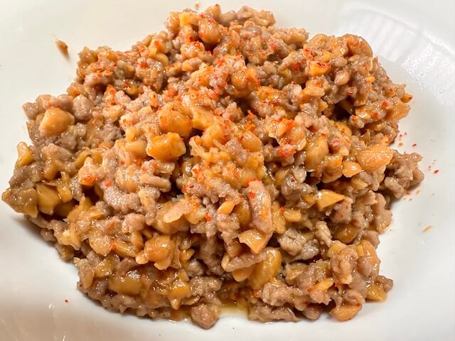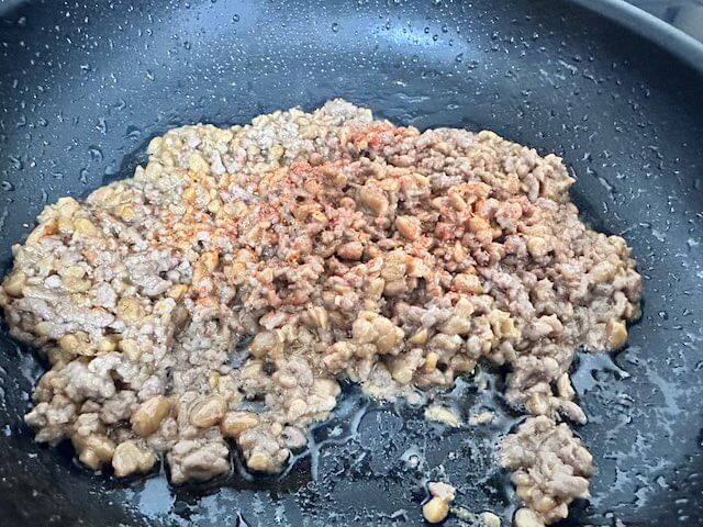 サイゾーウーマン暮らし食べ物【ひき肉&納豆炒め】『家事ヤロウ!!!』 暮らし 【あのツイッターレシピ、やってみました】 『家事ヤロウ!!!』【ひき肉&納豆炒め】作ったら、完全に酒のアテ! ピリ辛がおいしい一気に完食レシピ 2024/01/20 19:00 サイゾーウーマン編集部(@cyzowoman) ツイッターレシピ、やってみました 料理がまったくできない主婦の私。もう何年も夫が料理を担当していますが、子どもの成長とともに「いやでも作らなあかん時」に見舞われるように……。そこで「かんたん」「ラクチン」とTwitterで話題のレシピにチャレンジしていきます! 今日のレシピ:【ひき肉&納豆炒め】『家事ヤロウ!!!』 この投稿をInstagramで見る 家事ヤロウ!!!(テレビ朝日公式)(@kajiyarou)がシェアした投稿 『家事ヤロウ!!!』(テレビ朝日系)で放送されていた「ひき肉&納豆炒め」をリアルタイムで見ることができなかったので、後日、番組のインスタグラムで作り方を見たところ、何やらコメント欄が荒れている。どうやらテレビで放送されていた「作り方」と内容が違うようです。 筆者のように料理を「なんとなく雰囲気で作る」主婦なら細かいことは、気にならないのですが、コメント欄が荒れていたので、今回はひき肉の分量やニンニクチューブを入れるタイミングも併せてテレビ放送と同じい「Tver」を見て作ってみたいと思います! 材料を用意しました。ひき肉は「豚? 鶏?」というコメントがありましたが、豚で正解のようです。そういう筆者は、合い挽き肉を買ってしまった……。この時点で間違えているが気にしない。そして、インスタの作り方には載っていませんでしたがニンニクチューブも使うようです。 にんにく使用! ひき肉は豚が正解ですが今回は合い挽き(写真:サイゾーウーマン) (1)フライパンにサラダ油大さじ1を入れて、ひき肉(200g)を炒め、塩コショウ適量をふる (2)肉の色が変わったら、ひきわり納豆3パック分(今回は2パック使用)を入れてさらに炒め、途中で納豆のタレも入れ、ニンニクチューブも投入。さらに醤油を入れて炒め、最後に一味を入れて味を調える。 納豆は挽き割り使用と書かれているにもかかわらず、普通の納豆を買ってしまっていたので、包丁で挽き割り風に刻みました。これはこれで食感が残って良いのではないでしょうかと、言い聞かせながら、このまま進めます。 納豆とひき肉を炒める(写真:サイゾーウーマン) 完成しました。酒のアテを期待して「追い一味」をしてみる。 一味多め(写真:サイゾーウーマン) (3)好みの大きさに切った海苔の上にのせたら完成! 完成!(写真:サイゾーウーマン) 最初から挽き割り納豆にしていたら気にならなかったのかもしれませんが、粘り気が半端ない! 結構どっしりしています。 大きめの納豆がチラ見え(写真:サイゾーウーマン) 海苔に巻いて一気に口の中に入れると、油が絡みまくった納豆の粘りと食感がすごい。合い挽き肉でよかったのかわかりませんが香ばしくて、大豆独自の甘味が口の中に絡まりまくる! こんな納豆の食べ方があったのか〜! 普通に納豆を食べる3倍くらいの粘り気とピリ辛さがおいしく、これは完全に酒のアテだわ……と一気に完食してしまいました。 インスタのコメント欄には「丼にしてもおいしそう!」とあったので、次回は子どもたちに食べさせるために一味を抜いて丼にしてみたいと思います。 【総評】 もう一度作りたい度:★★★★★ ズボラ主婦でも再現可能度:★★★★☆ 子どもウケまたは夫ウケ:★★★★☆(納豆の甘さが引き立つので納豆好きの子どもなら丼でガッツリ食べてくれそう!) ギャル曽根、和田明日香ほか『家事ヤロウ!!!』レシピ作ってみた集 (※画像クリックで記事に飛びます) 山本ゆり【レンチン納豆チャーハン】 ギャル曽根【たぬきやっこ】 和田明日香【新玉ねぎと豆腐のサラダ】 『相葉マナブ』【枝豆そうめんチャンプルー】 バズレシピ・リュウジ【シンマカロニサラダ】