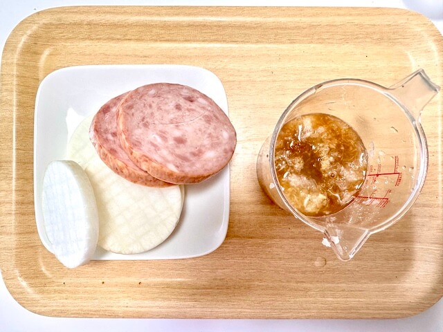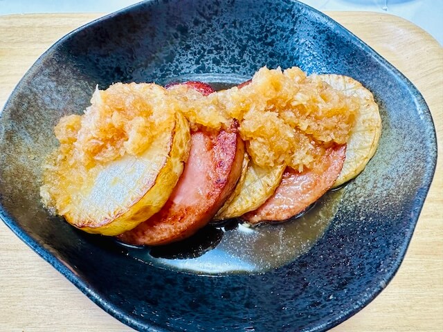 サイゾーウーマン暮らし食べ物和田明日香【ダブル大根ステーキ】レシピ 暮らし 【あのツイッターレシピ、やってみました】 和田明日香さん【ダブル大根ステーキ】、おろしニンニクのパンチがピリッ! ジュワッと旨みのレシピだ 2024/02/03 19:00 サイゾーウーマン編集部(@cyzowoman) ツイッターレシピ、やってみました和田明日香家事ヤロウ!!! 料理がまったくできない主婦の私。もう何年も夫が料理を担当していますが、子どもの成長とともに「いやでも作らなあかん時」に見舞われるように……。そこで「かんたん」「ラクチン」とTwitterで話題のレシピにチャレンジしていきます! 今日のレシピ:【ダブル大根ステーキ】和田明日香 この投稿をInstagramで見る 家事ヤロウ!!!(テレビ朝日公式)(@kajiyarou)がシェアした投稿 秋から冬にかけて旬を迎える大根。料理の苦手な筆者が大根を使うとなると、サラダや大根おろし、煮ものとして登場することが多いのですが、『家事ヤロウ!!!』(日本テレビ系)のインスタグラムで和田明日香さんが「ダブル大根ステーキ」を紹介しているのを見つけました。コスパもいいし簡単そうだ♪ さっそく作ってみよう。 材料 分量 大根の上の部分 3分の1 粗挽きソーセージ 適量 おろしニンニク 小さじ1/2 ポン酢 大さじ3 みりん 小さじ2〜3 (レシピは『家事ヤロウ!!』アカウントより) 実際に作っていきましょう! ※和風おろしソース フライパンに大根おろし(1/4カップ)おろしニンニク(小さじ1/2)、ポン酢(大さじ3)みりん(小さじ2〜3)を入れ、3〜4分煮立てて完成 (1)大根を皮ごと1cm幅にカットし格子状に切り込みを入れる 面倒くさがりの筆者は、さっそく大根に切り込みを入れる過程で、ちょっと挫折しそうになりました。先に、和風おろしソースも作って準備完了です。 材料(写真:サイゾーウーマン) (2)フライパンに油をひき、大根の表面に焼き色がつくまで焼いて、皿に取り出す 写真を撮って気がついたけど、油が多すぎたようだ。めっちゃ跳ねて「ヒィッ!」となる。油の量も書いておいてほしかった。 揚げ焼き状態に!(写真:サイゾーウーマン) (3)同じフライパンで粗挽きソーセージを焼く またしても油が跳ねて怖くなります。フライパンを見ればわかる油の飛び散り具合。改めて「料理苦手やな」と、ちょっとテンションが下がりました。 油の飛び跳ね注意(写真:サイゾーウーマン) (4)焼けたら大根に3を挟んでソースをかけたら完成 念の為、大根とソーセージは一度キッチンペーパーに乗せておきました。 完成!(写真:サイゾーウーマン) 大根おろしとおろしニンニクは生なので香りがキツめですが、食欲そそる香りで、ちょっとテンションが戻ったので気を取り直して、食べてみましょう! 【ダブル大根ステーキ】ニンニクのパンチがピリッ! ポン酢と相性よし(写真:サイゾーウーマン) あっさり目のソースにニンニクのパンチがピリッと効いていて、大根はサックリ。ソーセージから出るジュワッとした旨みが大根にも染み込んでいて、意外とイケる組み合わせです! ポン酢のサッパリとソーセージのジューシーな甘味がちょうどいい「旨み」へと変わっていてサクッと食べられおいしい。作ったことありそうでなかった、大根の新しい食べ方に脱帽です。 1cm幅の大根と7ミリ幅の大根と幅の違いはありましたが、薄めに切った大根のほうが味が染み込んでいてさらにおいしく食べられました。簡単に覚えられる&作れるレシピに決定です。いつもの大根レシピに飽きたら、ぜひ作ってみてください。 【総評】 もう一度作りたい度:★★★★★ ズボラ主婦でも再現可能度:★★★★☆ 子どもウケまたは夫ウケ:★★★★☆ ギャル曽根、和田明日香ほか『家事ヤロウ!!!』レシピ作ってみた集 (※画像クリックで記事に飛びます) 山本ゆり【レンチン納豆チャーハン】 ギャル曽根【たぬきやっこ】 和田明日香【新玉ねぎと豆腐のサラダ】 『相葉マナブ』【枝豆そうめんチャンプルー】 バズレシピ・リュウジ【シンマカロニサラダ】 和田明日香【オニオングラタントースト】 タサン志麻【カツオのたたきキウイソース】 和田明日香【春キャベツのお好み焼き風】 『家事ヤロウ!!!』【ブロッコリーとベーコンのパスタ】 和田明日香【豚肉と新じゃがの甘辛煮】 平野レミ【のりのりパスタ】 タサン志麻【タコライス】 タサン志麻【きのこのソテーのとろとろオムレツ】 タサン志麻【ナスと納豆の味噌炒め】 タサン志麻【ナスのラタトゥイユ】 タサン志麻【ミートソーストースト】 バズレシピ・リュウジ【至高の卵かけご飯(TKG)】 『家事ヤロウ!!!』【味噌ラーメンの麺なし】 和田明日香【ねぎとろむすめ風】 『家事ヤロウ!!!』【明太もちチーズトースト】 木村拓哉【焼豚とアボカドのピザトースト】 タサン志麻【さつまいものキャラメリゼ】 ギャル曽根【揚げない磯辺揚げ】 『家事ヤロウ!!!』【ケンタッキーフライドチキン炊き込みご飯】 平野レミ【明太バター餅】 『家事ヤロウ!!!』【メロンパントースト】 『家事ヤロウ!