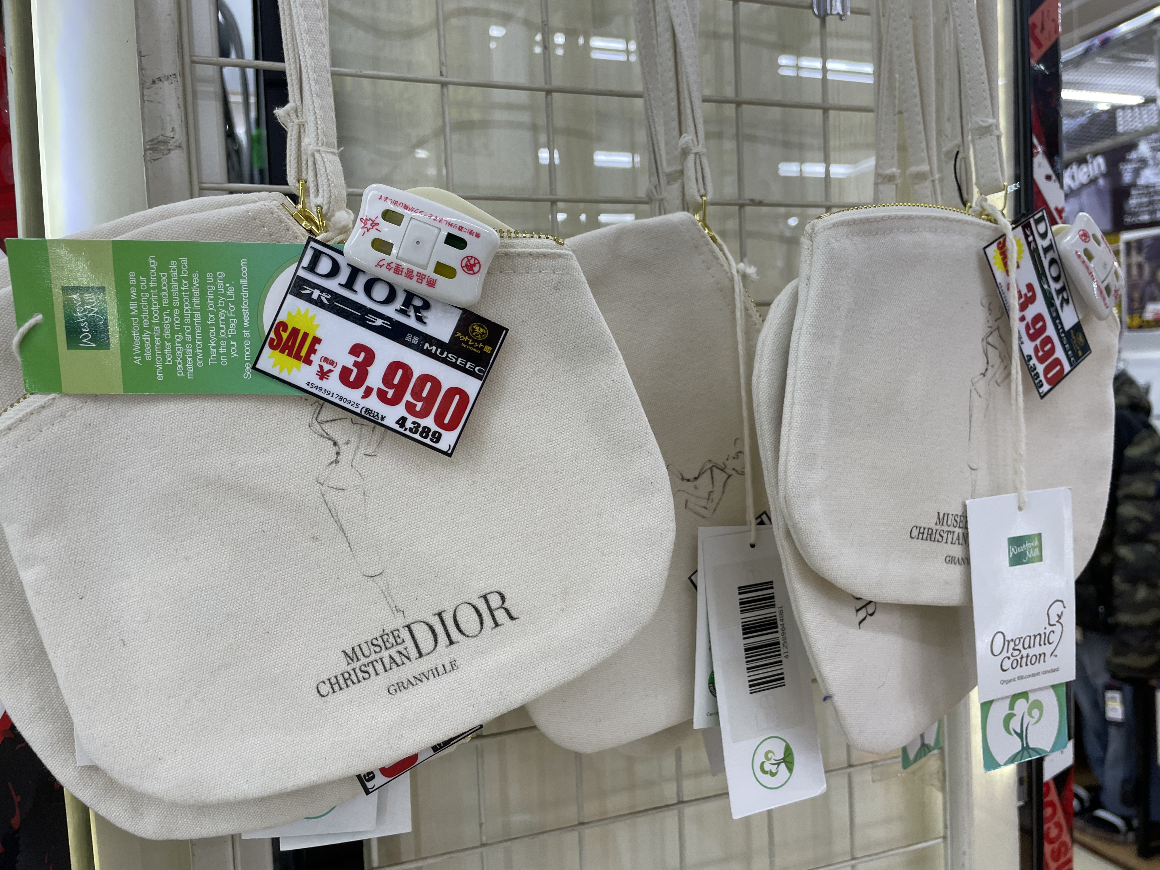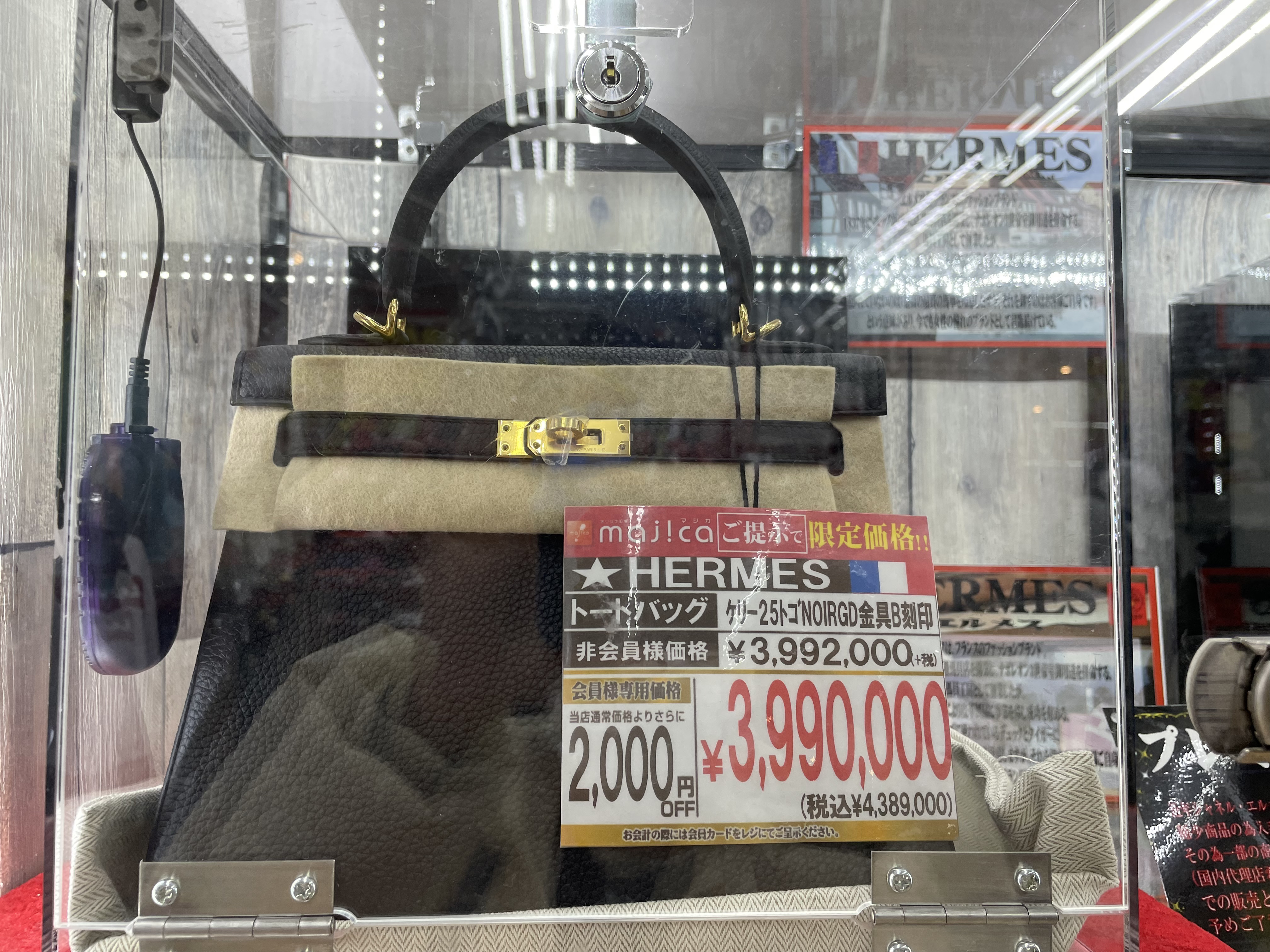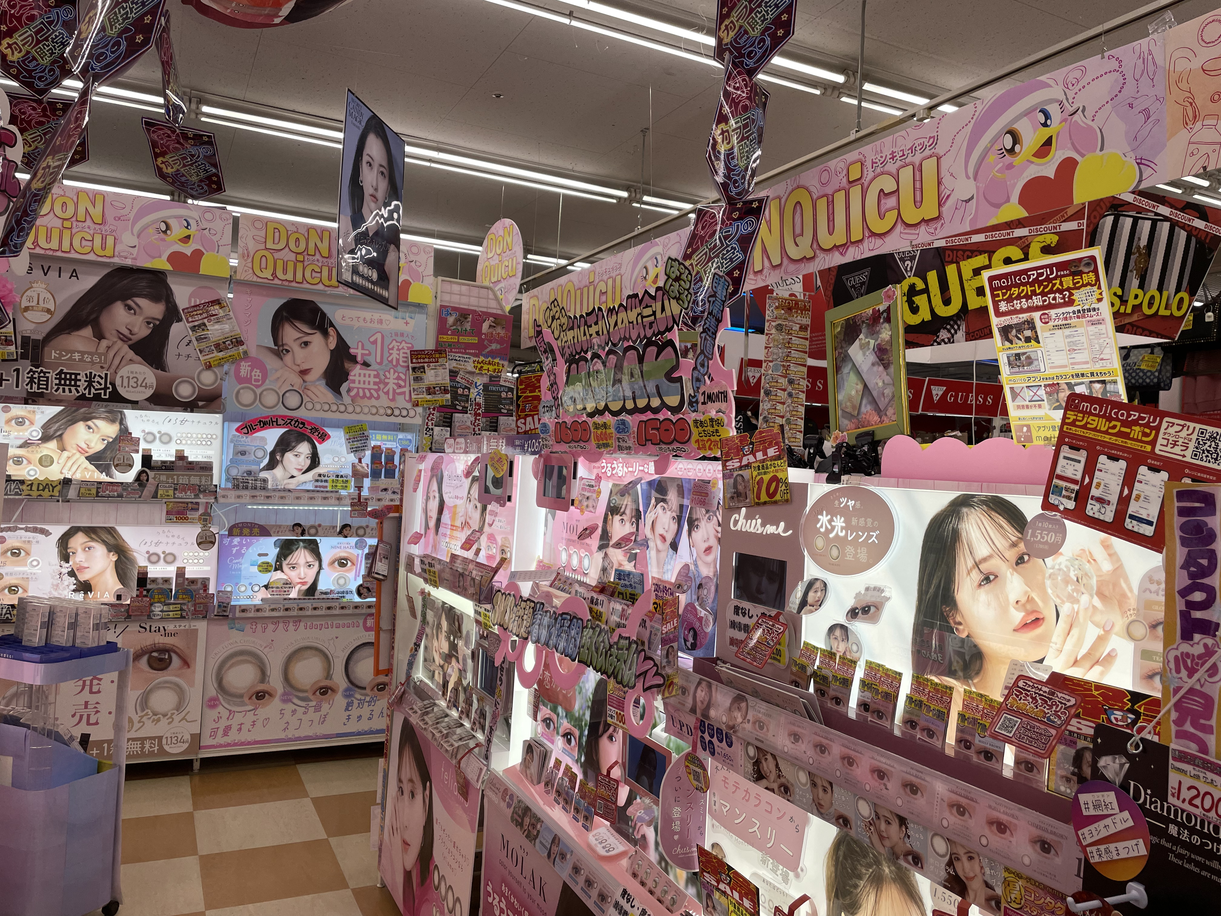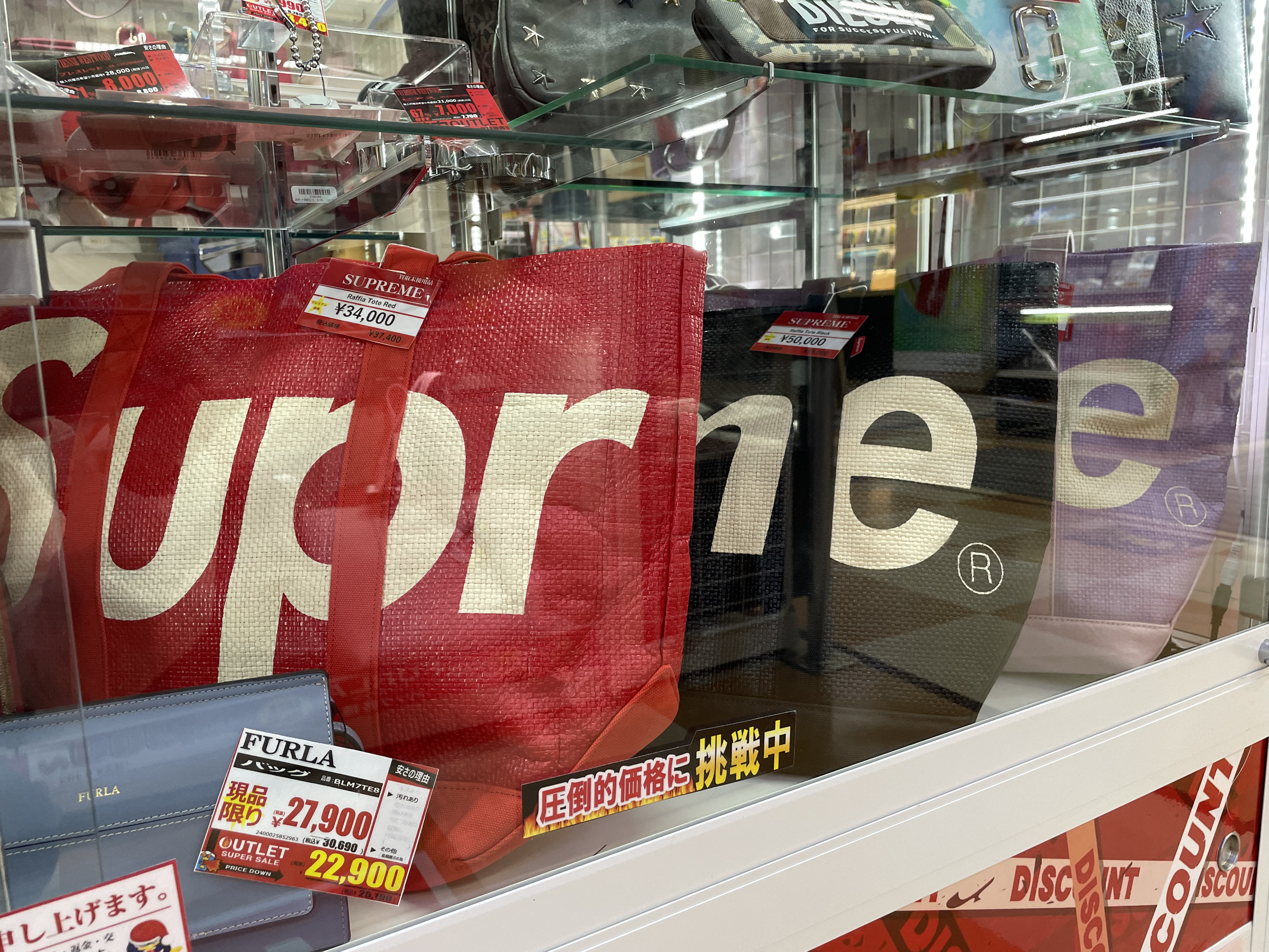 サイゾーウーマン暮らしトレンドドンキ【アウトレット館】カオスで最高 暮らし ドン・キホーテアウトレット館探訪 ドンキ初の【アウトレット館】に大興奮! エルメス「438万円ケリー」やドンペン氾濫のカオスだった【写真27点】 2024/02/21 18:00 サイゾーウーマン編集部 ドン・キホーテ ドンキホーテアウトレット館の外観(写真:サイゾーウーマン) 「驚安の殿堂」でおなじみ総合ディスカウントストアのドン・キホーテ。昨夏、渋谷・道玄坂に「ドミセ」をオープンしたのが話題になりましたよね。ドンキのPB「情熱価格」からよりすぐりの商品や、オリジナルブランドのアイテムを販売するショップで、一部にはまったく売れなかった「ドすべり商品」も激安で置いているとか。 一方で、ドン・キホーテのPBに限らず売れ残り品のみを扱う「アウトレット館」があるのはご存じでしょうか? 神奈川県厚木市にあるドンキ初の「アウトレット館」に行ったところ、想像を超えるドンキ濃度120%のカオス空間だったので写真たっぷりで紹介していきます! 目次 ・ドン・キホーテアウトレット館とは? ・GUCCIのTシャツ5,390円 ・ヴィトンもクロエもなんでもある ・顔とドンペンの氾濫! カラコンコーナーがカオス ・エルメスのケリーがまさかの399万円 ・韓国限定「THE NORTH FACE WHITE LABEL」が買える ドン・キホーテアウトレット館とは? ドンキ公式サイトでドン・キホーテのアウトレット館について調べてみましたが、なにを売っているのか、どんなコンセプトの店なのかといった情報は皆無。めぼしい情報はアクセス方法と営業時間(午前10時~午前3時)くらいです。 そこでネット上でリサーチしてみると、Googleのクチコミで以下の情報が見つかりました。 ・ブランド好きにはたまりません。現在ドンキ全般でブランドコーナー縮小・撤廃をしてるなかで、全国の品が此処に集まります ・メジャーブランドの商品で、数が少ないアウトレット品が並んでいます。 ・アウトレット価格で革靴も普段行ってる靴屋さんで買うよりも安く買える。 ・タバコのジャンルは多かった。種類自体は少ないものの通常の紙巻きタバコ、アイコス、手巻きタバコ、葉巻、パイプ等ありました。 ・品物が多くて安いです どうやら、全国のドンキからアウトレット品が集まっている場所で、ブランド品が格安で買えるのは間違いない様子。 ドン・キホーテアウトレット館なら、GUCCIのTシャツ5,390円 ドン・キホーテアウトレット館に到着。エントランスからかなりの歓迎ムード。 レインボーカラーのウェルカムと南国の花がアッパームード(写真:サイゾーウーマン) 店内フロアの入口前で販売されていたのは、10円のマフラー・ストール。ワゴン販売です。 見逃し厳禁!! と言われたら見るしかない(写真:サイゾーウーマン) 598円や398円のマフラーが10円になっているようです。 (写真:サイゾーウーマン) 店内に入ってすぐは、酒コーナー。人気のウイスキー「知多」がズラリと並んでいます。 価格は700ml、4,389円。350mlで2,189円。定価はそれぞれ4,400円、2,200円のためオトク感はないですが、知多は終売のうわさがあり、ネット上でも売り切れ続出の入手困難状態なので、購入できること自体がすごいかもしれません! 知多を探してる方は多そう(写真:サイゾーウーマン) 人気の響、山崎、白州も。「山崎25年 新」700mlは153万8900円! 軽自動車が新車で買える値段! 驚安商品を見に来たのに、全然安くないものばかりでテンションが上がりません。 高級酒コーナー(写真:サイゾーウーマン) と、思っていたら、唐突にGUCCIのTシャツ! 77%オフの5,500円からさらにプライスダウンで5,390円!? GUCCIのTシャツって定価2万2000円なんだな(写真:サイゾーウーマン) タグで衿口ビロビロ。GUCCIだろうが容赦ないところがドンキの長所! っていうか、GUCCIのTシャツって、ハンガーが透けて見えるほど生地が薄めなんですね。 GUCCIの洋服を気安く手に取れる(写真:サイゾーウーマン) ドンキのブランド品は本物か偽物か? なんて考えるのは実にナンセンス。「ドンキの価格は意味不明!」と興奮して楽しめばいいだと思います! 一応、公式サイトでは「取り扱っているブランド品に偽造品や不正商品は一切ございません」と断言してますよ。 >>>「ドンキのブランド品って大丈夫?」にお答えします。 「キュンプライス」(写真:サイゾーウーマン) ポール・スミスのマフラーやスカーフも「キュンプライス」の3,300円! ブランド品でも容赦なくプラスチックのハンガーで雑に並べるところがドンキっぽくていいですね! 「圧倒的価格」(写真:サイゾーウーマン) 大人気Supremeも3万7,400円。ラフィアトートバッグは、Supreme通販専門店では4万9,980円で販売されてました。「圧倒的価格に挑戦中」の言葉、間違いありません。 「ブランド品の最安値に挑戦!!」(写真:サイゾーウーマン) 店内は全体的に照明が暗めなんですが、ブランドコーナーだけやけに明るい蛍光灯で、そこにショーウインドウのネオン的な照明も加わり、値札を見てい