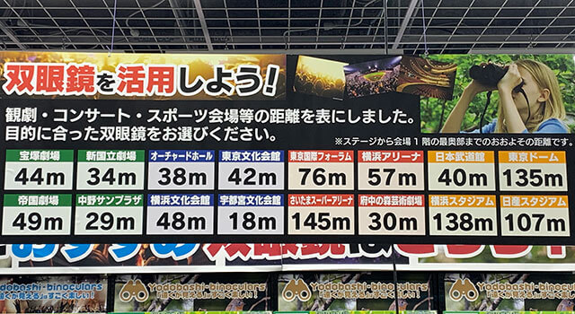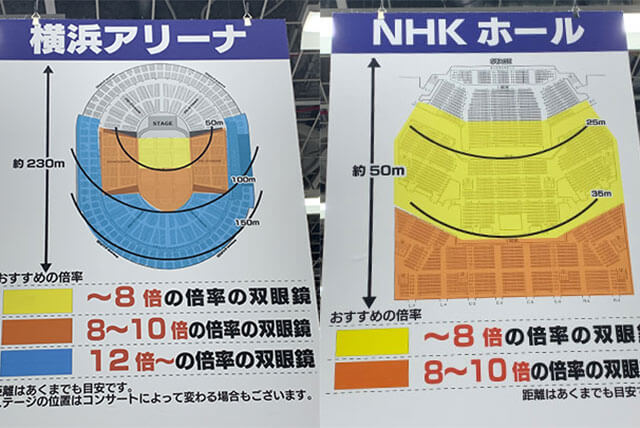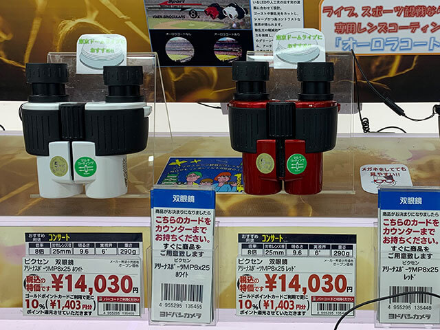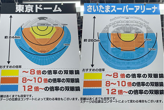 サイゾーウーマンインタビューキンプリファンがよく買った双眼鏡とは? 男性アイドル [インタビュー再掲(前編)] 【ヨドバシカメラ販売員が解説】キンプリファンがよく買った「安くて視界がクリア」な双眼鏡とは? 2024/03/14 19:30 川上朋孝(ヨドバシカメラ販売員) インタビュー 滝沢秀明氏率いる芸能事務所・TOBEの全所属アーティストが集結する初のコンサート『to HEROes ~TOBE 1st Super Live~』が、3月14~17日にかけて東京ドームで行われる。 4、5月には、STARTO ENTERTAINMENT(旧ジャニーズ事務所)も東京ドームと京セラドーム大阪にて『WE ARE! Let’s get the party STARTO!!』を開催。また、BE:FIRSTも5月に『BE:FIRST LIVE in DOME 2024 “Mainstream – Masterplan”』の大阪公演を控えており、ボーイズグループファンにとって大きなイベントが目白押しだ。 そこで準備しておきたいのが「双眼鏡」。会場が大きくなればなるほど、“推し”の姿をよく見るためには欠かせないアイテムだけに、購入やレンタルを検討している人も多いのでは? そこで、過去に双眼鏡のプロ、ヨドバシカメラ マルチメディアAkiba店カメラ専門チームマーケット・イノベーターの川上朋孝さんにインタビューした記事を再載。基本の選び方からメーカーごとの特徴などをおさえ、現場前の双眼鏡選びにぜひ役立ててもらいたい。 ※2022年4月29日初出の記事に編集を加えています。 ※商品の情報は2022年4月29日時点のものです。 ヨドバシカメラ マルチメディアAkiba店の双眼鏡売り場(C)サイゾーウーマン 目次 ・コンサートや舞台に最適な双眼鏡の倍率とは? ・主要メーカーごとの特徴をプロが解説! ・King&Princeのコンサートに向けてよく買われた双眼鏡 「ストレスなく推しを見たい」なら防振双眼鏡! コンサートや舞台に最適な倍率とは? ――双眼鏡には、大きく分けてノーマルな双眼鏡と防振双眼鏡の2種類があると思いますが、違いについて教えてください。 川上朋孝さん(以下、川上) 防振双眼鏡は、手ブレ補正機能がついているので、遠くの対象物をくっきり見ることができ、動きのあるものも目で追いやすいという特徴があります。高性能な分、双眼鏡よりボディが大きく重量があり、価格も高く設定されていますが、「よりストレスなく推しを見たい」という方であれば、防振タイプがおすすめですね。 ――双眼鏡を選ぶ際のポイントはありますか? 商品名にある2つの数字に注目!(C)サイゾーウーマン 川上 まずは、双眼鏡のスペックを見てください。商品名の後ろのほうに「●×●」と数字が2つ書いてあり、1つ目の数字が倍率、2つ目の数字が対物レンズの大きさを表します。対物レンズが大きいほど視界が広くなるため、その分光量も多くなり、目に負担をかけずに明るく、肉眼で見ているような感覚でステージを見ることができます。最近ですと、42mmのレンズの機種がジャニーズファンのみなさんに人気ですね。 また、使用する会場に合った倍率の機種を選ぶことも重要です。 ――店内に、主要会場ごとにステージまでの距離やおすすめの倍率が掲示されているので、とても参考になります。 ヨドバシカメラ マルチメディアAkiba店の店内掲示(C)サイゾーウーマン 東京ドームとさいたまスーパーアリーナのおすすめの倍率(C)サイゾーウーマン 横浜アリーナとNHKホールのおすすめの倍率(C)サイゾーウーマン 川上 東京ドームやさいたまスーパーアリーナで使用をおすすめしている12倍以上の双眼鏡は、そんなに種類が多くありません。倍率を上げると、その分視界が狭くなりますし、ピントを合わせるのも非常に難しくなるので、実はあまりおすすめしていないんです。12倍以上の双眼鏡は、船の上から遠くのものを見たり、海外旅行に行って、サバンナで野生の動物を見たりなど、自然観察に適しています。 ――コンサートや舞台で使用するには、8~10倍が最適ということですね。 川上 そうですね。例えば、Snow Manが『滝沢歌舞伎ZERO』シリーズを上演していた新橋演舞場は、そこまで大きい会場ではないため、10倍の双眼鏡だとアップになりすぎてしまいます。会場が大きくない舞台公演などは、8倍ないし、もう一つ下の6倍のものをお選びいただいたほうがいいでしょう。 逆に、東京ドームやさいたまスーパーアリーナなど、ドームやアリーナクラスで行われるコンサートであれば、ベースとして10倍のモデルを選んでいただき、「もう少し視界を広げたい」というお客様には、8倍の機種をご案内させていただいています。 なお、双眼鏡には1万円以下で買えるものから数万円するものまでさまざまありますが、例えば、同じ10倍の双眼鏡でも、ケンコーの「10×20MC HG」(3,310円、写真上)と、ビクセンの「アトレックII HR10×32WP」(2万6,400円、写真下)では、対物レンズに12mmの差があり、接眼レンズの大きさもこのように変わってきます。 写真上:ケンコー「10×20MC HG」(3,310円)、写真下:ビクセン「アトレックII HR10×32WP」(2万6,400円) (C)サイゾーウーマン 比べてみると、その差は歴然ですよね。接眼レン