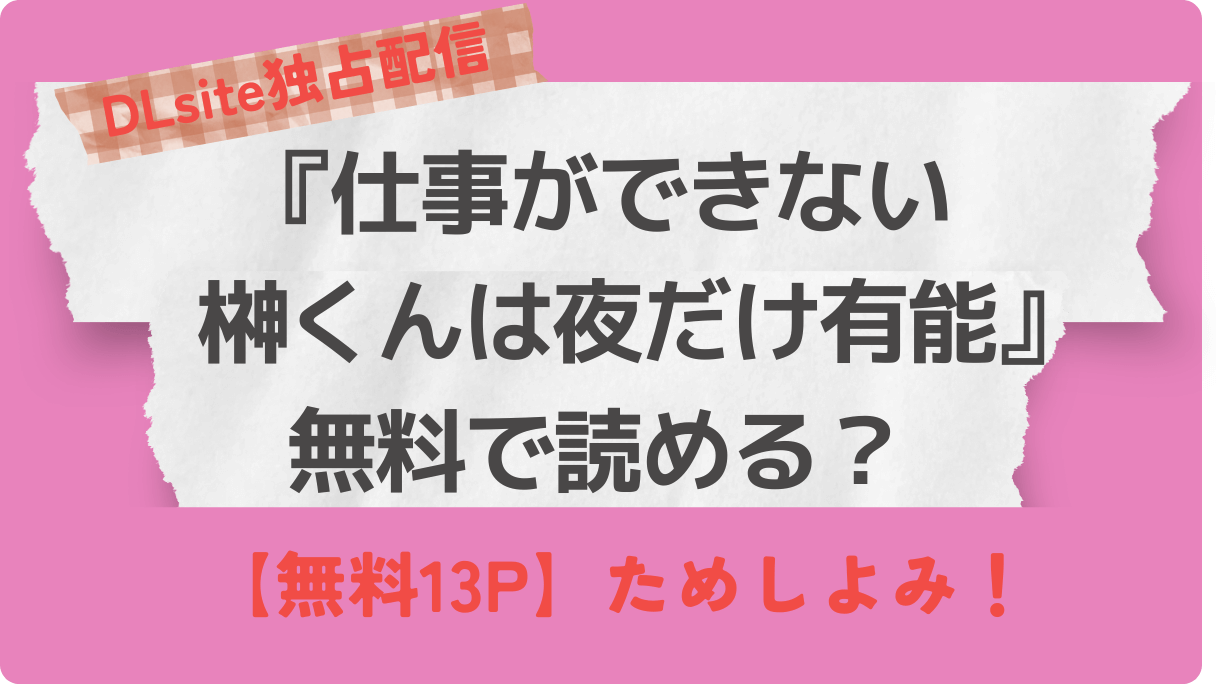 サイゾーウーマンカルチャーマンガ『仕事ができない榊くんは夜だけ有能』無料で読める? カルチャー 『仕事ができない榊くんは夜だけ有能』料金比較 まんが王国・シーモアで『仕事ができない榊くんは夜だけ有能』無料で読める? 2024/03/19 15:00 サイゾーウーマン編集部 (C)サイゾーウーマン DLsite独占配信の『仕事ができない榊くんは夜だけ有能』。TL漫画でトップクラスの人気作品について、無料で読めるサイトはあるのか? 無料レンタルの方法はあるのか? 無料ためしよみのサイト情報などをお伝えします。 目次 ・『仕事ができない榊くんは夜だけ有能』を無料で読む方法はある? ・『仕事ができない榊くんは夜だけ有能』の電子書籍を無料でレンタルする方法は? ・『仕事ができない榊くんは夜だけ有能』に紙コミックスはある? ・『仕事ができない榊くんは夜だけ有能』の基本情報 ・『仕事ができない榊くんは夜だけ有能』のあらすじ ・『仕事ができない榊くんは夜だけ有能』の口コミ ・『仕事ができない榊くんは夜だけ有能』TLマニアの評価 ☑とにかく! とにかくエッチなんです! ☑榊くんはテクも一物も言葉攻めも、全てがパーフェクト! ☑ギャップ萌え代表作は榊くん! ・【まとめ】『仕事ができない榊くんは夜だけ有能』はDLsite購入がベスト! ☑DLsiteは新規無料会員登録で300円オフクーポンがもらえる ☑実質360円で読める 『仕事ができない榊くんは夜だけ有能』を無料で読む方法はある? 写真AC 『仕事ができない榊くんは夜だけ有能』を電子書籍サイトで無料で読む方法はあるのか? まんが王国やコミックシーモアなど有名サイトを調べたところ、無料で読むことはできませんでした。しかし、DLsiteだけが【13P無料】としてお試しページを設けています。ほかサイトではためしよみページも存在しません。 『仕事ができない榊くんは夜だけ有能』はDLsiteの「専売作品」。無料有料を問わず、DLsite以外で読むことはできません。 『仕事ができない榊くんは夜だけ有能』の電子書籍を無料でレンタルする方法は? 『仕事ができない榊くんは夜だけ有能』は、まんが王国やコミックシーモア、DMMブックスなど大手電子書籍サイトで無料でレンタルすることはできません。DLsiteの専売作品のため、他大手サイトであってもレンタル不可能です。 『仕事ができない榊くんは夜だけ有能』を読む方法は、DLsiteで購入すること以外にありません。 『仕事ができない榊くんは夜だけ有能』は紙コミックスはある? 仕事ができない榊くんは夜だけ有能(viviON) 2023年8月に、『仕事ができない榊くんは夜だけ有能』が単行本化されました。24年3月現在、アマゾンでは800円で購入可能です。しかし、どんなストーリーかわからないのに800円も払うのは抵抗がありますよね。 そんな方には無料ためしよみがおすすめ。DLsiteなら無料で13ページも読めるので、絵柄や内容など確認してから購入できます。販売価格も660円と紙よりもグッとお手軽。 しかも、初回会員登録で300円オフクーポンがもらえるので、実質360円で読めちゃうんです。 『仕事ができない榊くんは夜だけ有能』の価格など基本情報 DLsiteより 『仕事ができない榊くんは夜だけ有能』の基本情報をまとめました。 【巻数】 1巻完結 【作者】 ぽつねんじん 【価格】 660円(DLsite)/800円(単行本) 【無料試し読み】 13ページ(DLsite限定) 【ランキング】 24時間ランキング1位、7日ランキング1位、30日間ランキング1位、2022年間ランキング1位、累計ランキング1位(DLsiteにおける2023年10月24日時点のランキング) 『仕事ができない榊くんは夜だけ有能』のあらすじ アパレルメーカーのライフスタイル雑貨部門・企画部で働く主人公(先輩)は、 部内の仕事ができない“陰キャ”榊くんのことを社内で唯一優しく面倒を見続けていた。 そんなある日、飲み会の帰りに家まで送ってくれた榊くんに、酔った勢いで抱かれてしまう。それからというもの、榊くんを思い出して体がキュンキュンしてしまう先輩。 一方、 別の後輩に腰を触られている先輩を見た榊くんは、 先輩の家で話をするはずが、嫉妬で先輩の両手を縛り上げ…… 。仕事のできる先輩が仕事のできない陰キャ後輩に抱き尽くされるエチラブストーリー。 『仕事ができない榊くんは夜だけ有能』の口コミ 写真AC DLsiteの『仕事ができない榊くんは夜だけ有能』に書き込まれているレビューをチェックしてみましょう(すべて原文ママ、※一部ネタバレを含みます)。 ■榊くんがとにかくキスもえっちも上手すぎる!!!!! あと巨根で筋肉ムキムキいい身体。 隠れイケメンというのもたまりません。 先輩が大好きで先輩しか見えてなくてワンコなところも最高です。 先輩は名前が「先輩」なのでみんな感情移入しても読めますね! ■こんなにタイプなキャラ初めて出会いました作者さんは神ですか?? 陰キャ童貞のヤンデレ後輩が好きなお姉様方には絶対にぶっ刺さります… しかもサイズが大きい…だと… こんな後輩が欲しい人生だった…!! おまけ漫画も最高で、特