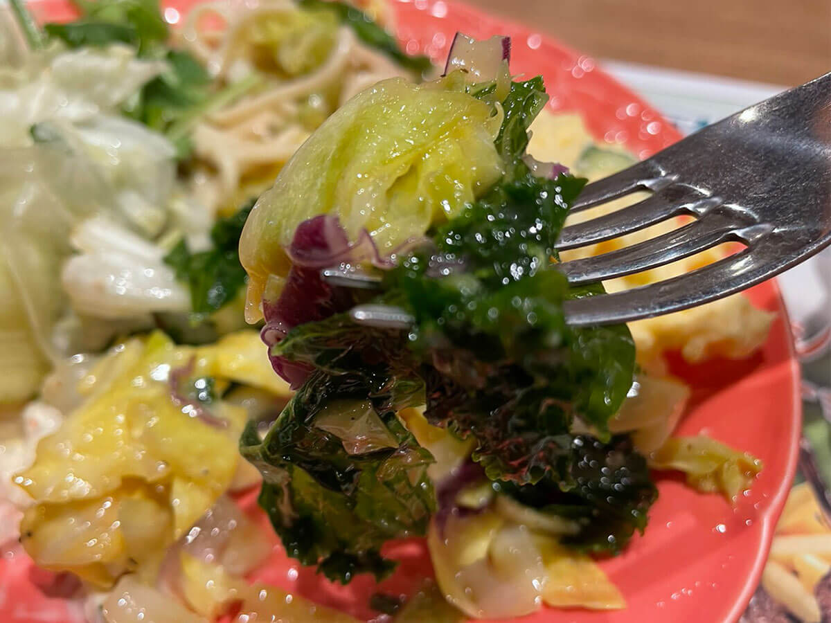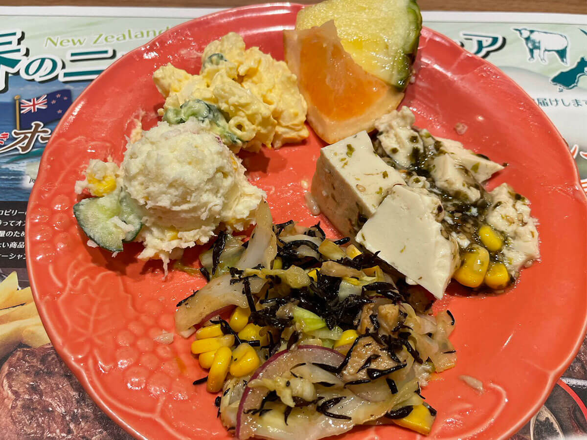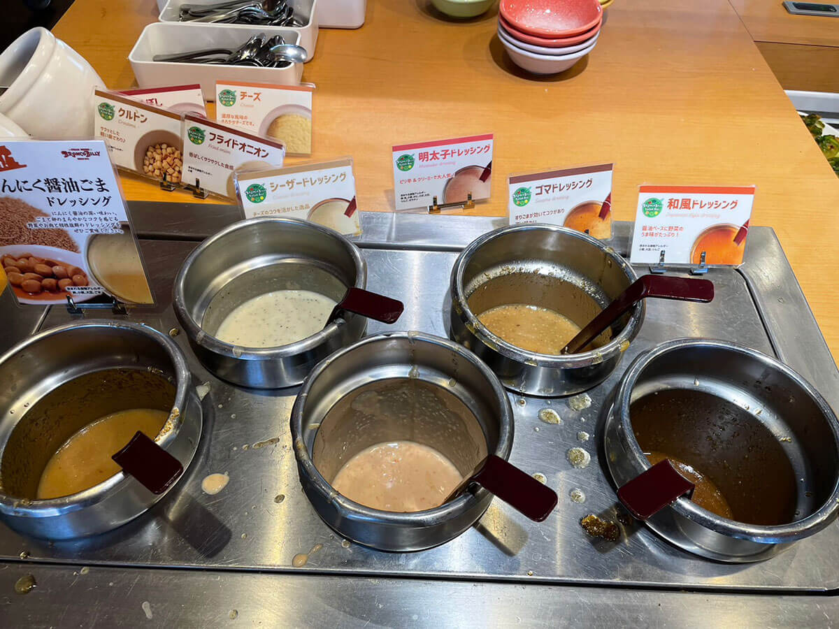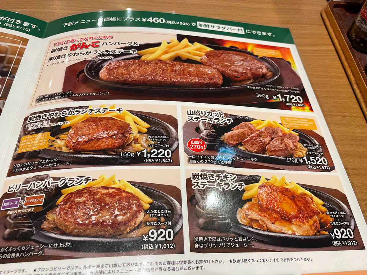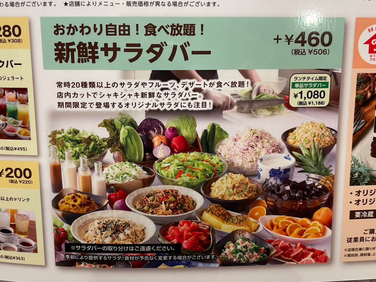 サイゾーウーマン暮らし食べ物ブロンコビリーのサラダバー実食 暮らし 人気チェーン店食べ比べレビュー びっくりドンキー猛追の【ブロンコビリー】、値上げにショック! でも食べ放題サラダバーは満足度◎ 2024/03/14 19:00 サイゾーウーマン編集部(@cyzowoman) 暮らしブロンコビリー アメリカンな内装のブロンコビリー(C)サイゾーウーマン 全国に直営店約140店舗を展開するレストラン・ブロンコビリー。創業45周年を迎えた昨年、過去最高の売上高を達成するなど、ハンバーグチェーン店舗数1位の“びっくりドンキー”を猛追中です。 看板メニューは、炭焼きで仕上げるステーキやハンバーグ。さらに、食べ放題の“新鮮サラダバー”も人気で、特にランチタイムにはサラダバーを単品で注文する客も見受けられます。 そのサラダバーは、年間6回のメニュー改訂が行われており、3月9日からは「春サラダバー」がスタート。今回は新作サラダバーを味わいつつ、ブロンコビリーが好調な理由を探ってきました。 ※価格はすべて税込。 ※価格や商品は2024年3月13日時点の情報です。 ※最新の情報は公式サイトや公式SNSをご確認ください。 ※店舗によって取り扱い商品が異なります。 目次 ・サラダバーは+506円 ・「春サラダバー」をチェック ・「春サラダバー」を実食 ・近年の値上げにショック! ブロンコビリーの「春サラダバー」は4月26日まで! 価格は単品だと1,188円 メニュー表のサラダバー(C)サイゾーウーマン ブロンコビリーのサラダバーは、常時20種類以上のサラダやフルーツ、デザートが食べ放題。単品だと1,188円ですが、メインの肉メニューを頼めば+506円とお得です。 今回、ハンバーグは我慢(C)サイゾーウーマン 例えば、ランチ最安1,012円の「ビリーハンバーグランチ」や「炭焼きチキンステーキランチ」にサラダバーを付けた場合、1,517円でハンバーグ、ごはん(またはパン)、たまごスープ、サラダバーを楽しめます。 ん? 過去に筆者が訪れた時、「ビリーハンバーグランチ」はサラダバー付きで1,000円切っていたような……。そこで気になって調べたところ、昨今の物価高騰の煽りを受けてか、近年、じわじわと値上げを繰り返していたようです。 なお、現在実施中の「春サラダバー」は4月26日まで実施。以降は「初夏サラダバー」に切り替わります。 ブロンコビリー「春サラダバー」をチェック! 大好きなパクチーサラダに悲劇 今回は「春サラダバー」を全力で楽しむため、サラダバーを単品で注文。早速、ラインナップを見ていきましょう。 中央は期間限定の「春キャベツのウスターソースがらめ」(C)サイゾーウーマン 中央は期間限定の「あおさと春野菜のボンゴレパスタ」(C)サイゾーウーマン 定番の「ブロッコリーとかにかまのサラダ」など(C)サイゾーウーマン ロメインレタスや「みんな大好き!たまごマカロニサラダ」(C)サイゾーウーマン 砕いてサラダの付け合せにもできる「できたてえびせん」(C)サイゾーウーマン ドレッシングは常時5種類(C)サイゾーウーマン この中では異色な「うめぼし」(左)(C)サイゾーウーマン デザートのフルーツや季節のゼリー(C)サイゾーウーマン ざっとこんな感じでした。ボンゴレパスタのほか、鶏肉やあさりが入ったオリジナルサラダもあるので、サラダバーだけでも十分食べ応えがありそう! 「パクチーサラダ」のチキンはどこ?(C)サイゾーウーマン しかし、1つ悲しい出来事が……。「パクチーサラダ」を取ろうとしたところ、入っているはずのチキンが1切れも見当たらないんです。 チキン好きなほかのお客さんに取ってしまったのでしょうか……。まあ、サラダバーという性質上、こういうことは起こりうるので、「退店時までにチキンが追加されていますように」と祈りつつ席に戻ります。 ブロンコビリー「春サラダバー」を実食! 春キャベツやあさりが入ったサラダが食べ放題 一度で多くの種類は盛りきれないため、今回は3往復しました(C)サイゾーウーマン ブロンコビリーは注文後にサラダバー専用のお皿が1枚もらえるシステム。今回はサラダバーを3往復し、オリジナルの創作サラダやデザートを中心に取ってみました。 同じお皿を使い続けることになるので、お皿の汚れが気になる方は、2往復目以降はペーナフキンやおしぼりで軽く拭いたほうがいいかも(店員さんに言えば新しいお皿と交換してもらえるかもしれませんが……)。 期間限定メニューを実食 ひじき入りの「春キャベツのウスターソースがらめ」(C)サイゾーウーマン 「春キャベツのウスターソースがらめ」は、「やわらかくて甘みのある春キャベツや色とりどりの食材に、フルーティーでスパイスが効いたウスターソースを絡めた一品」「ビタミンB群を含む食材がたっぷり摂れる」とのこと。上にはかわいらしい“ぶぶあられ”がかかっていました。 口に入れると、シャキシャキとした春キャベツが甘くておいしい! これに限らず、ブロンコビリーの創作サラダは全体的に野菜の歯ごたえが残っていて、素材