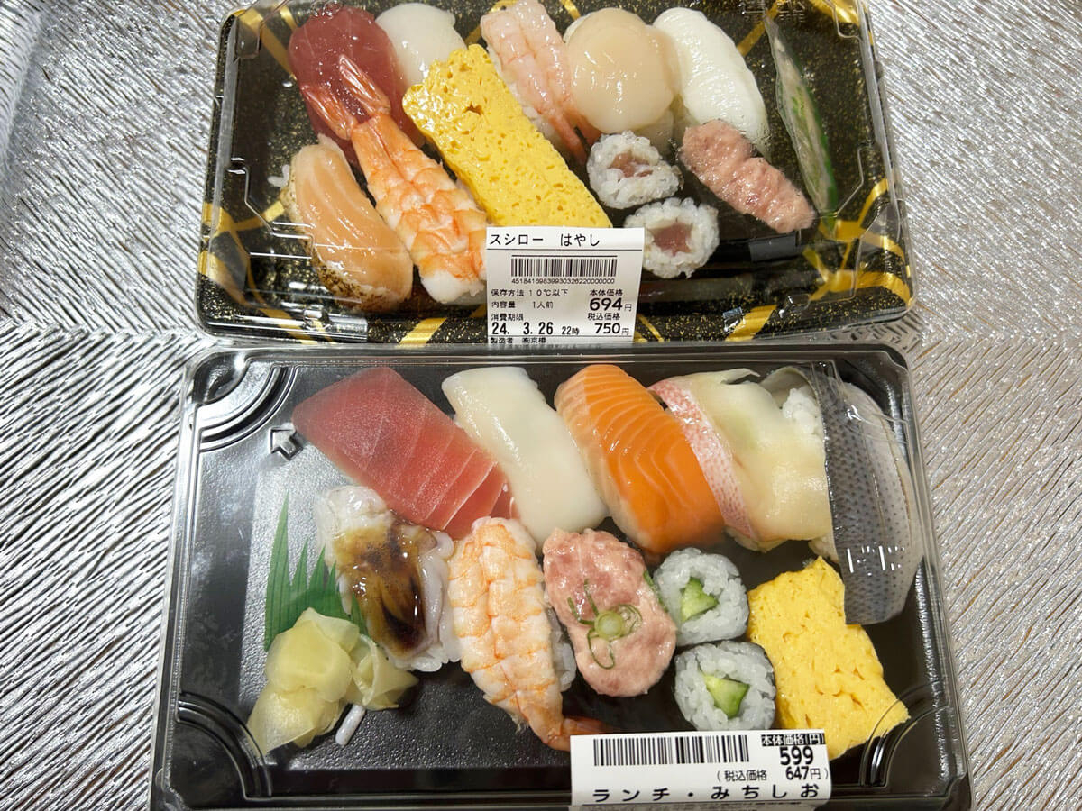サイゾーウーマン暮らし食べ物【ちよだ鮨】647円寿司が高クオリティ 暮らし 寿司の食べ比べレビュー 【スシロー・京樽】に勝利! 【ちよだ鮨】647円パック寿司が驚きの高クオリティだった 2024/03/27 10:00 satomi(ライター) スシロー 「京樽・スシロー」と「ちよだ鮨」の看板(C)サイゾーウーマン 回転寿司チェーン店がしのぎを削っている中、百貨店やスーパー、商店街にたたずむ持ち帰り寿司店。年々その存在感が薄まっているようにも思えますが、果たして、そのお味はどれほどのものなのか――。持ち帰り寿司でおなじみの「京樽」と「ちよだ鮨」のお寿司を食べ比べ、5段階で評価してみました。持ち帰り寿司対決を制したのは果たして? ※価格は全て税込。 ※価格や内容は2024年3月26日時点の情報です (店舗によって異なる場合があります) ※一部店舗では取り扱いのない場合があります ※最新情報は公式サイトをご確認ください 目次 ・「京樽・スシロー」21店舗、「ちよだ鮨」180店舗以上 ・「京樽・スシロー」「ちよだ鮨」同価格帯のパック寿司は? ・「京樽・スシロー」750円VS「ちよだ鮨」647円 6ネタを食べ比べ! ・「ちよだ鮨」コスパ良し&高クオリティ! 「京樽・スシロー」21店舗、「ちよだ鮨」180店舗以上 スシローとのダブルブランド店舗(C)サイゾーウーマン 吉野家ホールディングスの子会社だった「京樽」は、2021年4月に回転ずし大手のスシローグローバルホールディングス(現・FOOD & LIFE COMPANIES)に買収され、完全子会社化。 以降、京樽とスシローのダブルブランド店舗「京樽・スシロー」を出店し、24年3月現在は埼玉・千葉・東京の1都2県で21店を展開。なお、既存の「京樽」も宮城から岡山までのエリアで105店舗あります。 イートインスペースを併設しているちよだ鮨(C)サイゾーウーマン 一方、首都圏を中心に180店舗以上のすし店を展開している「ちよだ鮨」は、スーパー、百貨店、商店街などで持ち帰り寿司を販売し、中にはイートインスペースを併設した店舗を持つほか、回転寿司、立ち食い寿司を提供するブランドも抱えるなど、幅広い事業を展開。手軽に手軽に高品質な寿司を味わえるとして人気を集めているようです。 「京樽・スシロー」「ちよだ鮨」同価格帯のパック寿司は? 今回は、そんな2店舗が販売しているパック寿司を購入して実食レビュー! 比較するのは、「お寿司の数」や「ネタの内容」「価格帯」が近いこちらの商品。 持ち運びの途中でお寿司が右側に偏ってしまったのはご了承ください(C)サイゾーウーマン 上が京樽・スシローで購入した「はやし」750円(税込、以下同)、下がちよだ鮨の「みちしお」647円です。ちよだ鮨のほうは、ランチ時間のみの販売です。どちらも購入したのは、午前11時30分~正午にかけての時間でしたが、写真を見てもわかるよう、ネタが乾いている様子はありません。 京樽・スシローで購入した「はやし」750円(C)サイゾーウーマン ちよだ鮨の「みちしお」647円(C)サイゾーウーマン 今回は、それぞれ共通して入っていた「まぐろ」「ねぎとろ軍艦」「えび」「イカ」「サーモン」「玉子」の6ネタを比較していきたいと思います! 「京樽・スシロー」750円VS「ちよだ鮨」647円 6ネタを食べ比べ! まぐろ 左:京樽・スシローのまぐろ、右:ちよだ鮨のまぐろ(C)サイゾーウーマン まずは、まぐろから実食! 写真を見ての通り、ちよだ鮨のほうは、身に筋が入っています。 実際に口にしたところ、京樽・スシローのまぐろは、身がねっとりとしていて柔らかく、赤身の濃厚な旨みを感じました。一方、ちよだ鮨のまぐろは、さっぱりとしていて、スッと歯が入る感じ。味は京樽・スシローと比べると、やや薄い印象でした。 ねぎとろ軍艦 左:京樽・スシローのねぎとろ軍艦、右:ちよだ鮨のねぎとろ軍艦(C)サイゾーウーマン ねぎとろ軍艦は、京樽・スシローに比べると、ちよだ鮨は一回り小さいものの、ねぎとろの量が多く、最後までねぎとろが口の中に残る感じがありました。また、ねぎも乗っているのでさっぱり食べられます。ねぎがいるだけでこんなに風味が変わるのかと驚いた次第です。 えび 左:京樽・スシローのえび、右:ちよだ鮨のえび(C)サイゾーウーマン 続いて、えびを実食! 見た目の違いは、京樽・スシローのほうが色が濃いことですが、食べ比べてみると、その差は歴然でした。ちよだ鮨のえびのほうが身が厚くプリっとしていて、味も濃いんです! イカ 左:京樽・スシローのイカ、右:ちよだ鮨のイカ(C)サイゾーウーマン 次に食べたイカは、隣り合っていたネタの色がうつってしまっていますが、若干、ちよだ鮨のほうが身に透明感があり、食感もサクサクしていた印象。味にそこまで大きな違いはありませんでしたが、京樽・スシローのイカは少しねちょっとしていたので、ちよだ鮨のほうがネタが新鮮だったように思います。 サーモン 左:京樽・スシローの炙りとろサーモン、右:ちよだ鮨のサーモン(C)サイゾーウーマン サーモンは、京樽・スシローは炙った状態のと