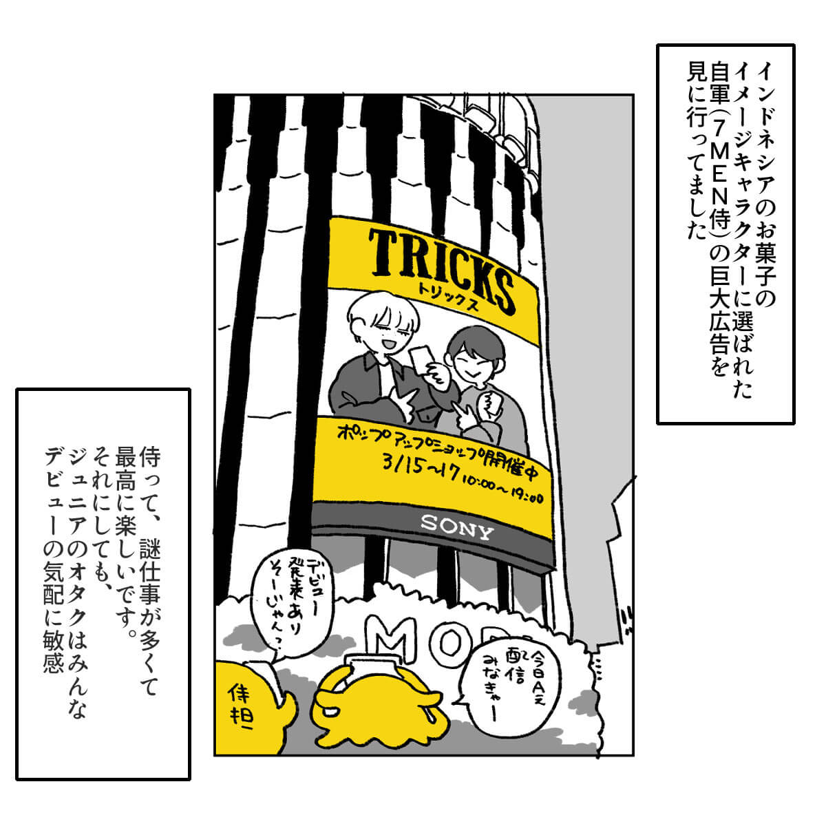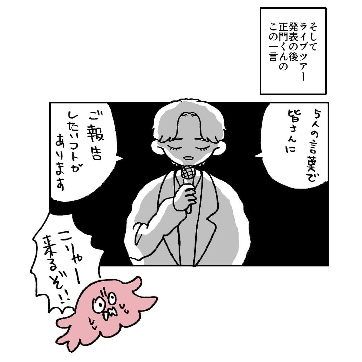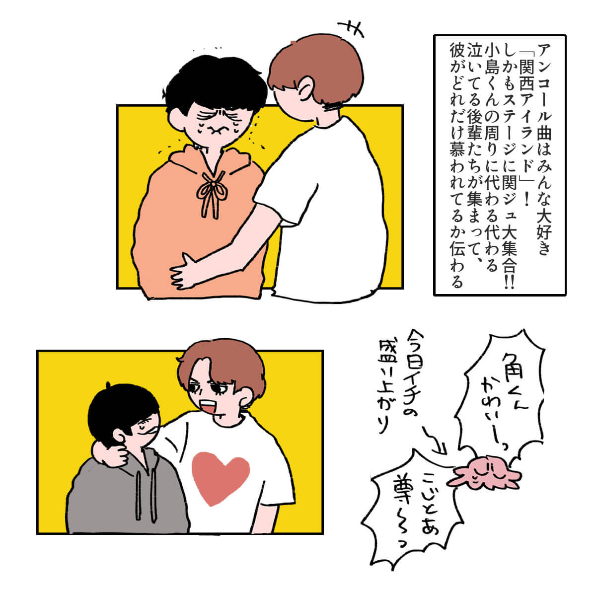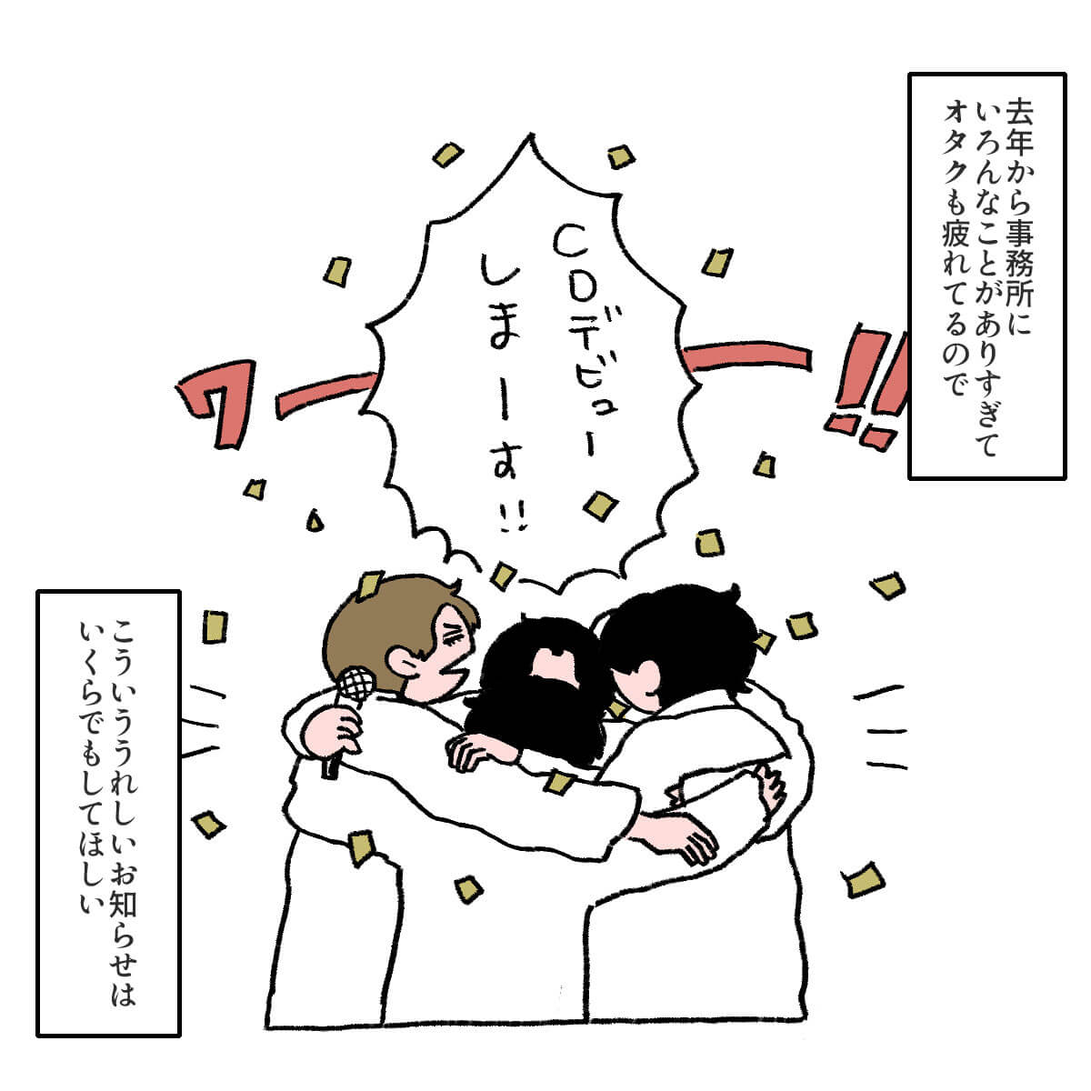 サイゾーウーマン男性アイドルSTARTO(旧ジャニーズ)Aぇ! groupAぇファンミのイラストレポ 男性アイドル [ドルオタ漫画家・竜田トキヒロの“推し事”見聞録]vol.49 Aぇ! group『Aッ倒的ファン大感謝祭』イラストレポ、関西ジュニアはまるで“大家族”! 2024/03/27 21:00 竜田トキヒロ(マンガ家) Aぇ! group竜田トキヒロの“推し事”見聞録ジュニア ――Twitterで日々、STARTO ENTERTAINMENT(旧ジャニーズ事務所)のタレントをはじめとしたイラストを投稿中のドルオタ漫画家・竜田トキヒロが、現場レポートからドラマや映画、番組レビューまで、“推し事”の様子をお届け! 今回は、3月16、17日に京セラドーム大阪で開催され、16日には「FAMILY CLUB online」で生配信も実施された、関西ジュニア・Aぇ! groupの単独イベント『Aぇ! group Aッ倒的ファン大感謝祭 in 京セラドーム大阪』に注目! デビュー前のジュニアが単独でドームイベントや公演を行うのは、2006年にCDデビュー前のアーティストとして史上初の東京ドーム公演を開催したKAT-TUN以来ということで、何らかの発表があるのではないかと、開催前からファンが期待を寄せていたこのイベント。 その思いに応えるかのごとく、16日の公演中、メンバーの口から5月15日に「《A》BEGINNING」という楽曲で、ユニバーサルミュージックからCDデビューすることが明かされました。 この記事では、そんなメモリアルな公演の様子を、イラストで振り返ります! 目次 ・Aぇ! group、ライブの雰囲気がデビュー組みたい!? ・デビューのお祝い動画で感じた関西の絆 ・“大家族”関西ジュニアの距離の近さ Aぇ! group、ファンミーティングのライブの雰囲気がデビュー組みたい!? なにわ男子にWEST.、SUPER EIGHTも……Aぇ! groupへのデビューのお祝い動画で感じた関西の絆 Aぇ! groupのファンミーティングに見た、“大家族”関西ジュニアの距離の近さ ★これまでの連載記事はこちらから 【ジャニオタマンガ】Aぇ! groupは「高スキル集団」! キャラの濃い6人の個性とは?――Twitterで日々、ジャニーズタレントにまつわるイラストを投稿中のジャニオタ漫画家・竜田トキヒロが、現場レポートからドラマや映画、番組レビューまで、“推し事”の様子を...サイゾーウーマン2023.07.05 竜田トキヒロ(マンガ家) 漫画家、イラストレーター。育休中に執筆したエッセイ漫画でKADOKAWAコミックエッセイ大賞受賞。Ameba、ライブドア公式ブロガーを経たのち現在はインフルエンサーとしてエンタメ、オタクに特化した漫画やイラストや体験ルポ等幅広く執筆。著書『コミュ障母さんとごきげん娘』(KADOKAWA) X:@musumenuma 最終更新:2024/03/27 21:00 関連記事 【ジャニオタマンガ】Aぇ! groupは「高スキル集団」! キャラの濃い6人の個性とは?Aぇ! group『Aッ倒的ファン大感謝祭』レポ――オタクの涙腺が壊れた瞬間とは?ジュニア公式TikTok「いいね」数ランキング、11~20位! Aぇ! groupが伯井太陽を上回る【2024年3月最新】Aぇ! group、福本大晴と“決別”? 配信舞台でのエールに賛否両論西川貴教、Aぇ! group・福本大晴の脱退に言及? ラジオで「全力で応援する」とエール 次の記事 『大奥』が描かない、倫子の幸福だった史実 >