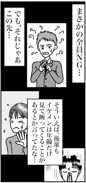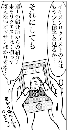 サイゾーウーマンカルチャーマンガアラフォー婚活、40代限定婚活パーティの男たち カルチャー まんが『オバサンと言われても結婚したい!』まとめ読み 【アラフォー婚活ルポ】「お金では苦労させません!」40代限定の婚活パーティの男たち 2024/04/03 13:30 白戸ミフル(マンガ家) オバサンと言われても結婚したい! ――合コン歴20年以上、累計回数2,500回以上、30代なかばに乳がんで闘病するも、現在は絶賛婚活中のライター・漫画家の白戸ミフルが「アラフォー婚活」の実体験をお届けします! 連載は一旦おやすみのため、今回はバックナンバーから「40代限定婚活パーティとハイスペ限定パーティ」をまとめてお送りします。 40代限定婚活パーティ、ハイスペ限定パーティの男たち 次のページ 40代限定婚活パーティ 123次のページ 関連記事 【アラフォー婚活ルポ】ガーン……交際希望、お断りされた!!!【アラフォー婚活ルポ】お見合い中に何度も聞かれた、この質問【アラフォー婚活ルポ】えぇ~オジサンたちのところに戻りたくない【アラフォー婚活ルポ】キョロキョロ……独身男子とも話したいけど【アラフォー婚活ルポ】イヤな予感……そういやバツイチだっけ その他の作品を読む