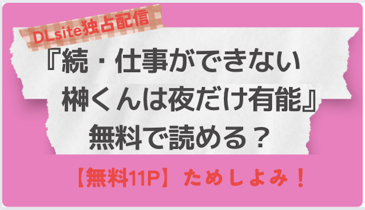 サイゾーウーマンカルチャーマンガ『仕事ができない榊くんは夜だけ有能』無料で読める? カルチャー 『仕事ができない榊くんは夜だけ有能』料金比較 【50%オフ:140円で読める!】『続・仕事ができない榊くんは夜だけ有能』、まんが王国・シーモア無料で読める? 2024/04/10 14:00 サイゾーウーマン編集部 DLsite独占配信の『続・仕事ができない榊くんは夜だけ有能』。TL漫画でトップクラスの人気作品について、無料で読めるサイトはあるのか? 無料レンタルの方法はあるのか? 無料ためしよみのサイト情報などをお伝えします。 目次 ・『続・仕事ができない榊くんは夜だけ有能』を無料で読む方法はある? ・『続・仕事ができない榊くんは夜だけ有能』の電子書籍を無料でレンタルする方法は? ・『続・仕事ができない榊くんは夜だけ有能』に紙コミックスはある? ・『続・仕事ができない榊くんは夜だけ有能』はDLsite購入がベスト! ☑DLsiteは新規無料会員登録で300円オフクーポンがもらえる ☑実質140円で読める ・『続・仕事ができない榊くんは夜だけ有能』の基本情報 ・『続・仕事ができない榊くんは夜だけ有能』のあらすじ ・『続・仕事ができない榊くんは夜だけ有能』の口コミ ・『続・仕事ができない榊くんは夜だけ有能』TLマニアの評価 ☑見どころは「嫉妬えっち」 ☑THE陰キャの榊くん、夜は言葉攻めしちゃうくせに!! ☑先輩の元カレ、完璧な登場と退散 ・【まとめ】『続・仕事ができない榊くんは夜だけ有能』はDLsite購入がベスト! ☑DLsiteは新規無料会員登録で300円オフクーポンがもらえる ☑実質140円で読める 『続・仕事ができない榊くんは夜だけ有能』を無料で読む方法はある? 写真AC 『続・仕事ができない榊くんは夜だけ有能』を電子書籍サイトで無料で読む方法はあるのか? まんが王国やコミックシーモアなど有名サイトを調べたところ、無料で読むことはできませんでした。しかし、DLsiteだけが【11P無料】としてお試しページを設けています。ほかサイトではためしよみページも存在しません。 『続・仕事ができない榊くんは夜だけ有能』はDLsiteの「専売作品」。無料有料を問わず、DLsite以外で読むことはできません。 『続・仕事ができない榊くんは夜だけ有能』の電子書籍を無料でレンタルする方法は? 『続・仕事ができない榊くんは夜だけ有能』は、まんが王国やコミックシーモア、DMMブックスなど大手電子書籍サイトで無料でレンタルすることはできません。DLsiteの専売作品のため、他大手サイトであってもレンタル不可能です。 『続・仕事ができない榊くんは夜だけ有能』を読む方法は、DLsiteで購入すること以外にありません。 『続・仕事ができない榊くんは夜だけ有能』は紙コミックスはある? 仕事ができない榊くんは夜だけ有能(viviON) 『続・仕事ができない榊くんは夜だけ有能』は単行本化されていません。2023年8月に、前作『仕事ができない榊くんは夜だけ有能』は単行本化され、24年3月現在、アマゾンでは800円で購入可能です。しかし、前作のため『続・仕事ができない榊くんは夜だけ有能』の内容は含まれません。 内容を確認したい方は、無料ためしよみがおすすめ。DLsiteなら無料で11ページも読めるので、絵柄や内容など確認してから購入できます。 しかも、4月14日まで50%オフの440円! さらに初回会員登録で300円オフクーポンがもらえるので、実質140円で読めちゃうんです。 『続・仕事ができない榊くんは夜だけ有能』はDLsite購入がベスト! 購入者からの満足度が群を抜いて高い『続・仕事ができない榊くんは夜だけ有能』。DLsite独占配信作品のため、無料で読めるサイトをどれだけ探しても皆無でした。 しかし、DLsiteなら無料で11ページもためしよみできるうえ、実質140円で購入可能(初回会員登録限定、4月14日までの50%オフキャンペーン期間中)。今すぐスマホやPCで読めるのがうれしいですね。 会員登録は無料なので、今のうちに新規登録を済ませておきましょう。 『続・仕事ができない榊くんは夜だけ有能』の価格など基本情報 『続・仕事ができない榊くんは夜だけ有能』の基本情報をまとめました。 【巻数】 1巻完結 【作者】 ぽつねんじん 【価格】 880円(DLsite) →2024年4月14日まで440円 【無料試し読み】 11ページ(DLsite限定) 【ランキング】 24時間ランキング1位、7日ランキング1位、30日間ランキング1位、累計ランキング3位(DLsiteにおける2023年7月20日時点のランキング) 『続・仕事ができない榊くんは夜だけ有能』のあらすじ アパレルメーカーのライフスタイル雑貨部門・企画部で働く主人公(先輩)は、 部内の仕事ができない“陰キャ”榊くんのことを社内で唯一優しく面倒を見続けていた。そして交際を始めてもうすぐ1カ月という頃、昼休憩でカフェにいた二人の前に先輩にやたら馴れ馴れしい男が現れる。 その男は大学時代に先輩が付き合っていた元カレ。おしゃれでイケメンで仕事もできる上、自身のブランドとのコラボの件で先輩たちの会社に訪れたらしい。それを知った榊くんは、誰
