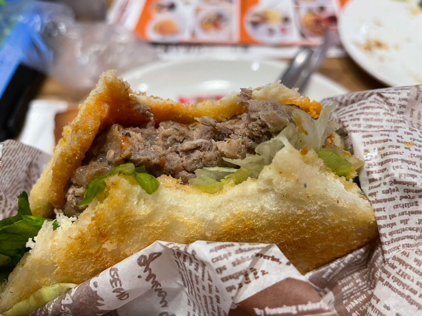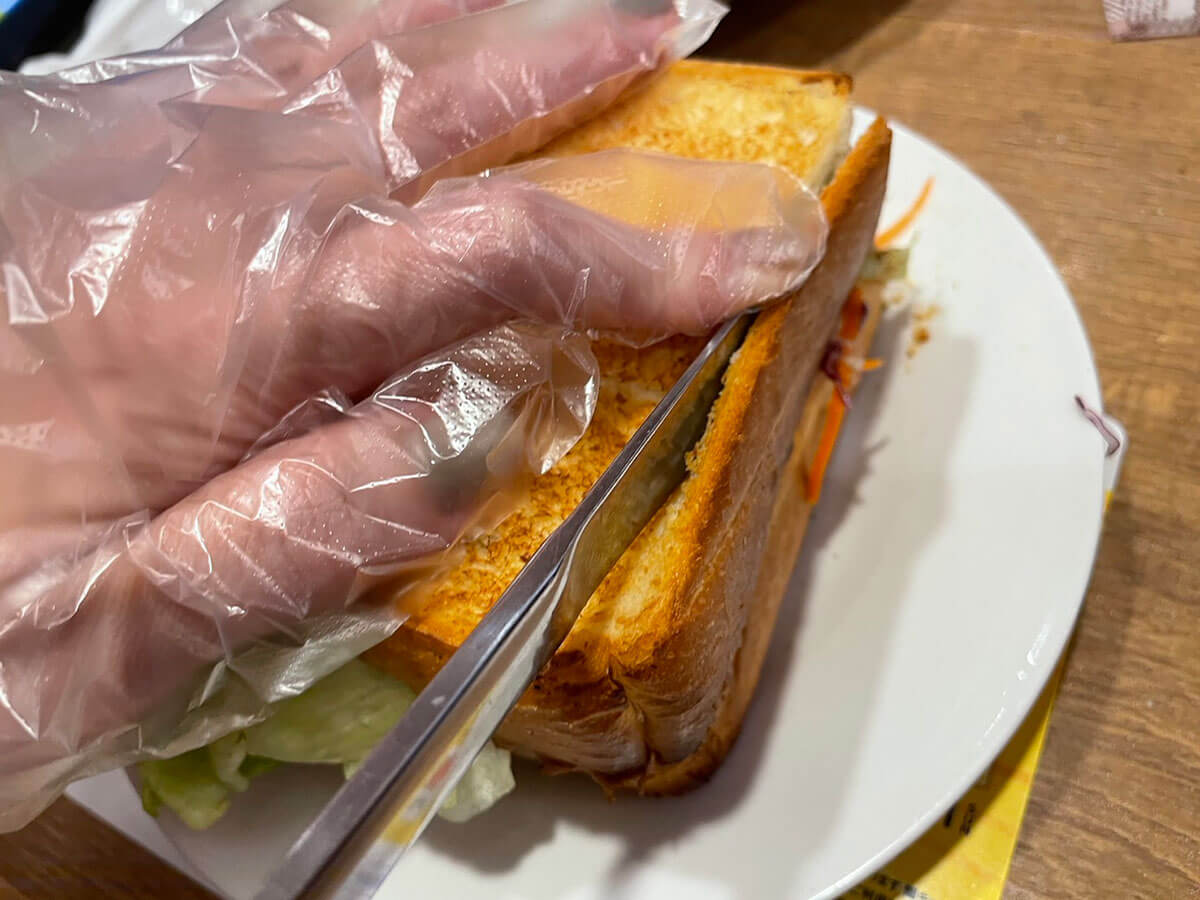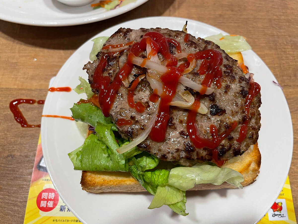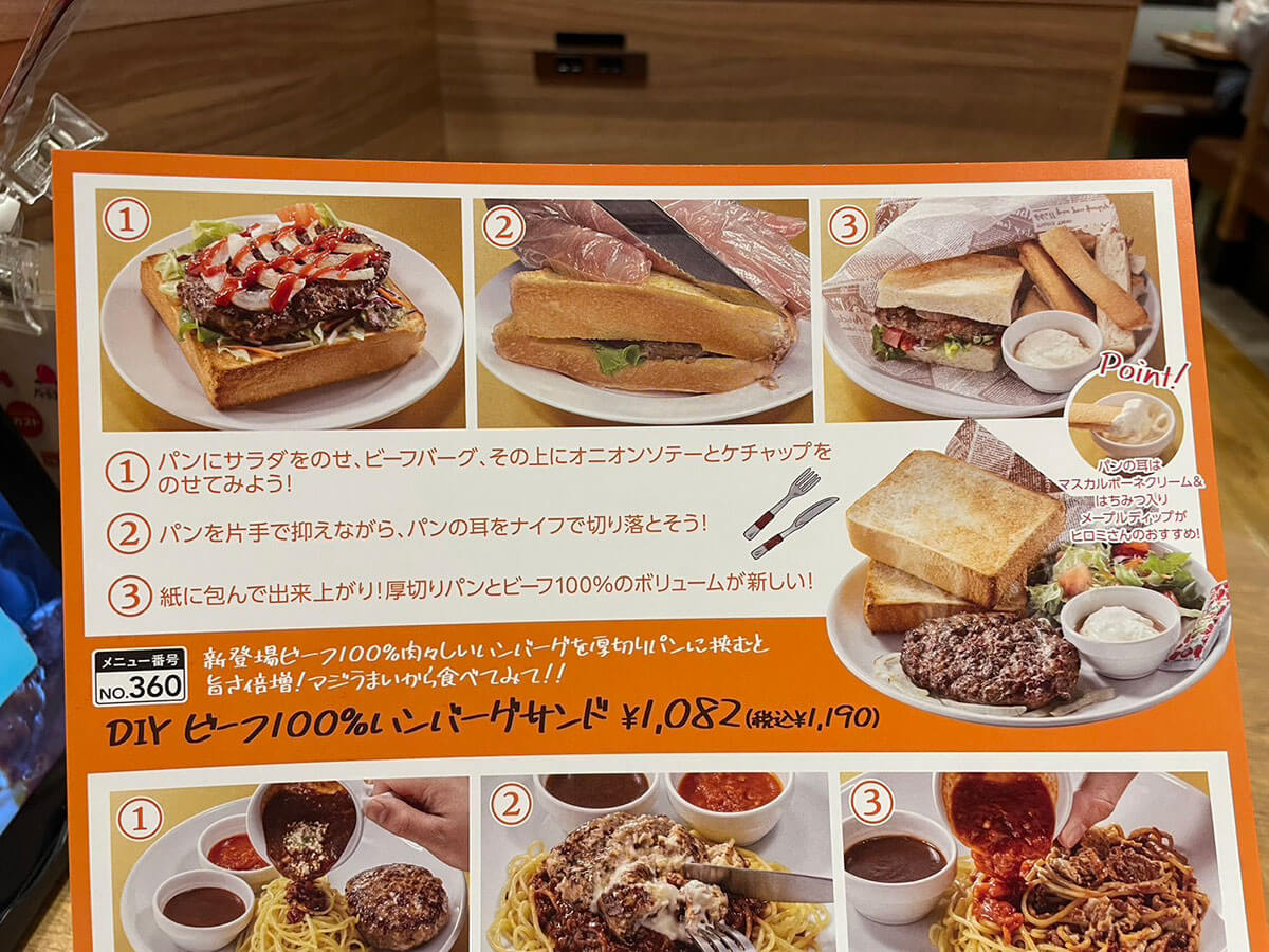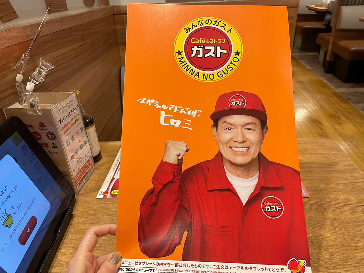 サイゾーウーマン暮らし食べ物ガスト、ヒロミ考案メニュー実食 暮らし 胸騒ぎのメニューを実食! 【ガスト】『ジョブチューン』で売上増も――1,190円「ヒロミ考案DIYメニュー」食べたら悲惨だったワケ 2024/04/17 14:00 サイゾーウーマン編集部(@cyzowoman) 暮らしガスト ガストの外観(C)サイゾーウーマン ファミリーレストラン店舗数1位のガストが、4月11日よりタレント・ヒロミが考案した「ヒロミオリジナルDIYメニュー」を発売中! なぜヒロミ? なぜファミレスでDIY? なんだか胸騒ぎがしたので、早速食べに行ってきました! 目次 ・【ガスト】メディア効果で売上UP ・1,190円DIYメニュー、作業工程は? ・ハンバーグサンドのDIYに挑戦! ・DIYハンバーグサンドは難儀なメニュー ※価格はすべて税込。 ※価格やメニューは2024年4月11日時点の情報です。 ※店舗によって価格やメニューが異なることがあります。 ※最新の情報は公式サイトや公式SNSをご確認ください。 テレビ効果で売上UPの【ガスト】、今度はヒロミ考案メニューを販売 現在全国に1,200店舗以上を展開し、ファミレス店舗数ランキングでは2位のサイゼリヤを引き離しているガスト。 最新の「月次業績」発表によれば、3月2日に『ジョブチューン』(TBS系)で人気企画「ガストvs超一流料理人!」が放送されたことで、客数・売上・客単価が大きく伸びたそうです。 そんなメディアともうまく手を組み、宣伝効果を上げているガストですが、今度は『有吉ゼミ』(日本テレビ系)の企画「八王子リホーム」などでDIYの腕前を披露しているヒロミをスペシャルアドバイザーに迎えた新カスタムメニュー「ヒロミオリジナルDIYメニュー」の販売を開始。 メニューは食事2種、デザート1種の以下の全3種類です。 「ヒロミオリジナルDIYメニュー」 ・DIY ビーフ100%ハンバーグサンド 1,190円 ・DIY ミートパスタ&ミニチーズINハンバーグ 890円 ・DIY パンケーキプリンアラモード 890円 販売期間:2024年5月22日まで(対象期間は予定、予告なく販売を終了する可能性あり) ヒロミは地元・八王子のガストによく通っていたそうで、ガストでおいしかったメニューを思い出しながら考案したそう。 今月登壇したPRイベントでは「ママに話したら『それ怒られないの!?』と言われるくらい自由に作らせてもらいました」と妻・松本伊代とのエピソードも披露していました。 このメニューに一体どんなDIY的な要素があるのでしょうか。早速、ガストに行ってみます! 【ガスト】「DIY ビーフ100%ハンバーグサンド」1,190円の作業工程は? 「Do It Yourself!」と言ってそうなヒロミ(C)サイゾーウーマン ガッツポーズの裏面(C)サイゾーウーマン テーブルにつくと、早速、ガッツポーズのヒロミがプリントされた厚紙がお出迎え。「一体これは何?」と裏をめくると、DIYメニューの作業工程を説明する紙でした。 今回はおなかがすいていたので、一番ボリュームがありそうな「DIY ビーフ100%ハンバーグサンド」(1,190円)を注文。商品説明にある「ビーフ100%肉々しいハンバーグを厚切りパンに挟むと旨さ倍増! マジうまいから食べてみて!!」のキャッチコピーがヒロミの声で脳内再生されます。 なお、このメニューのDIYは以下のスリーステップ。 「DIY ビーフ100%ハンバーグサンド」の作業工程 (1)パンにサラダをのせ、ビーフバーグ、その上にオニオンソテーとケチャップをのせてみよう! (2)パンを片手で抑えながら、パンの耳をナイフで切り落とそう! (3)紙に包んで出来上がり! 厚切りパンとビーフ100%のボリュームが新しい! 「なんだか大変そう……」と不安になっていると、ほどなくして商品が到着しました。 【ガスト】「DIY ビーフ100%ハンバーグサンド」のDIYに挑戦! 「DIY ビーフ100%ハンバーグサンド」が到着(C)サイゾーウーマン やってきたお皿は2つ。片方の皿には食材、もう片方には袋状の紙、ビニル手袋、袋入りケチャップがのっています。 筆者の第一印象は「想像以上にパンが分厚い!」。4もしくは5枚切り程度の食パンが2枚ついていて、表面はカリカリにトーストされています。 ケチャップが飛び出したけど、ここまでは難なくクリア(C)サイゾーウーマン まずは、トーストの上にサラダ、ビーフバーグ、オニオンソテー、ケチャップ、そしてもう1枚のトーストを積み上げていきます。 メインの作業へ(C)サイゾーウーマン 続いて、片手にビニル手袋を装着するのですが、途端に周囲の視線が気になり始める!! 周囲のテーブルの女子高生たちからドン引かれているのではないか、カニでも食べると勘違いされているのではないか、「え、あの人、何やってるの? 超ウケる」とコソコソ話をされているのではないか……筆者はありとあらゆる被害妄想にとりつかれてしまったんです。 「なんのプレイだよ。もう耳付きでいいよ……」とこのまま食べたい気持ちでいっぱいでしたが、出来心で注文したとはいえ、ヒロミの笑顔を前にやめるわけにはいきません。最後までやりきります! 皿からいろいろ飛び出し、惨事!(C)サイゾーウーマン しかし