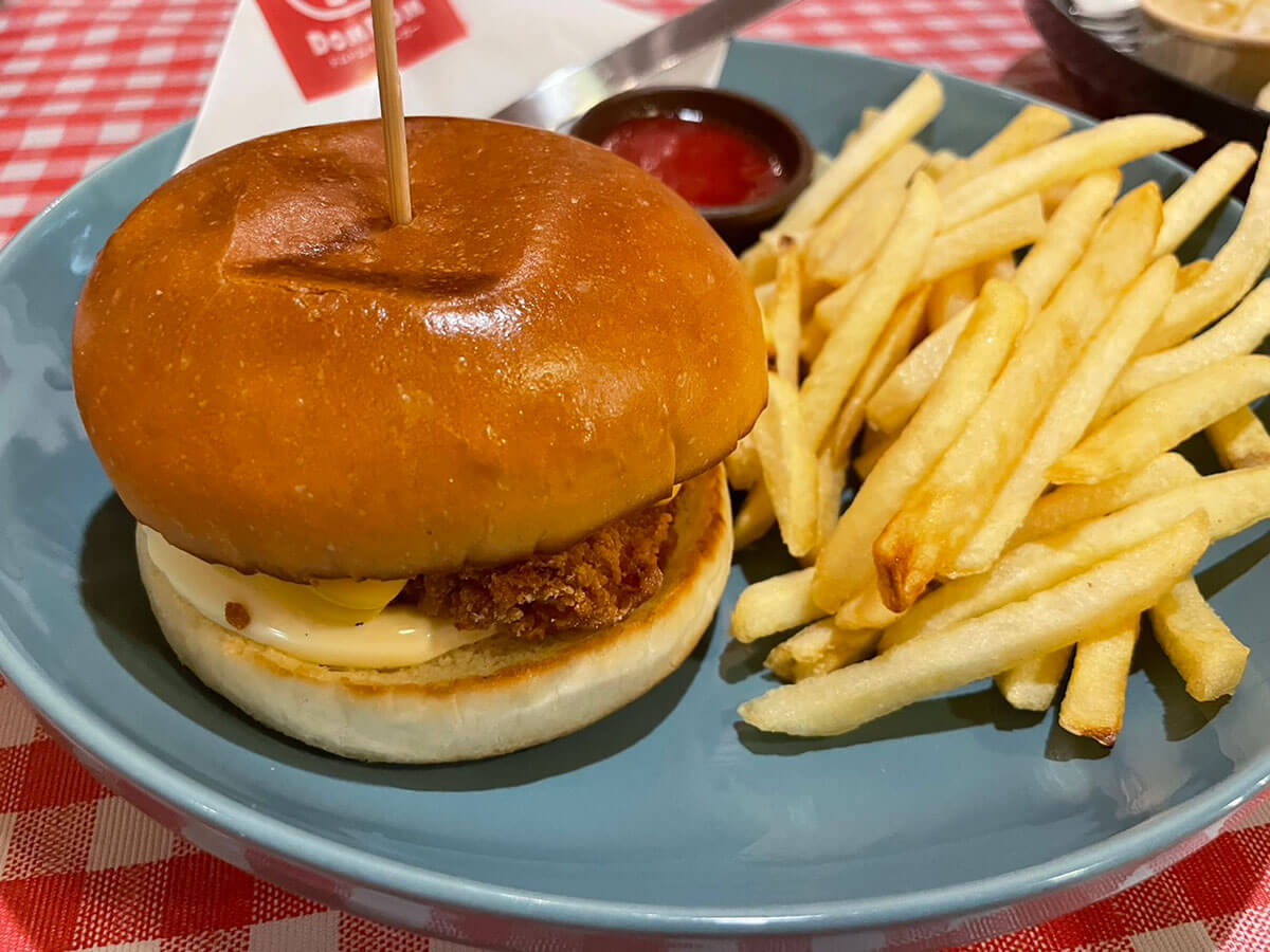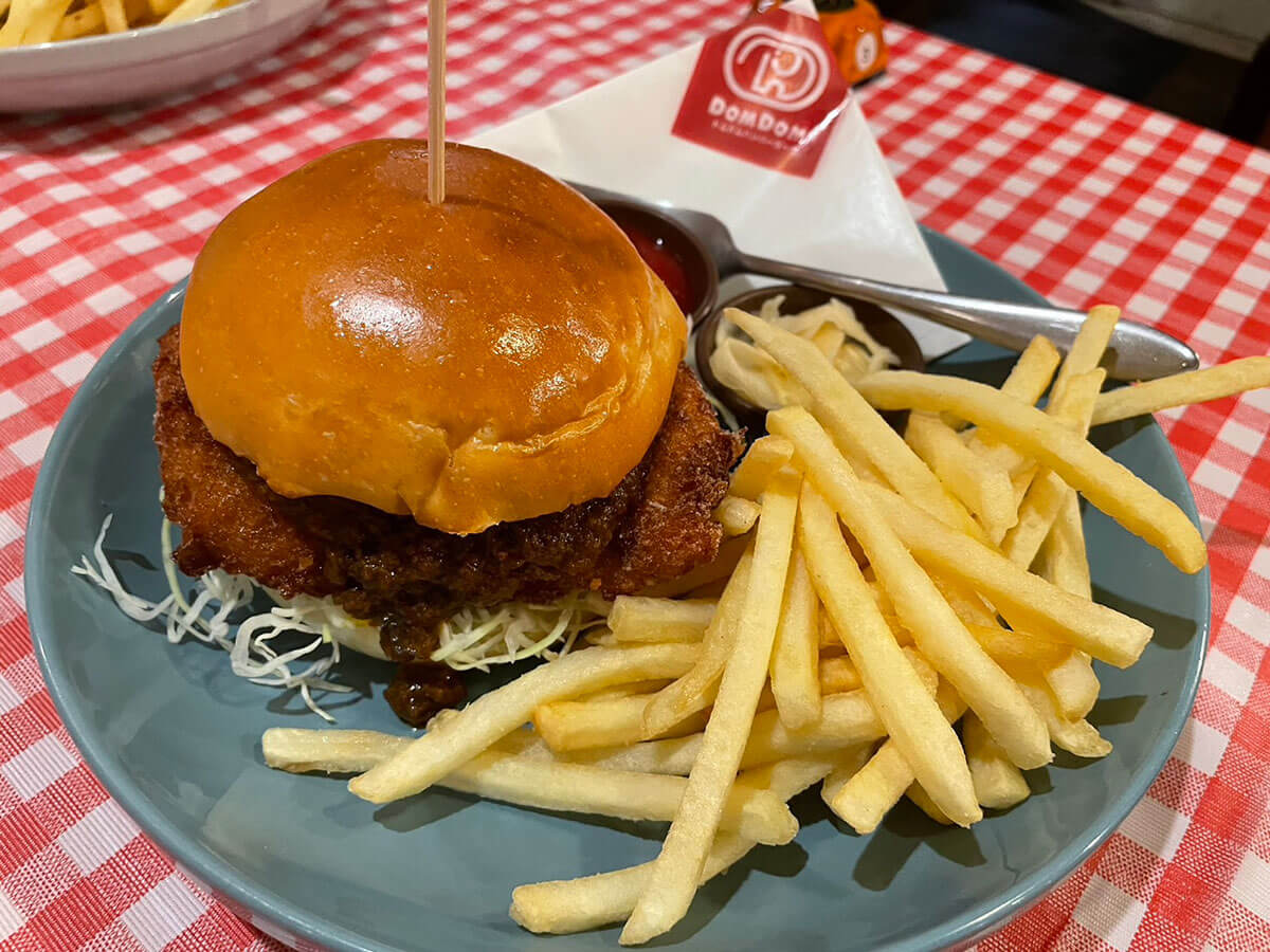 サイゾーウーマン暮らし食べ物ドムドムバーガー進化店で実食 暮らし 話題のチェーン店探訪 大量閉店から復活【ドムドムハンバーガー】、1,000円超高級バーガーを食べてわかった赤字脱却のワケ 2024/04/25 17:00 仲宗根由紀子(エンタメライター) 暮らしドムドムハンバーガー 「ドムドムハンバーガーPLUS」の外観(C)サイゾーウーマン 最盛期には全国に400店舗以上展開するも、閉店ラッシュの末にあまり見かけなくなった「ドムドムハンバーガー」。近年、再び注目を浴びていると聞き、東京・銀座の高級路線店「ドムドムハンバーガーPLUS」におじゃましてきました! 目次 ・ドムドムハンバーガー、赤字から復活 ・ドムドムハンバーガーの価格帯は? ・PLUSのバーガー4種を実食! ・味のクオリティーにびっくり! ※価格はすべて税込。 ※価格やメニューは2024年4月20日時点の情報です。 ※店舗によって価格やメニューおよびシステムが異なることがあります。 ※最新の情報は公式サイトや公式SNSをご確認ください。 【ドムドムハンバーガー】赤字から復活した背景とは? マクドナルド上陸の1年前である1970年、ダイエー創業者によって設立されたドムドムハンバーガー。90年代の最盛期は全国に400店舗以上を展開していました。 しかし、のちに赤字に転落し、2017年にダイエーグループが現在の運営会社に事業を譲渡。店舗数を縮小しつつ再建をはかり、20年頃から黒字に回復したといいます。 現在は27店舗を運営するドムドムハンバーガーですが、22年7月にプレミアム感の強い新業態店舗「ドムドムハンバーガーPLUS」を東京・銀座にオープン。ここでは黒毛和牛100%パティを使ったプレミアムバーガーに加え、ドムドムハンバーガーで人気だった期間限定メニューも販売しています。 なお、現社長はネットメディアのインタビューで、“業績回復の転機”について言及。18年に人気声優・田村ゆかりのイベントにそれまで所有していなかったキッチンカーで出店したことや、SNSの活用に注力したこと、BEAMSなど他ジャンルの企業とのコラボに挑戦したことを挙げていました。 こうしたチャレンジ精神が実を結んだようですが、肝心のハンバーガーも進化しているのでしょうか……。それを確かめるべく、ドムドムハンバーガーPLUSに行ってきました。 【ドムドムハンバーガーPLUS】最安バーガーは1,000円、平日はさらにお得な商品もあり! メニュー看板(C)サイゾーウーマン 高級ブランド店ひしめく銀座の街を通り抜け、12時過ぎにお店に到着。筆者がドムドムハンバーガーを訪れるのは、約30年前の小学生時代、ダイエーに入っていたドムドムに行った以来です。 ドムドムハンバーガーPLUSの入り口には、順番受付サービス「EPARK」の端末が設置されていました。ここに電話番号を入力すると、順番が回ってきたタイミングで自動音声の電話がかかってくるシステムとのこと。 お店の前で待つのはNGだそうなので、“銀ブラ”しながら待っていると、15分ほどで電話がかかってきました。隣の老舗洋食店「銀座煉瓦亭」の大行列を前に「お昼時に銀座に来るんじゃなかった!」と後悔していたのですが、意外と早くて助かりました。 メニュー表(C)サイゾーウーマン 期間限定の「メープルチーズチキンバーガー」(C)サイゾーウーマン メニュー表を見ると、高級路線店とあって、通常のドムドムハンバーガーにはないメニューがずらり。 最安ハンバーガーは、期間限定の「メープルチーズチキンバーガー」で1,000円(平日ランチタイムは800円)。最高値は1,890円で、「和牛バーガー ゴルゴンゾーラ&マッシュルーム」「和牛バーガー アボカドチーズ」「和牛バーガー ベーコンエッグチーズ」がそれにあたります。ただ、平日にはランチ限定で1,000円以下のお得なバーガーが複数登場するそう。 筆者は「和牛バーガー ゴルゴンゾーラ&マッシュルーム」(1,890円)を注文。同行者は「メープルチーズチキンバーガー」(1,000円)、「カツカレーバーガー」(1,590円)、「丸ごとカニバーガー」(1,690円)を選んだので、「一口ちょうだい」作戦で4つの味を食べ比べたいと思います。 【ドムドムハンバーガーPLUS】4種のバーガーを実食! 「和牛バーガー ゴルゴンゾーラ&マッシュルーム」1,890円 最高値の「和牛バーガー ゴルゴンゾーラ&マッシュルーム」(C)サイゾーウーマン ほどなくして、「和牛バーガー ゴルゴンゾーラ&マッシュルーム」が到着。 ドムドムハンバーガーPLUSのハンバーガーは、フライドポテト、ケチャップに加え、ピクルスならぬ“ガリ”がセットになっているんです。 紙袋に包み、がぶり(C)サイゾーウーマン 「和牛バーガー ゴルゴンゾーラ&マッシュルーム」は、粗びきで噛み応えのある黒毛和牛のパテに濃厚なゴルゴンゾーラソースが絡み、チーズ好きにはたまらないクリーミーな味わい。 そこにマッシュルームの旨味やフレッシュ野菜の食感も加わり、食べるたびに感動のある高級バーガーです。 セットのガリ(C)サイゾーウーマン そして、「パンと合うのか?