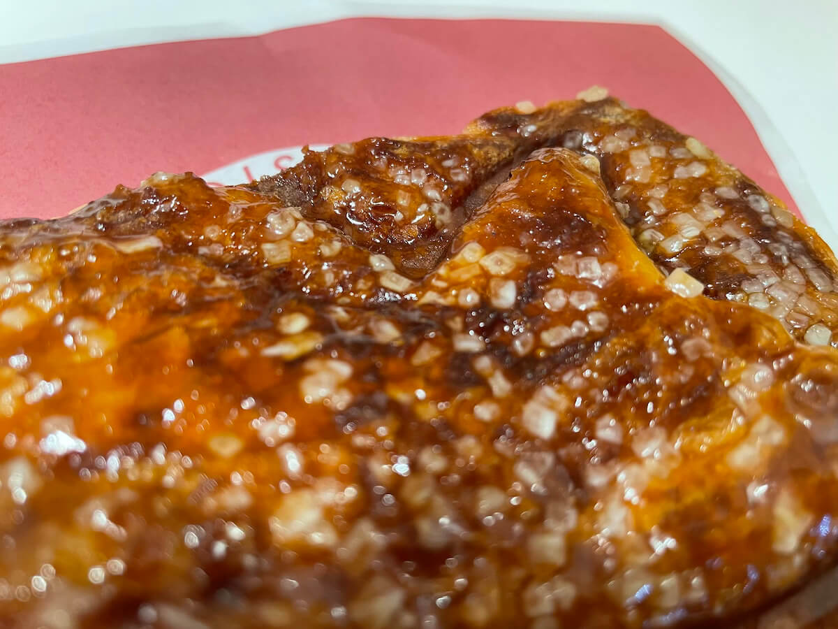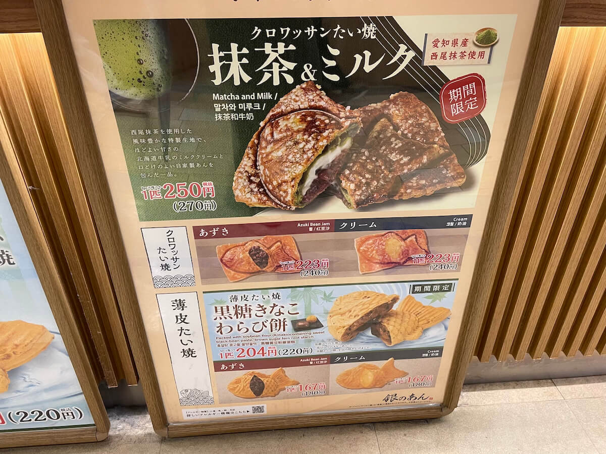 サイゾーウーマン暮らし食べ物【銀のあん】ブームで消費されないプライド 暮らし 話題のチェーン店探訪 【銀のあん】閉店相次ぐもーークロワッサンたい焼、【銀だこ】で販売続けるプライドとは? 2024/05/02 14:00 田口るい(ライター) サンマルクカフェ 店舗外観(写真:サイゾーウーマン) 2016年頃からじわじわとブームになったクロワッサンたい焼。販売する店はさまざまにあるようですが、チェーン店で店舗数も多かった「銀のあん」の閉店が相次いでいるとか。実際に店舗を訪れてみました。 目次 ・【銀のあん】とは? ・【銀のあん】メニュー ・【銀のあん】クロワッサンたい焼き実食! ・ブームで終わらせないクロワッサンたい焼へのプライド ※価格はすべて税込です。 ※価格や商品は2024年5月2日時点の情報です。 ※最新の情報は公式サイトや公式SNSをご確認ください。 ※店舗によって取り扱い商品が異なります。 【銀のあん】とは? たこ焼きとクロワッサンたい焼のビジュアル(写真:サイゾーウーマン) 「薄皮たい焼 銀のあん」を運営するのは、「築地銀だこ」を持つ株式会社ホットランド。 同社は2000年に「築地銀だこ」でたい焼の販売を開始。07年11月に「銀のあん」1号店をアトレ大森にオープンしました。現在は、国内16店、タイ4店、マレーシア1店を展開しています。 公式サイトによれば、クロワッサンたい焼は、「当社が開発し、たい焼専門店 『銀のあん』で発売したオリジナル商品」とのこと。一部ネット上では、東京・下北沢の和菓子店で16年に登場したとされていますが、それより3年も前の13年8月から銀のあんで販売開始。 13年に銀のあんが発売してから、16年頃にブームが訪れ各所で販売されるようになったのかもしれません。 ネット上では同店について、「閉店 多い」「閉店 なぜ」といった言葉で検索されている様子。実際、昨今は閉店が相次いでいるようです。 【銀のあん】メニュー 今回、実際に「銀のあん」を訪れました。店頭で期間限定のクロワッサンたい焼「抹茶&ミルク」が宣伝されています。こちらは昨年発売した商品の再登場らしいです。 薄皮たい焼も期間限定があります(写真:サイゾーウーマン) クロワッサンたい焼 ・あずき 240円 ・クリーム 240円 ・抹茶&ミルク(期間限定)270円 薄皮たい焼 ・あずき 180円 ・クリーム 180円 ・黒糖きなこわらび餅 220円 【銀のあん】クロワッサンたい焼実食! 今回は定番のあんこを購入。イートインスペースでさっそく食べてみることにしました。 紙袋から取り出すと、ずっしりとした質感のたい焼が登場。 四角い形が特徴的(写真:サイゾーウーマン) 裏返してみるとビックリ! 全面にカラメルが塗布され、さらにザラメがふんだんに散らされています。 少し冷えていたのでカラメル側はバキバキした感触。買いたてなのに温かくなくて残念でしたが、公式サイトによると「少し落ち着かせ粗熱をとることで、より個性的な生地の食感が引き立ちます」とのこと。 ザラメの量がすごい(写真:サイゾーウーマン) クロワッサンたい焼の生地は24層になっているそう。 層をチェックすべく、たい焼を半分にしようとするも、カラメル生地が強靭で全然ちぎれない! 力技で引き裂いたところ、残念な見た目になってしまいました。お見苦しくてすみません……。 クロワッサンの層が見えますか?(写真:サイゾーウーマン) 粒あんがぎっしり、鯛の体に詰まっています。(写真:サイゾーウーマン) まずは、あんこが入っていない生地だけ食べてみると、ザクザクッとした食感がすごい! ザラメとカラメルの甘みのあとに、しっかりとバターの香りと塩味が感じられます。これはパンとしておいしい! ザクザクと食べ進めながら、「この味はアレっぽいんだよなぁ、なんだっけなあ」と思案していたんですが、クイニーアマン!! これはクイニーアマンですね! 端のほうのバリバリがおいしい(写真:サイゾーウーマン) あんこのほうもいただきます。生地の甘さにあんこの甘さが乗っかり、とても濃厚なスイーツ! あんこの量もたっぷりなので、口の中が甘さで満たされ幸せです。 ただ、たい焼というより菓子パンのほうがジャンルとしてはふさわしいような? 「あんこクロワッサン」「あんこクイニーアマン」としてパン屋やコンビニで置かれていてもおかしくないなと思いました。 そのネーミングや一時のブームの記憶からイロモノだと思っていましたが、結果、おいしい菓子パンでした! クロワッサンたい焼へのプライド 銀だこもおいしいよね(写真:サイゾーウーマン) 16年頃に訪れたブームから早8年がたち、銀のあんも閉店が相次いでいるようですが、一方で22年からは銀だこでもクロワッサンたい焼の販売がスタート(店舗限定)。自分たちが作った商品を、ブームで消費されて終了にはさせない! という本家のプライドを感じます。 今回利用した店舗は、銀のあんと銀だこが一体化した店構え。両店が協力して、今後も定番商品として長く販売が続くことを願っています。 田口る